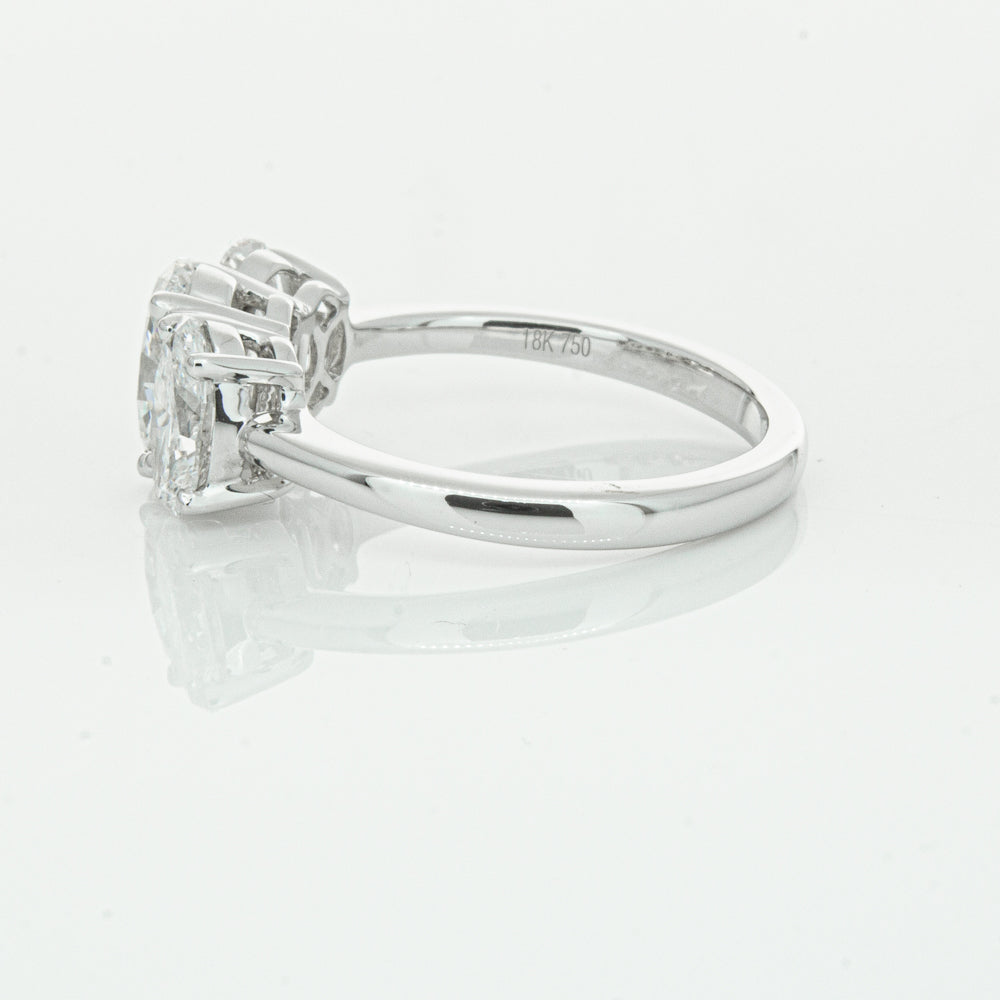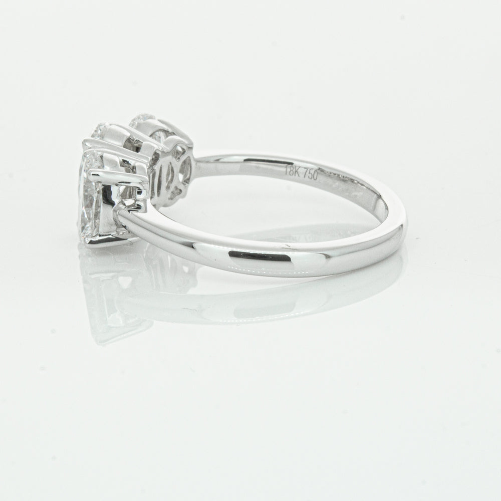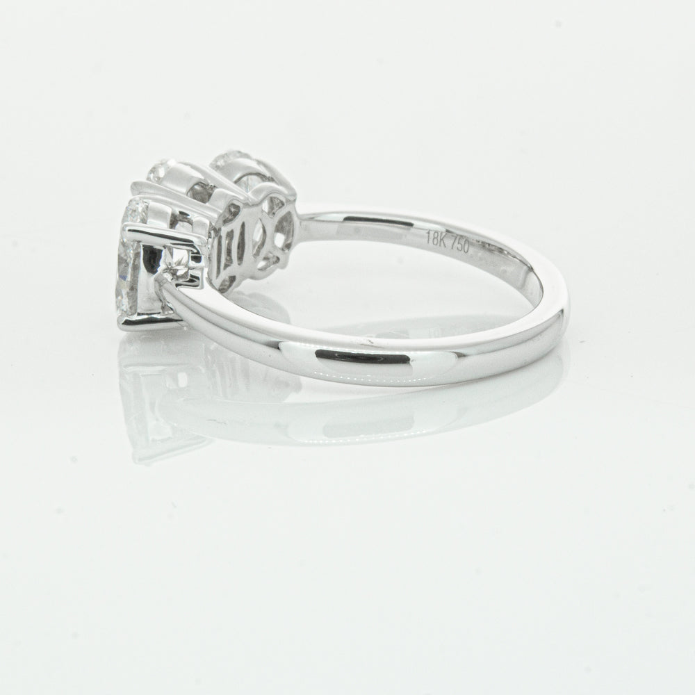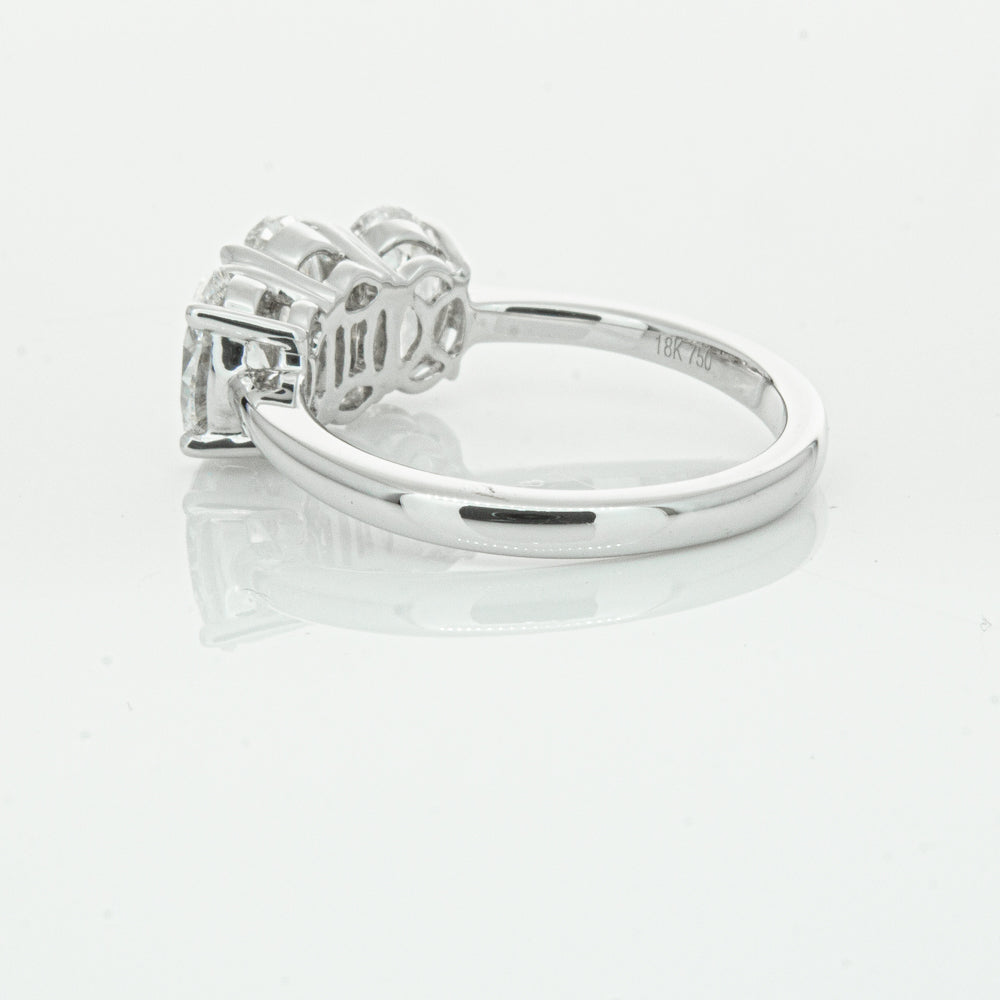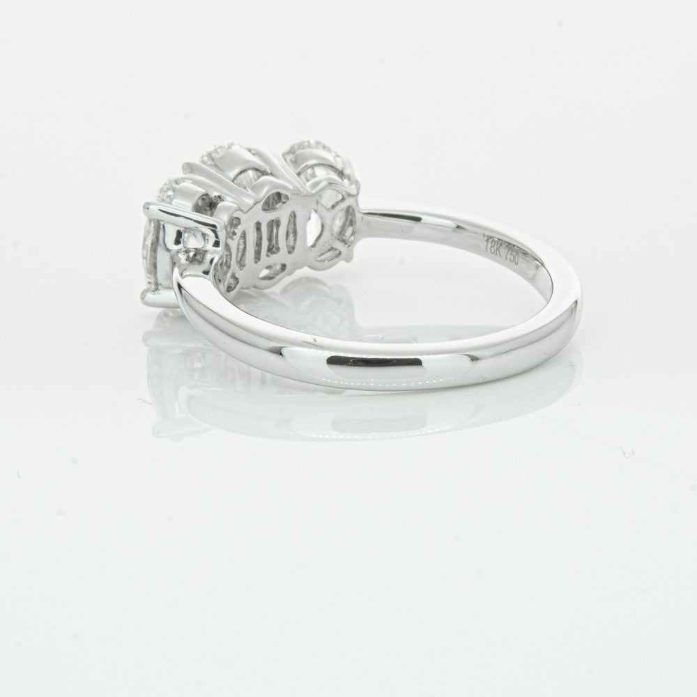 This exquisite oval diamond graduated three stone ring demonstrates sophisticated design at its finest. The refined band is crafted from our high palladium 18 carat white gold, providing enhanced wearability for a piece that deserves to be worn and enjoyed daily. Undeniably, the instant attraction is the trio of perfectly aligned brilliant oval shaped diamonds, each expertly cut and polished to bring out their unique brilliance and fire.