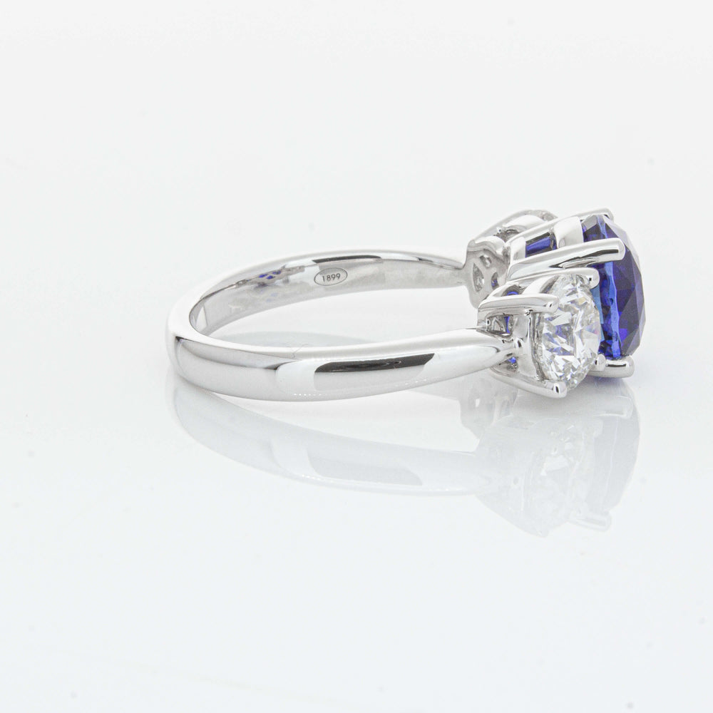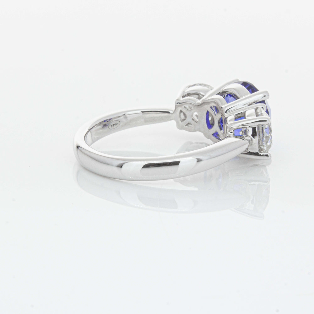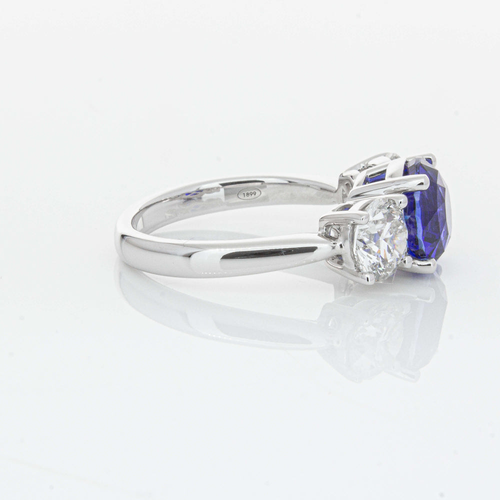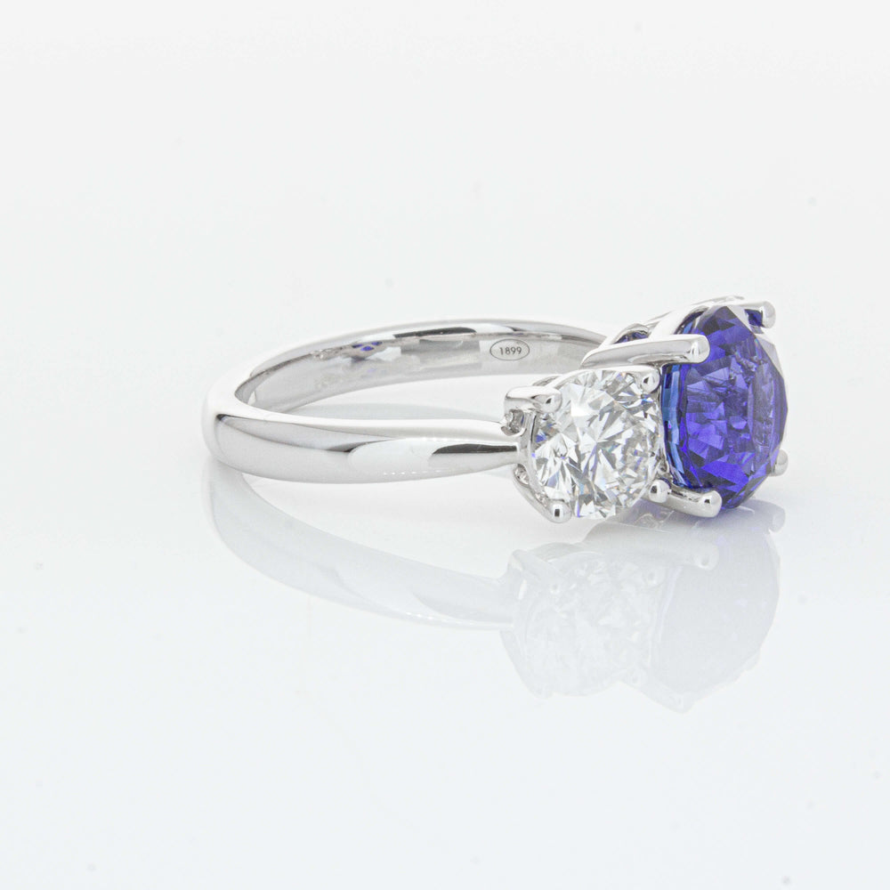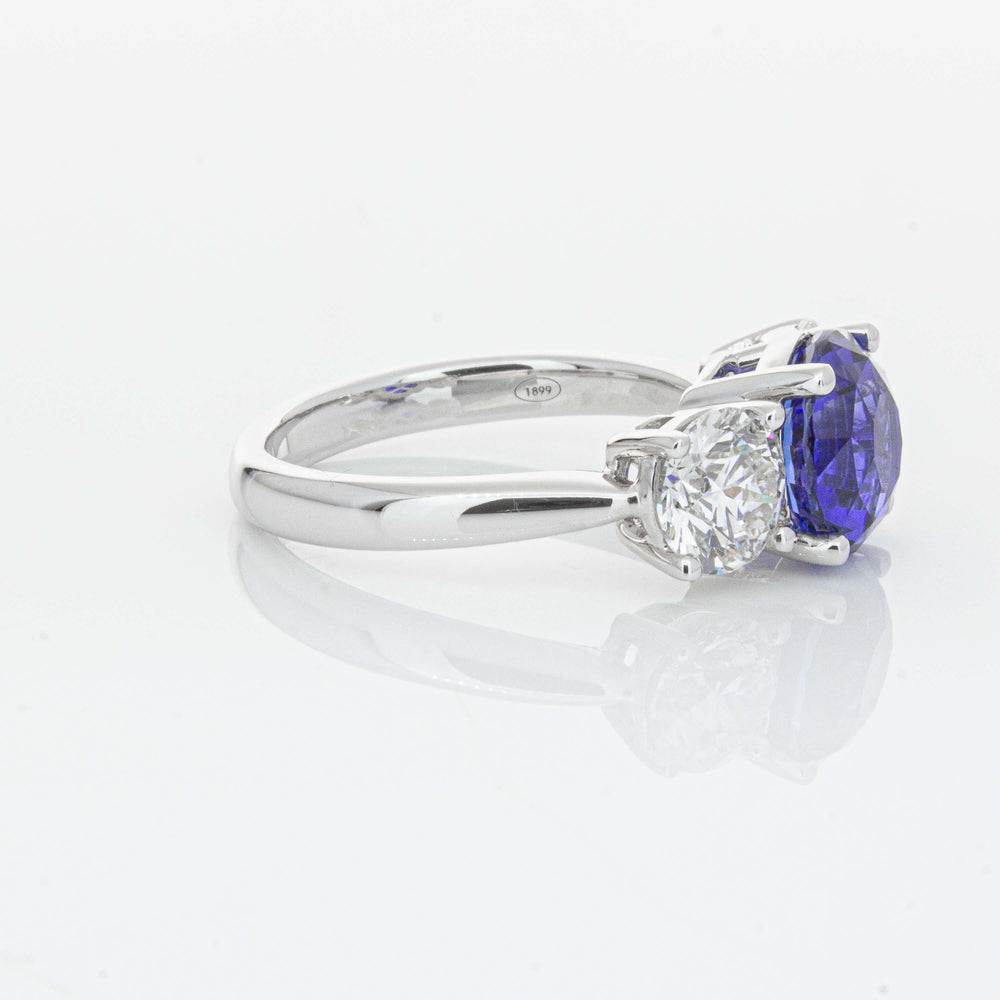 “A rare 3.51ct round sapphire, sourced from the cascading waters of central Sri Lanka. Remarkable for its intense, velvety royal blue hue, this sapphire’s rich colour is amplified by its size, shape and quality. Set in a simple yet elegant Trinity design crafted in high palladium 18ct white gold. The sapphire is flanked by generous matching natural round brilliant diamonds which create contrast, accentuating its vibrant hue.” - Joseph Tattersfield