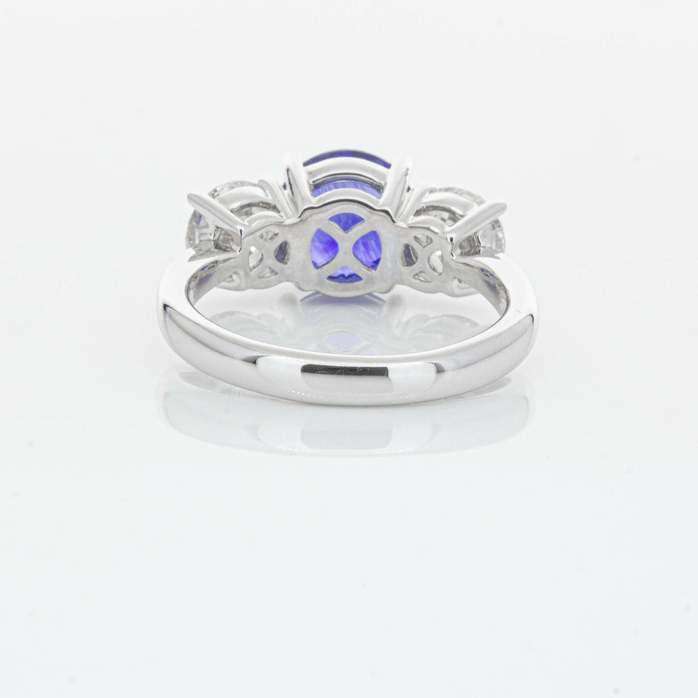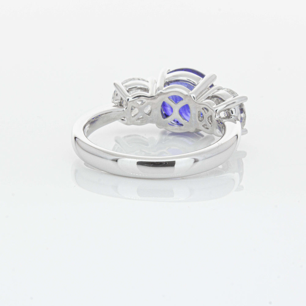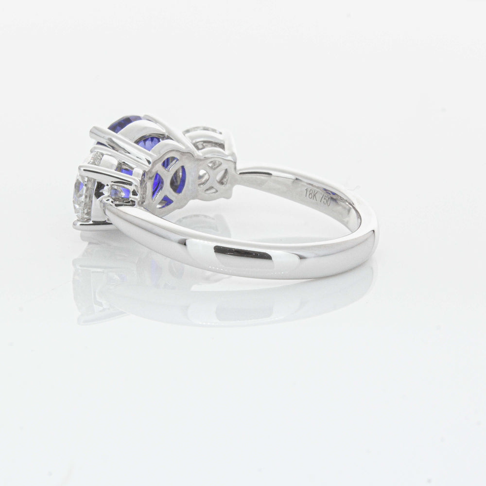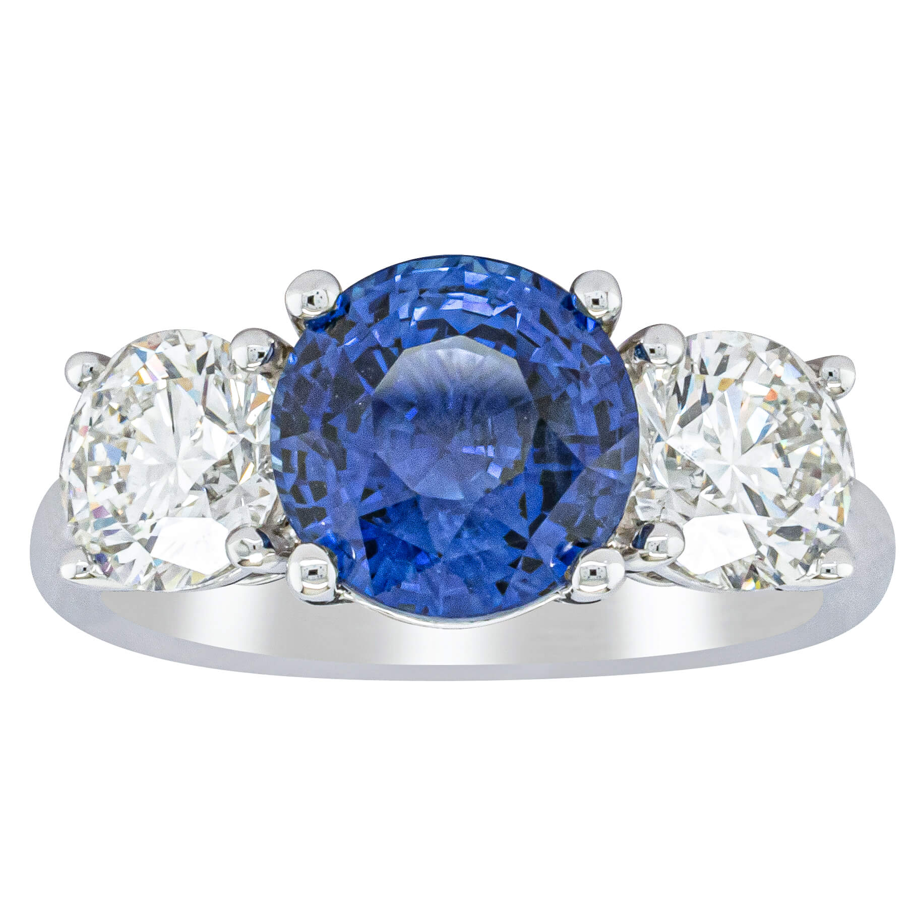 “A rare 3.51ct round sapphire, sourced from the cascading waters of central Sri Lanka. Remarkable for its intense, velvety royal blue hue, this sapphire’s rich colour is amplified by its size, shape and quality. Set in a simple yet elegant Trinity design crafted in high palladium 18ct white gold. The sapphire is flanked by generous matching natural round brilliant diamonds which create contrast, accentuating its vibrant hue.” - Joseph Tattersfield