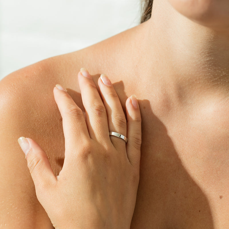 This classic 18ct white gold ring is 3.5mm wide and has a slightly rounded profile. Available in a standard polished finish (as pictured) or brushed.