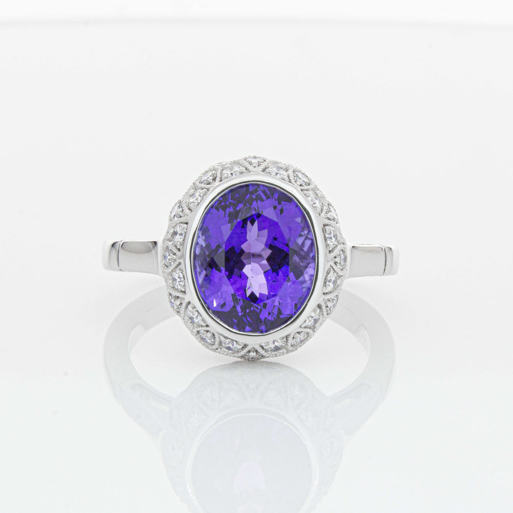 18ct White Gold 3.64ct Tanzanite & Diamond Dulce Ring