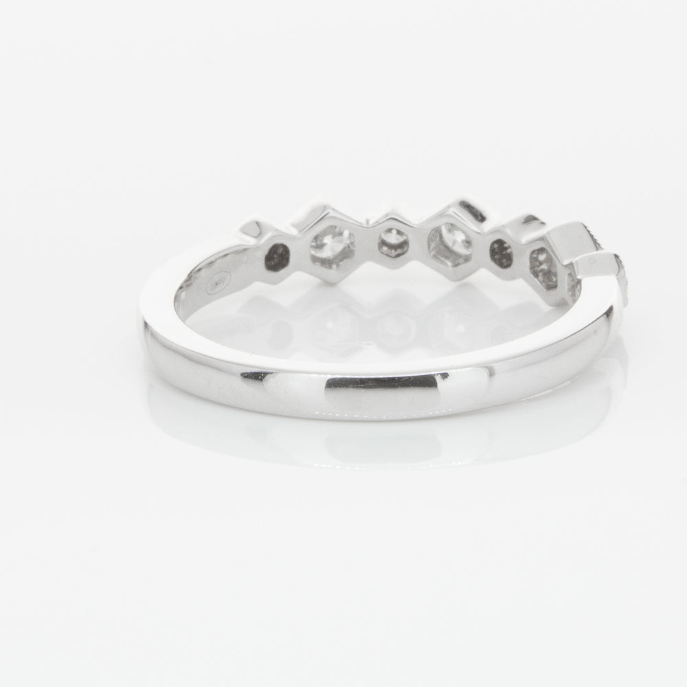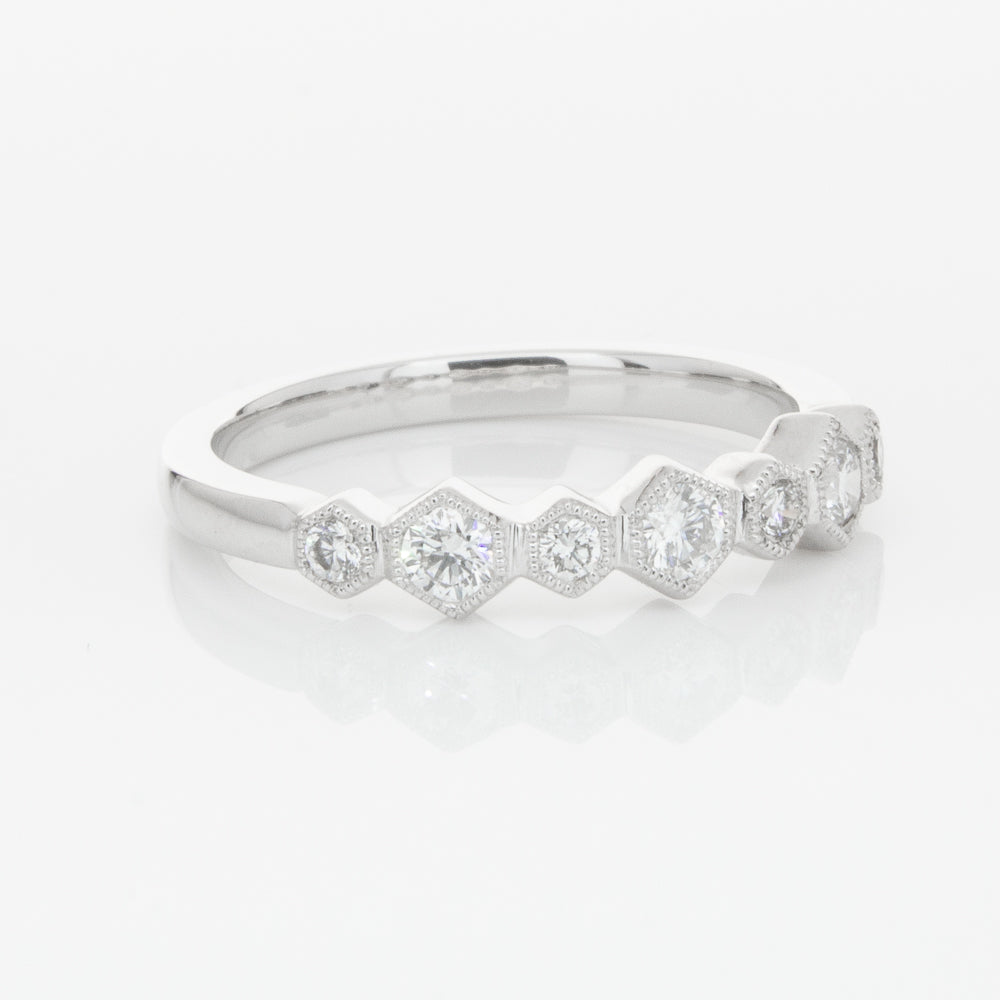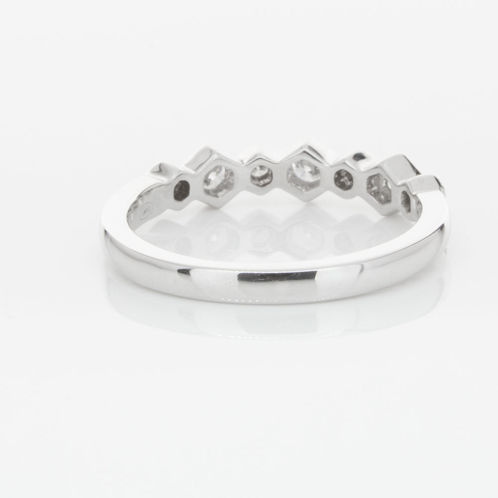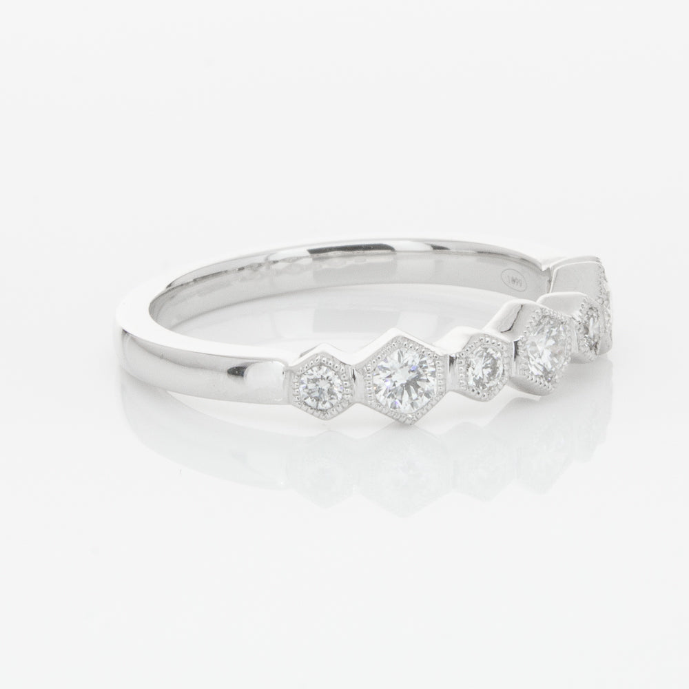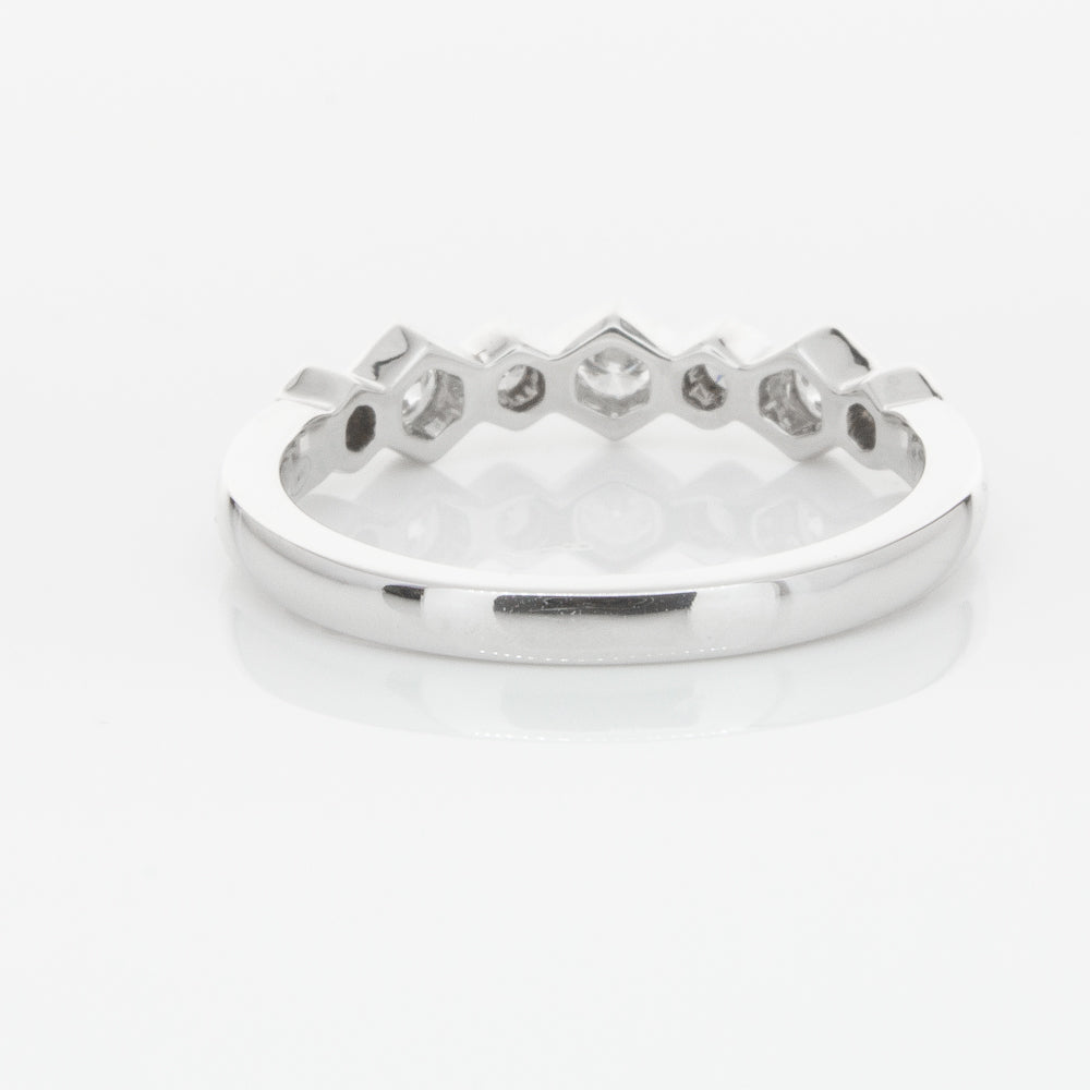 Carefully crafted in 18ct white gold from our signature 1899 collection, this beautiful ring boasts seven round brilliant cut diamonds with millgrain settings.