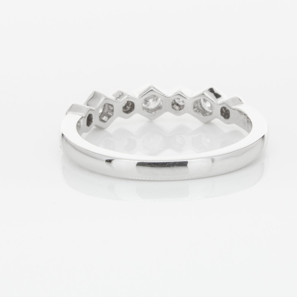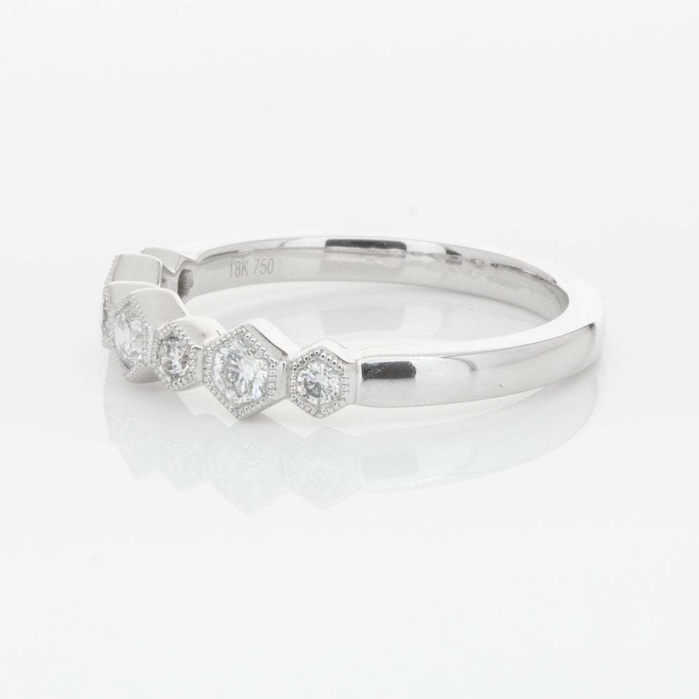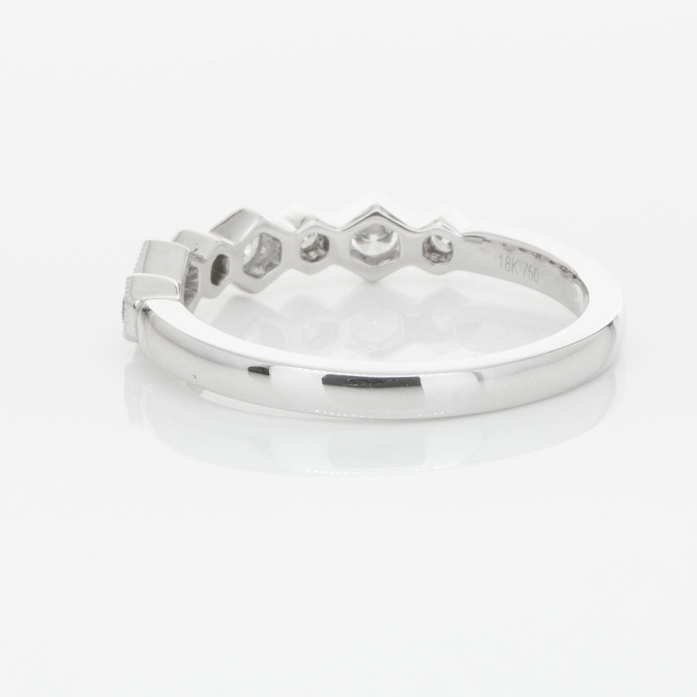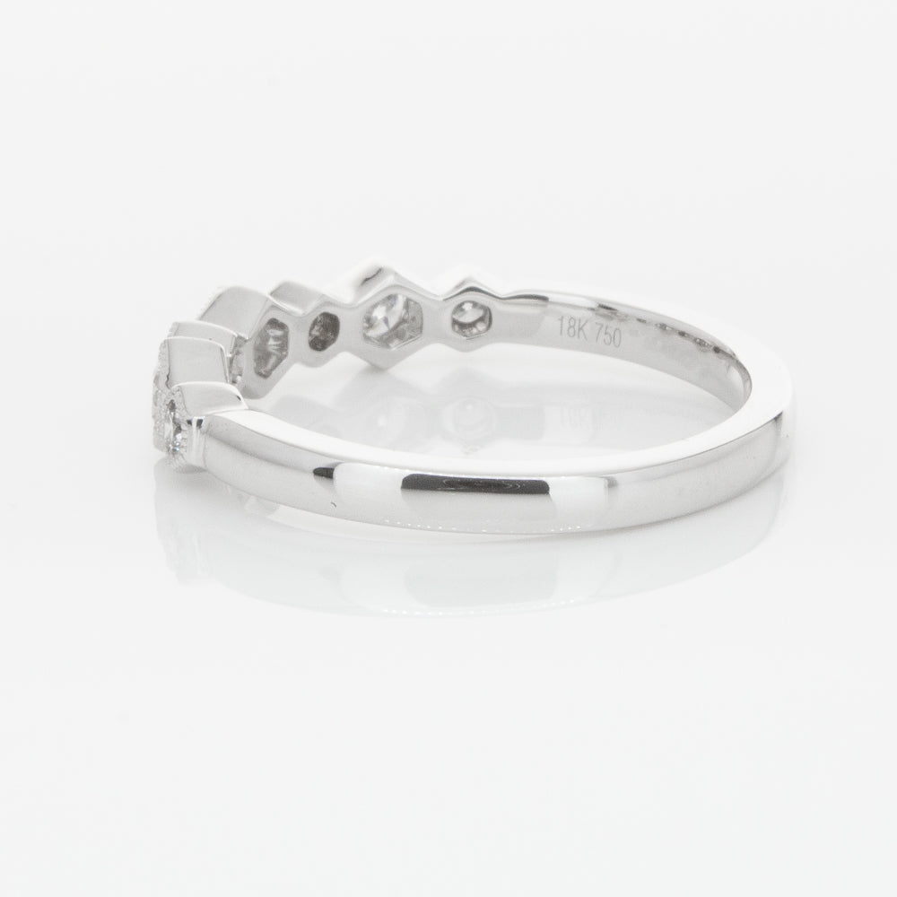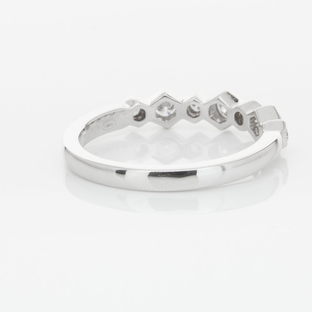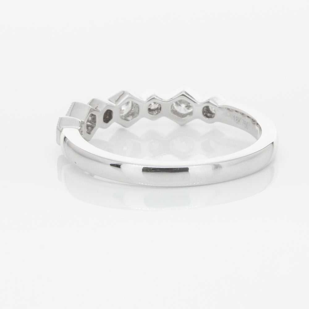 Carefully crafted in 18ct white gold from our signature 1899 collection, this beautiful ring boasts seven round brilliant cut diamonds with millgrain settings.