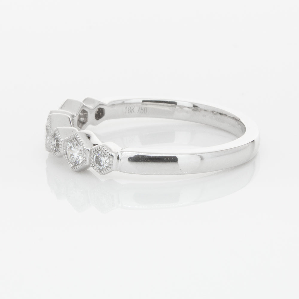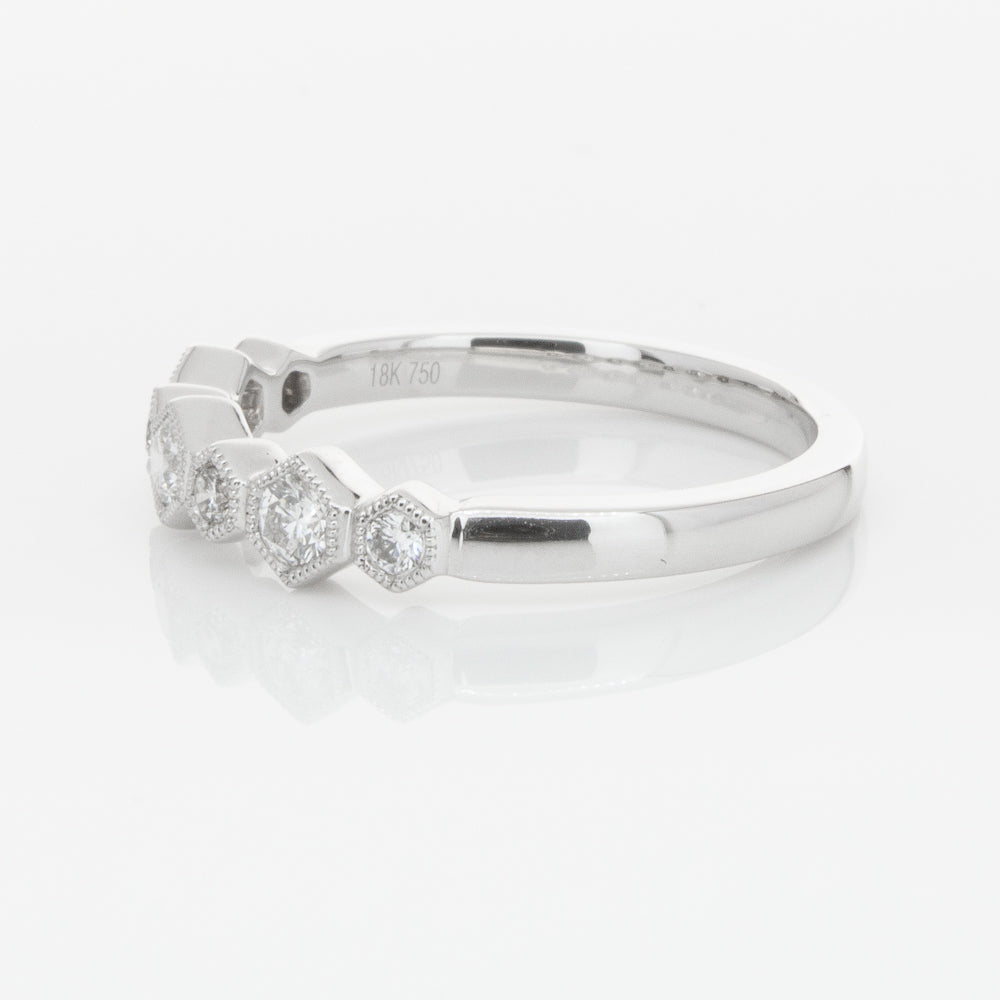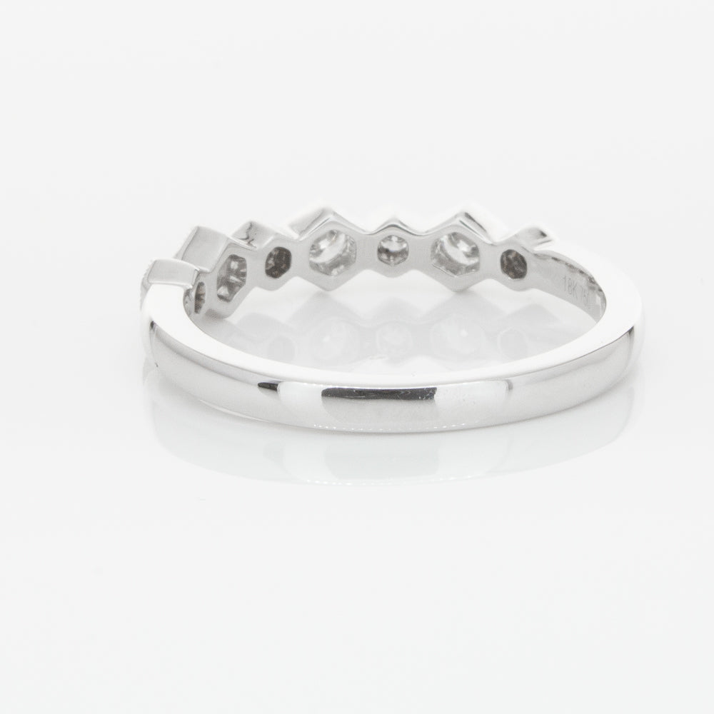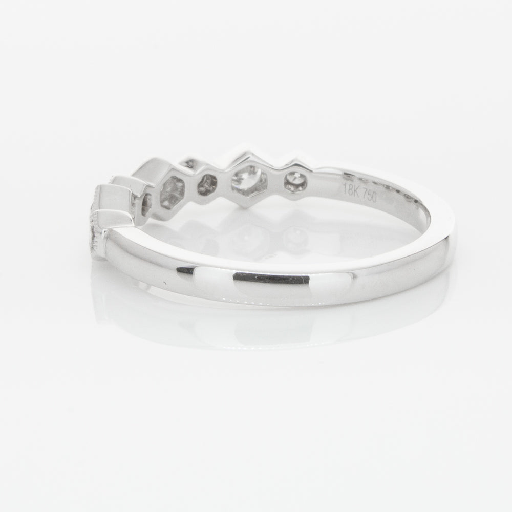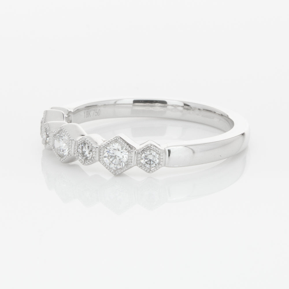 Carefully crafted in 18ct white gold from our signature 1899 collection, this beautiful ring boasts seven round brilliant cut diamonds with millgrain settings.