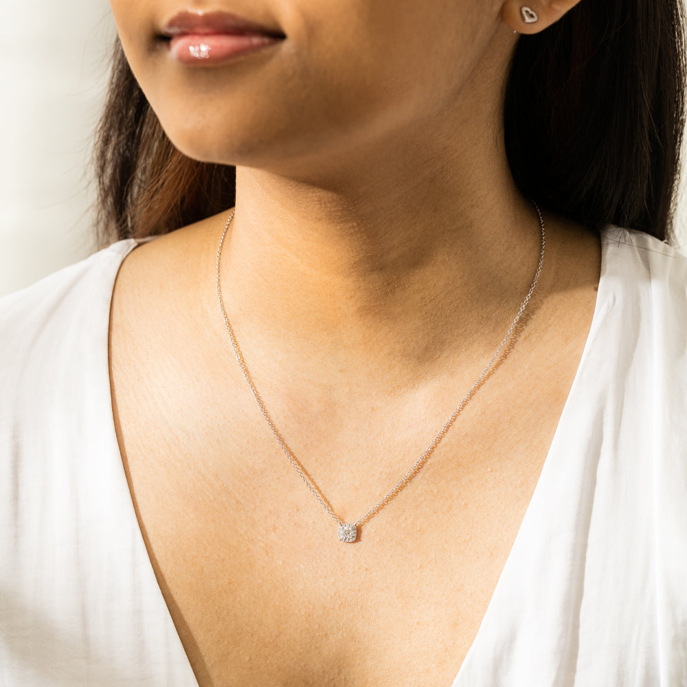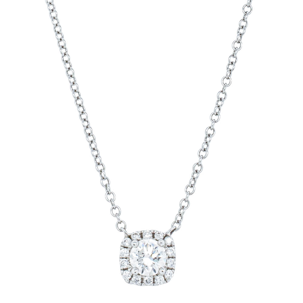 Embody sophistication with this timeless .38ct diamond pendant surrounded by a halo of stunning round brilliant cut diamonds. Crafted in 18ct white gold from our signature 1899 collection, this pendant will be the envy of everyone.