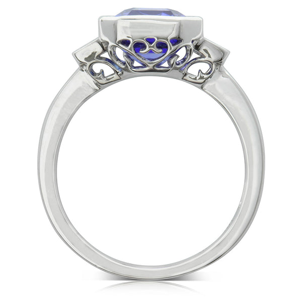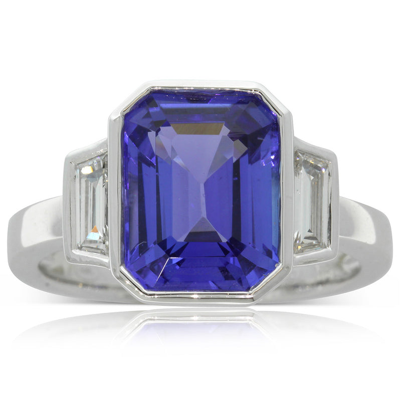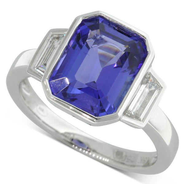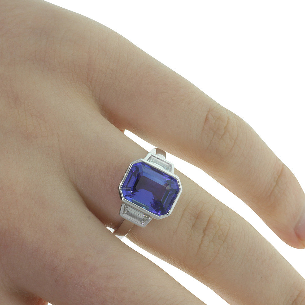 18ct White Gold Tanzanite & Taper Diamond Ring