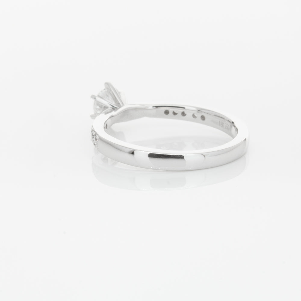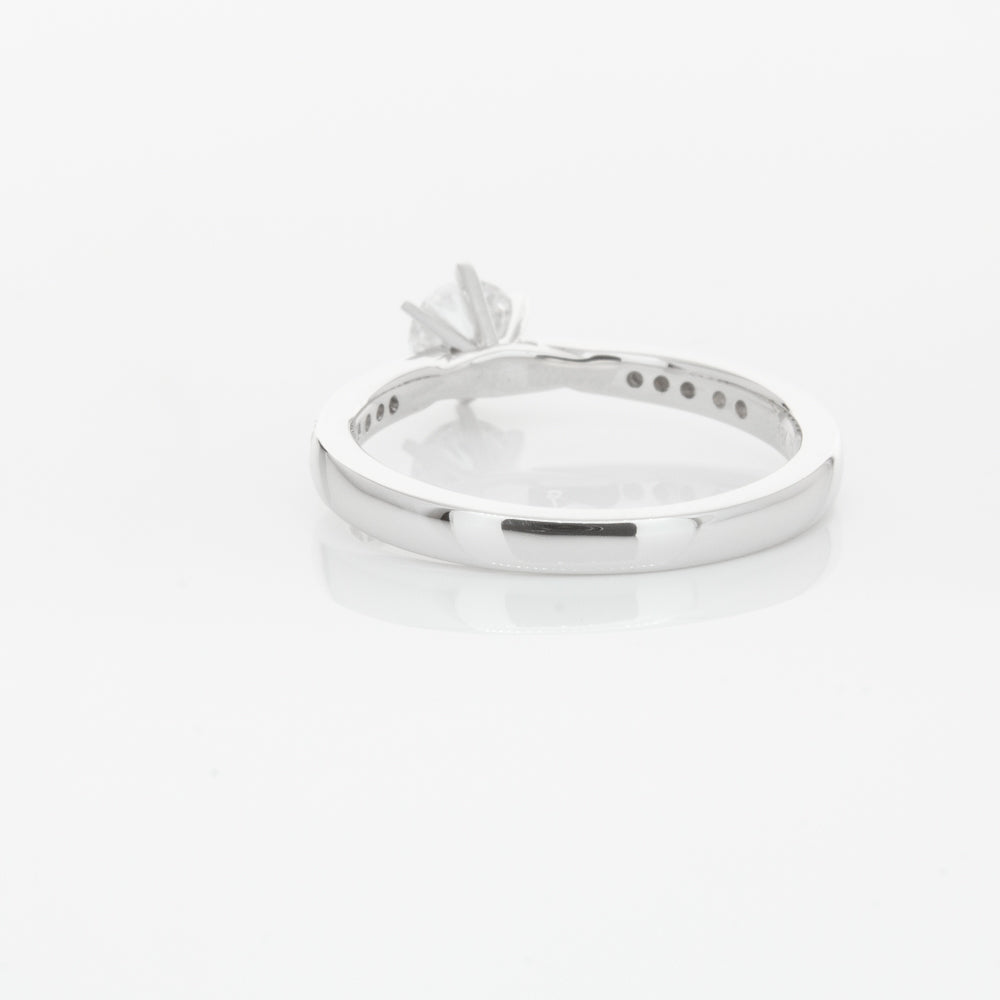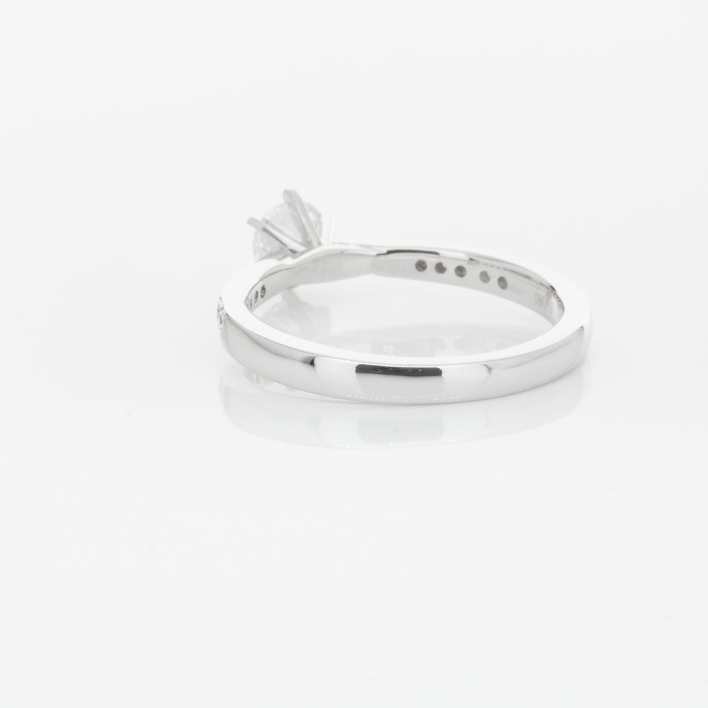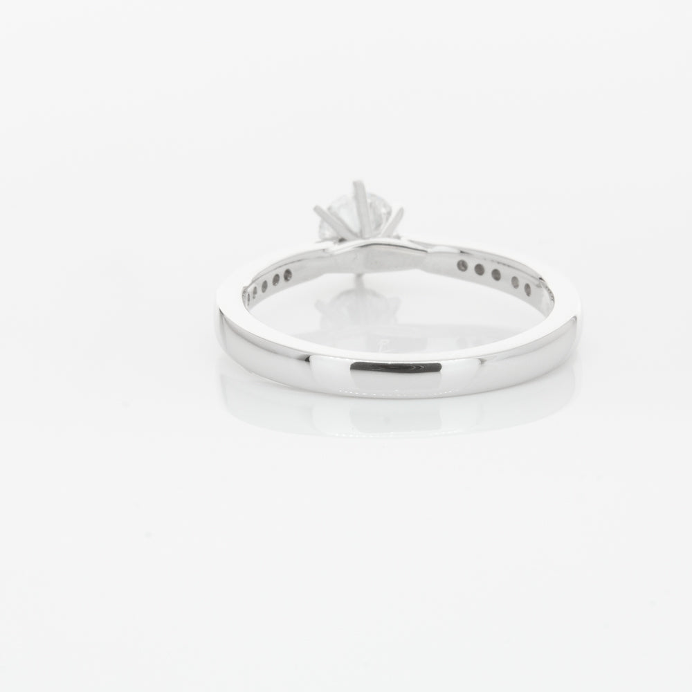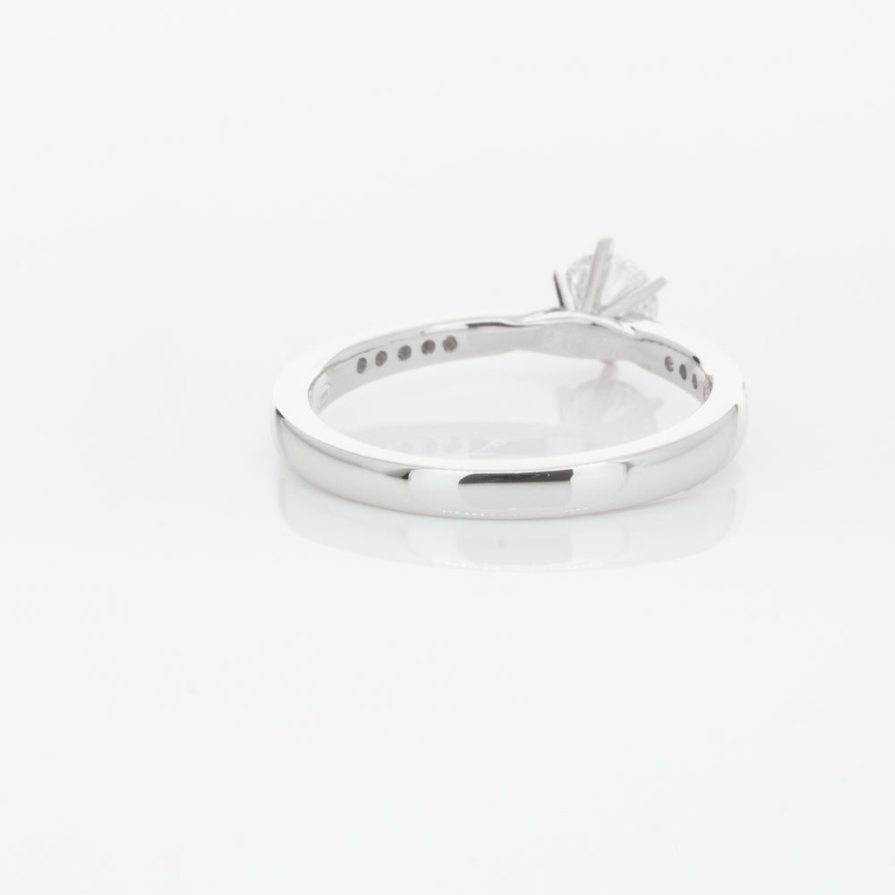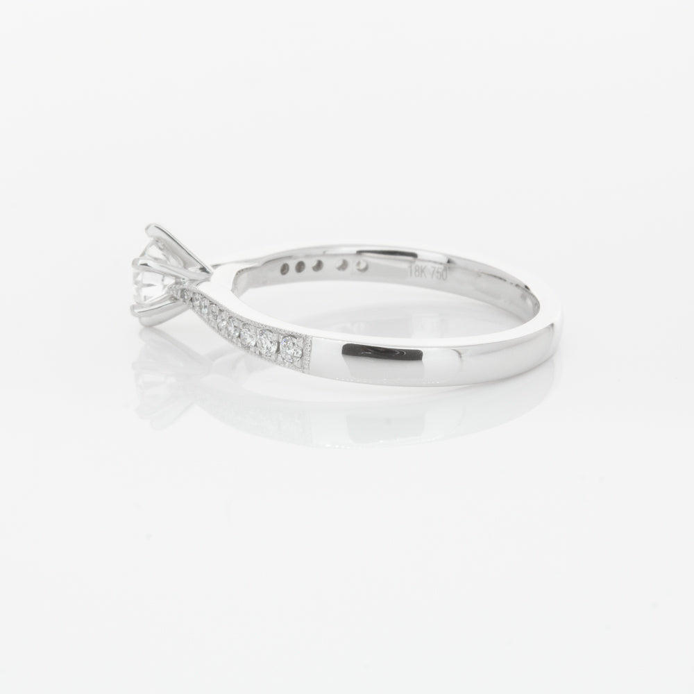 A delicate diamond set band with milgrain detailing, tapers towards the zenith to showcase a sparkling diamond.