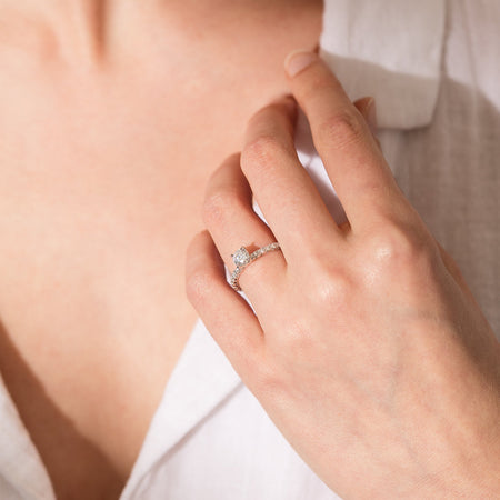 A celestial beauty, Comet radiates elegance with its orbit of sparkling round brilliant cut diamonds.