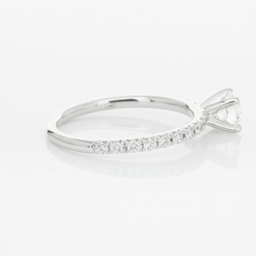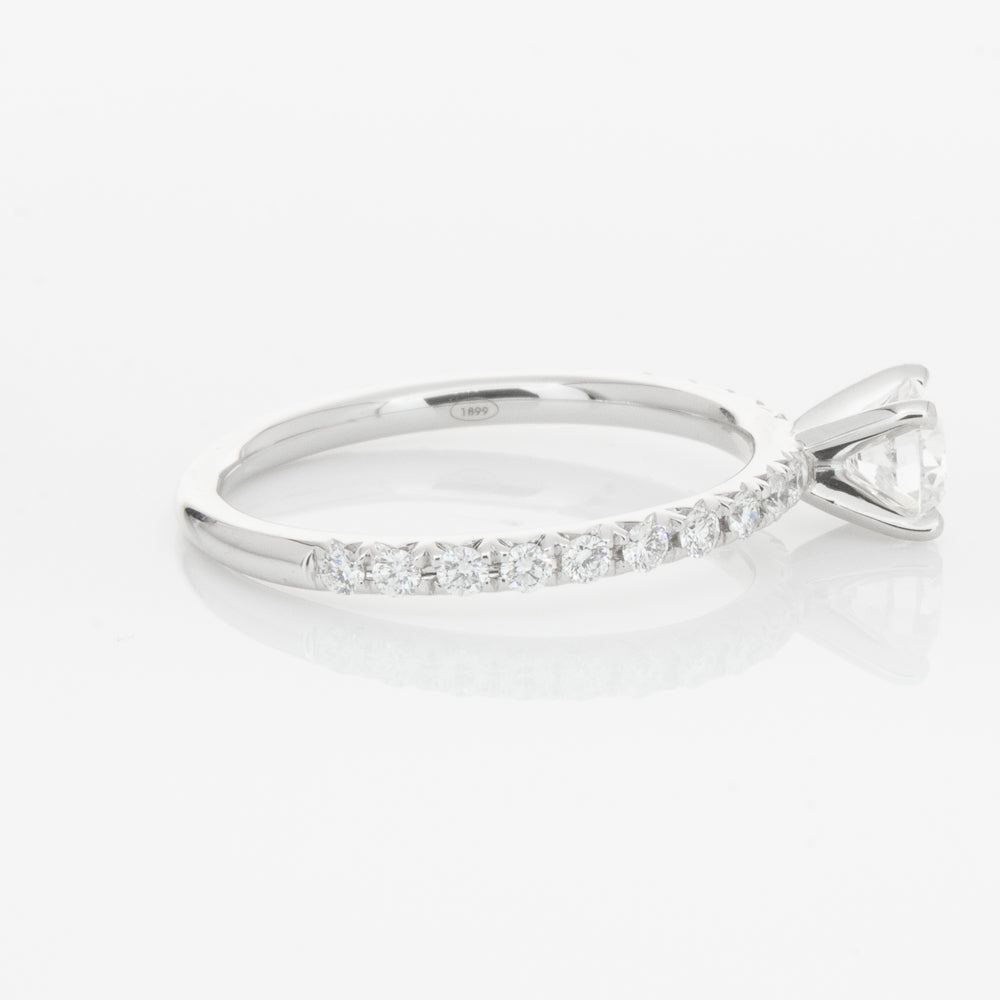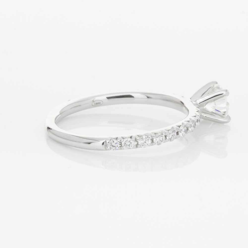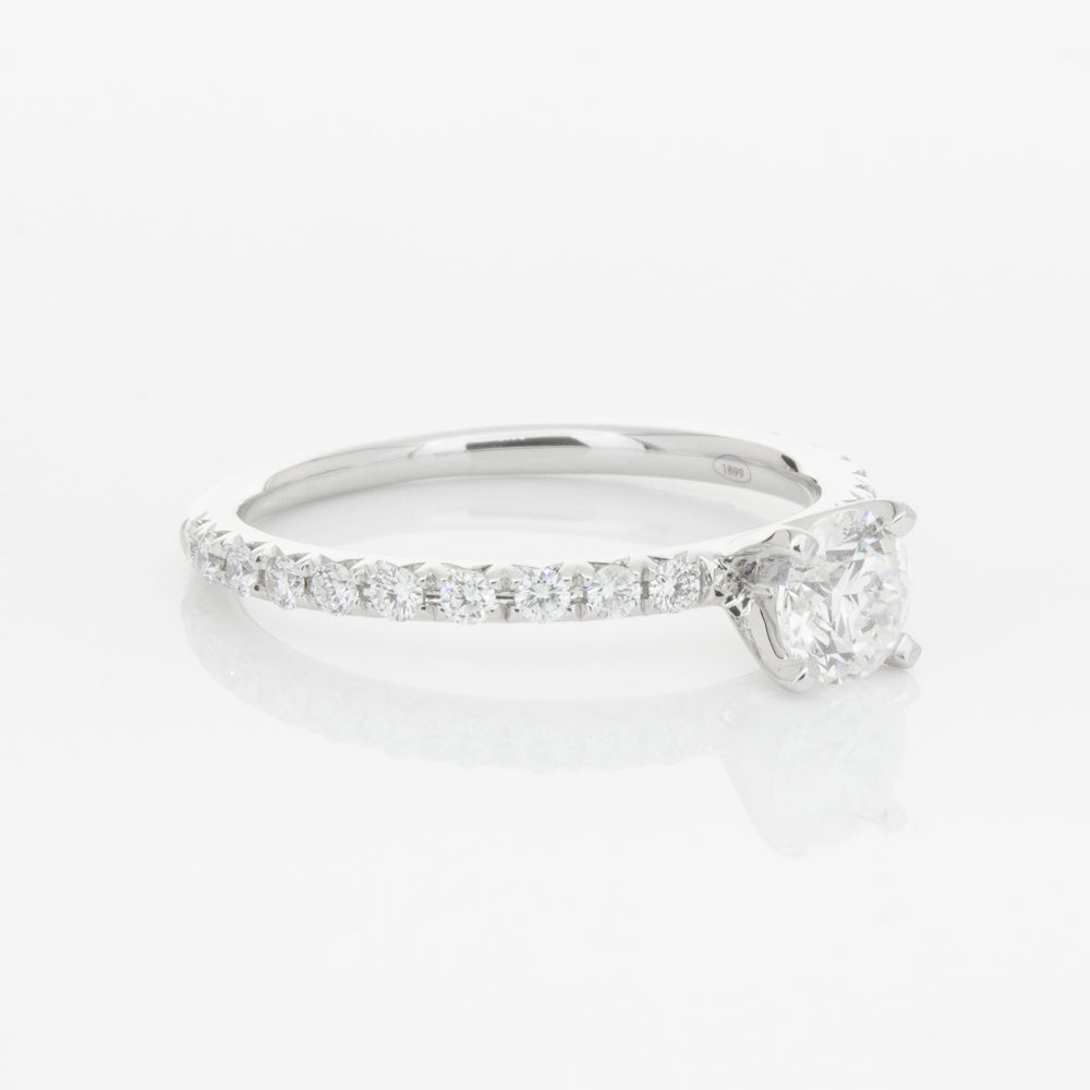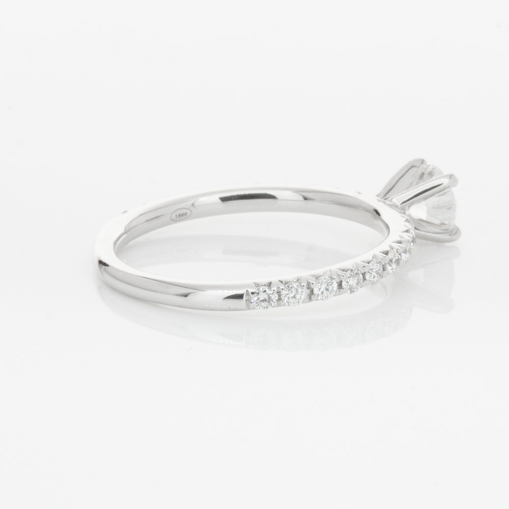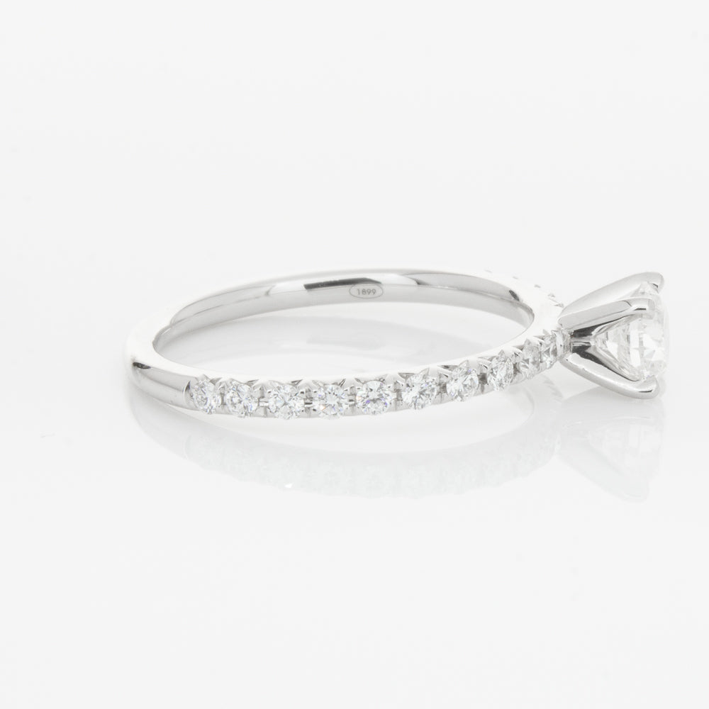 The perfect symbol of your love. This shimmering diamond Comet ring is crafted from luxurious high palladium 18ct white gold from our signature 1899 collection and features a sparkling round brilliant cut diamond resting on delicate diamond set band. A truly elegant ring that she will adore.