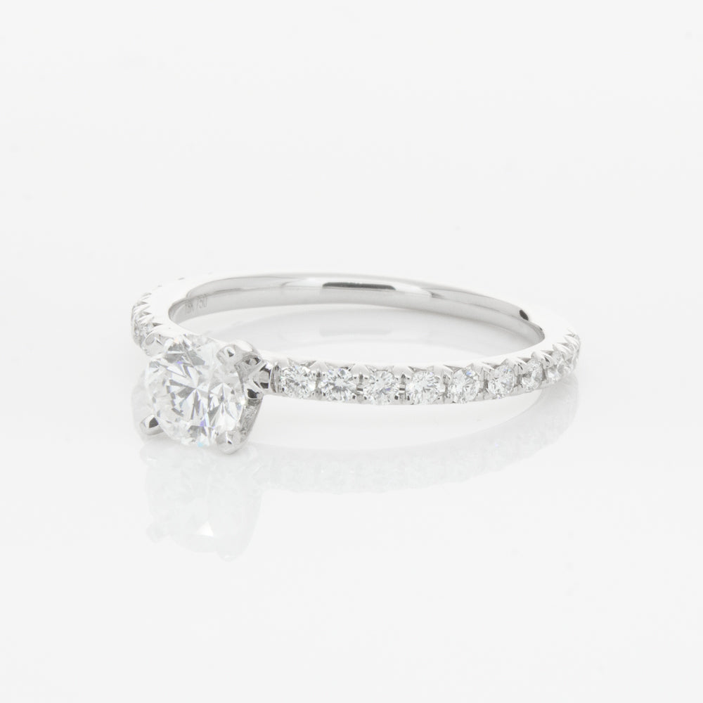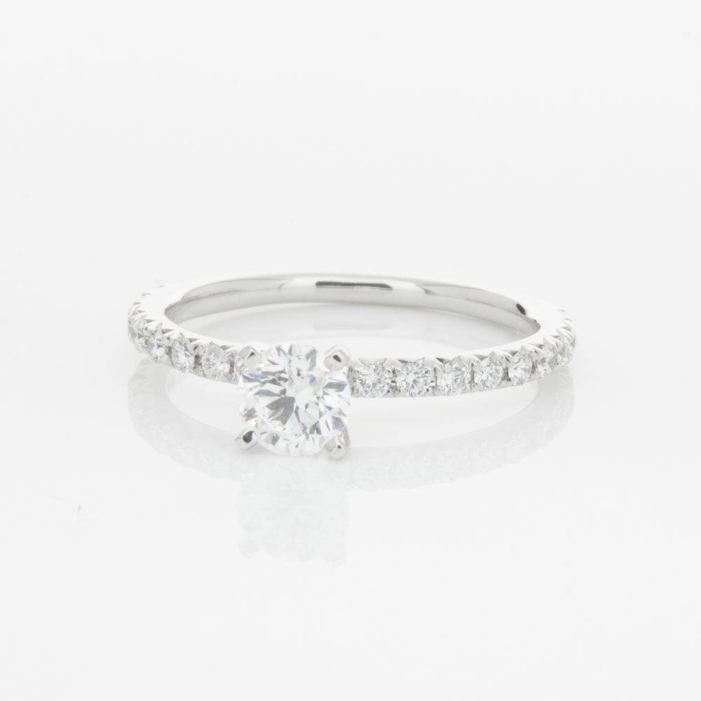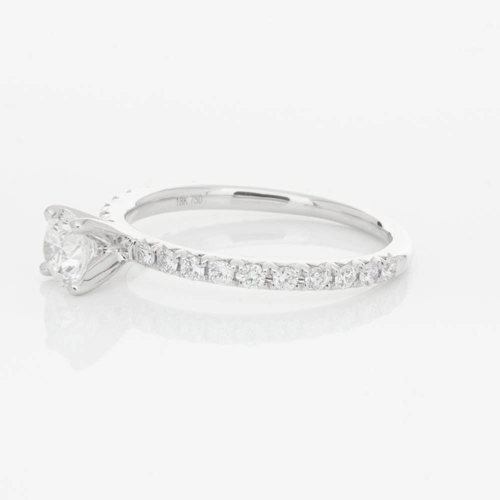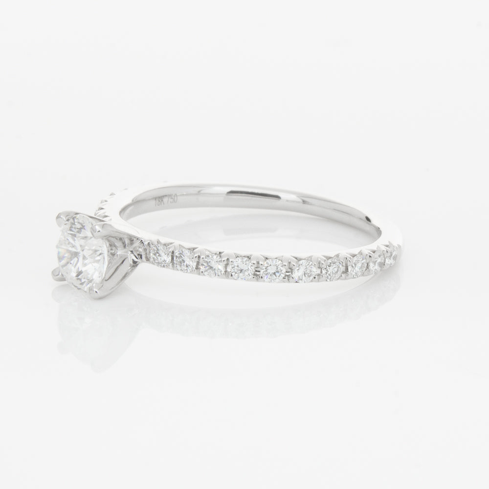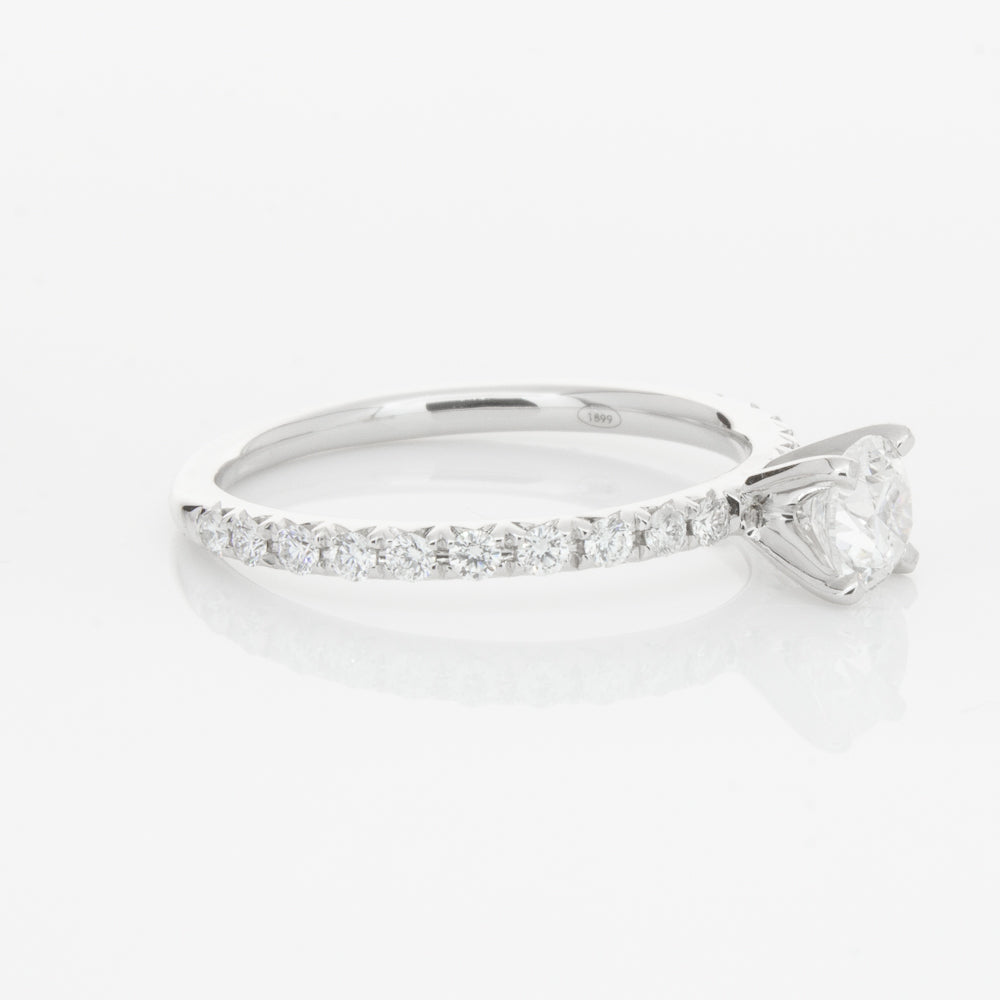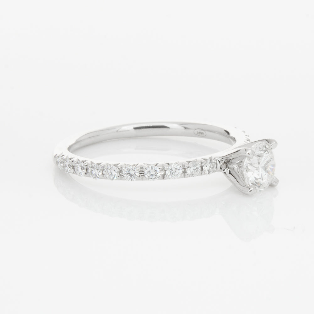 The perfect symbol of your love. This shimmering diamond Comet ring is crafted from luxurious high palladium 18ct white gold from our signature 1899 collection and features a sparkling round brilliant cut diamond resting on delicate diamond set band. A truly elegant ring that she will adore.