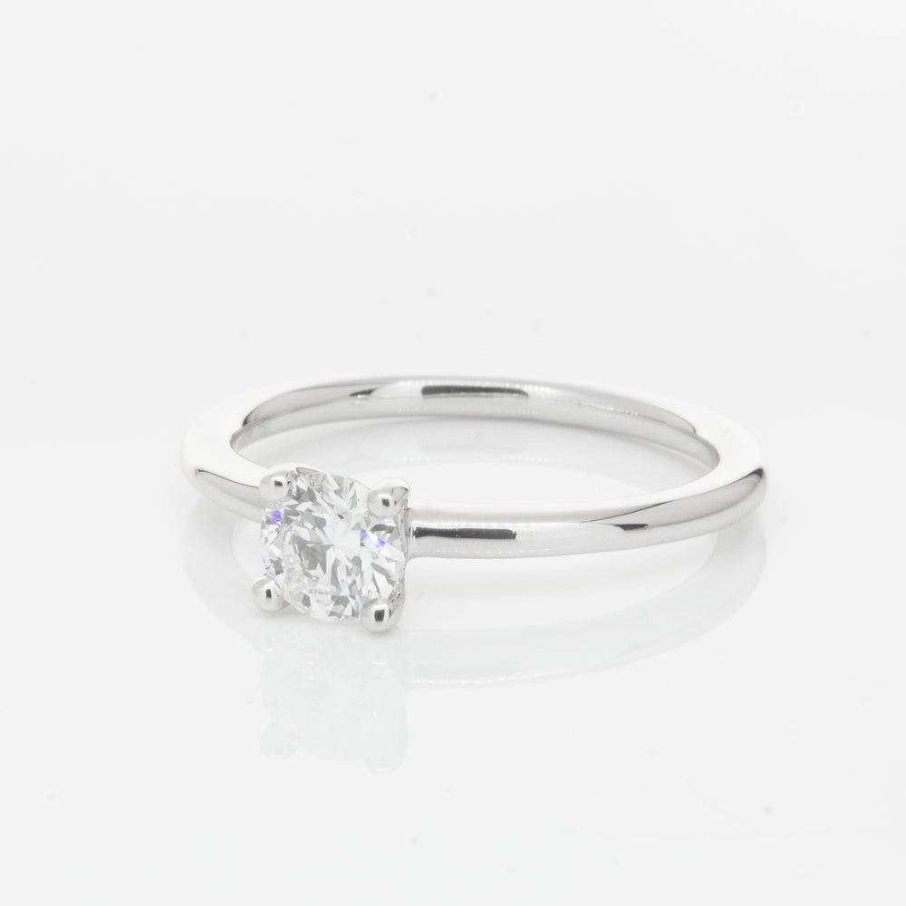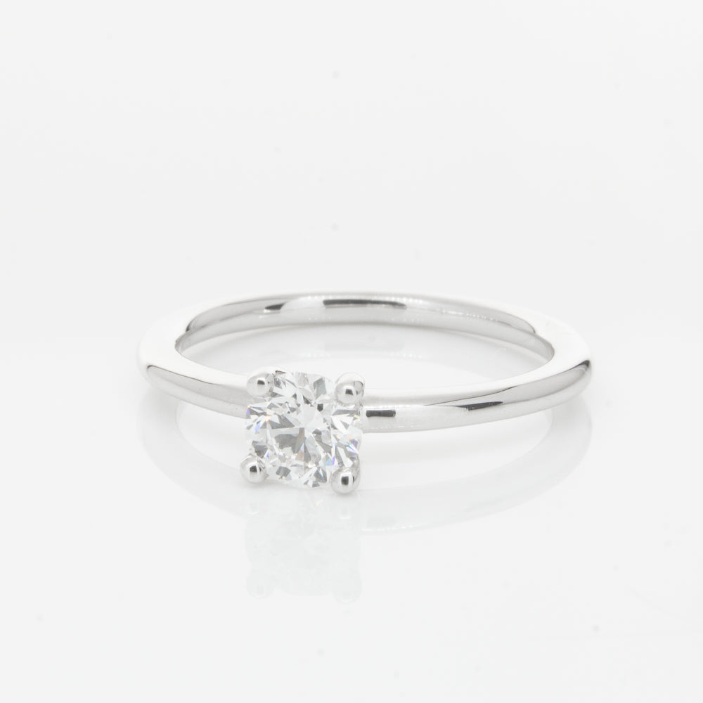 A fine minimalist design, Melba was named after the Greek word for 'slender'. The barely-there slim band allows the diamond to float above the finger.