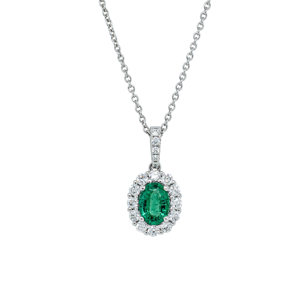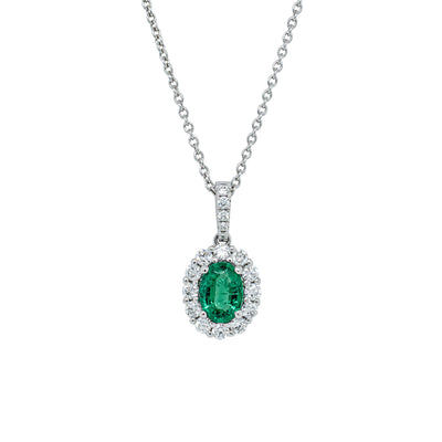 18ct White Gold .63ct Emerald & Diamond Halo Pendant