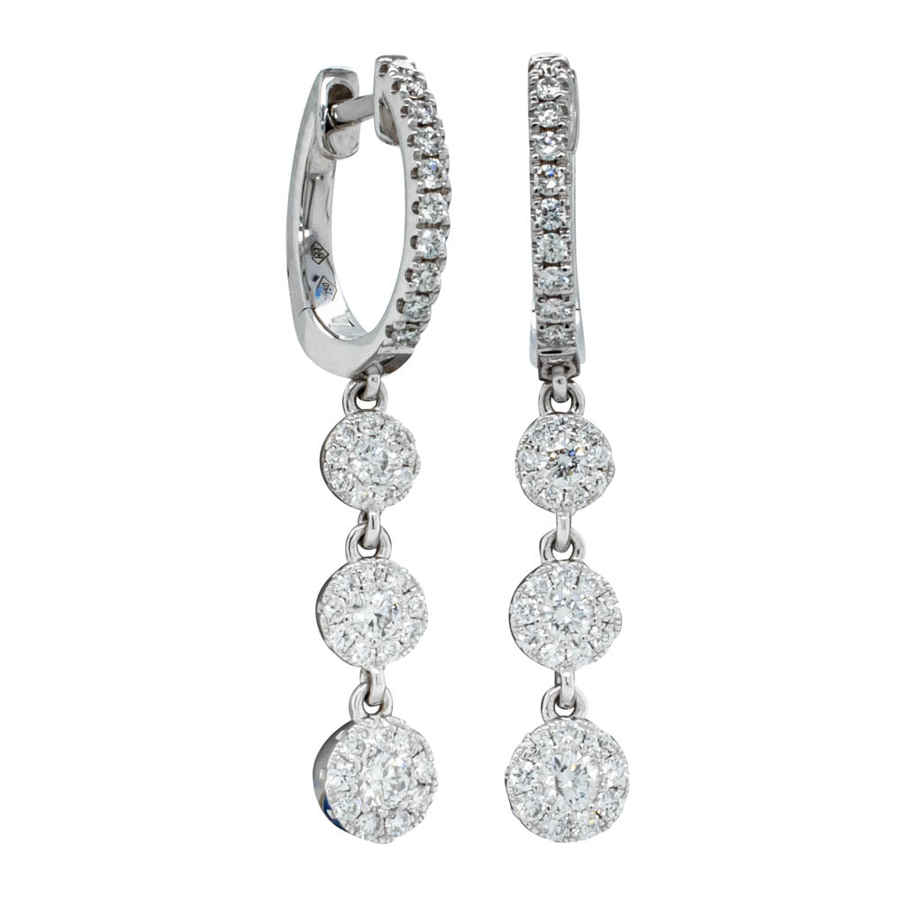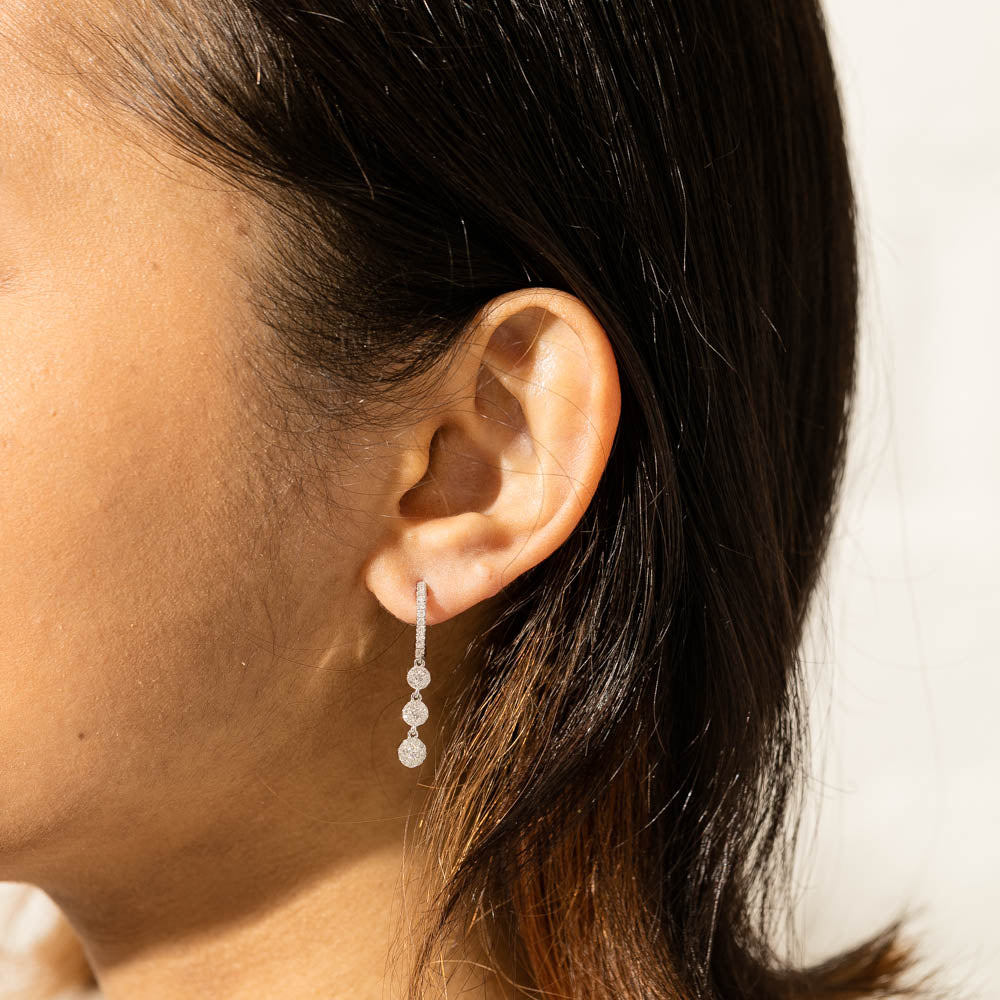 Carefully crafted in 18ct white gold, these breathtaking earrings feature round brilliant cut diamonds consisting of graduated diamond clusters.
