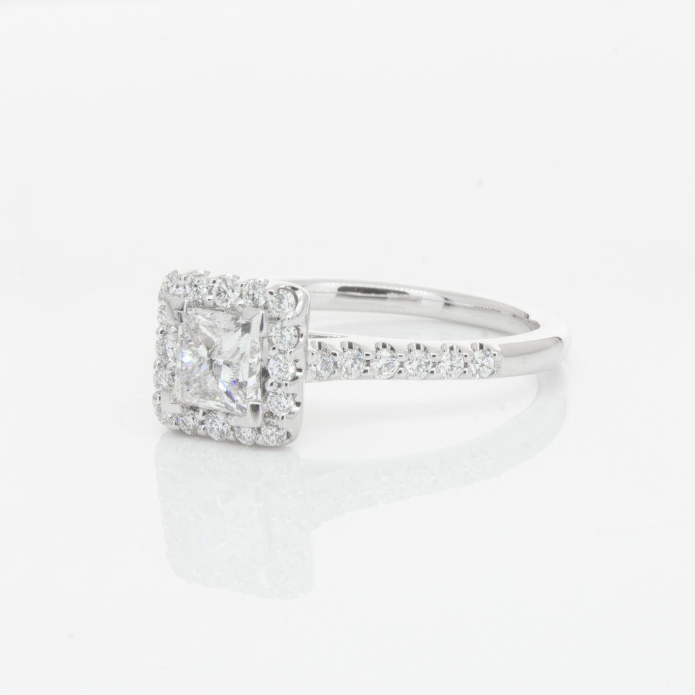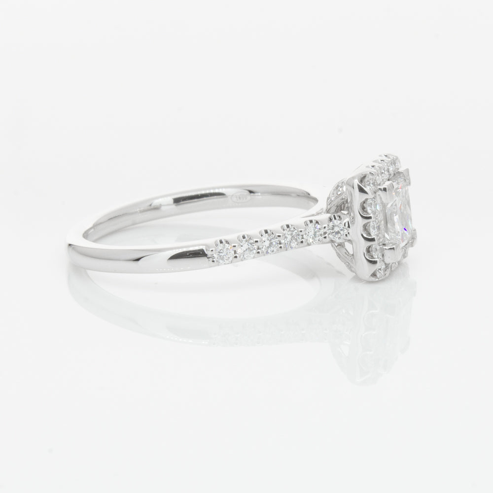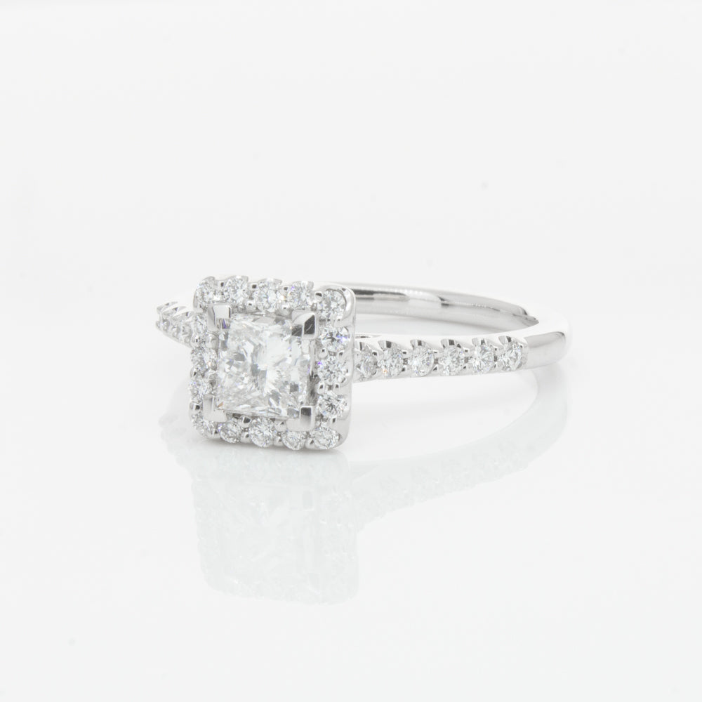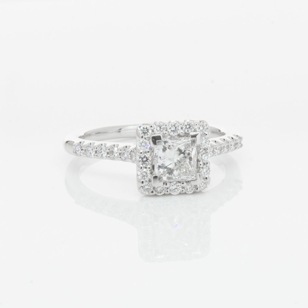 Crafted from luxurious 18ct white gold from our signature 1899 collection, this twinkling Manhattan ring features an impressive princess cut diamond complimented by a dazzling diamond halo and band.