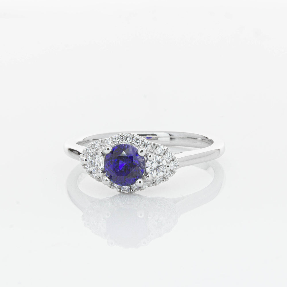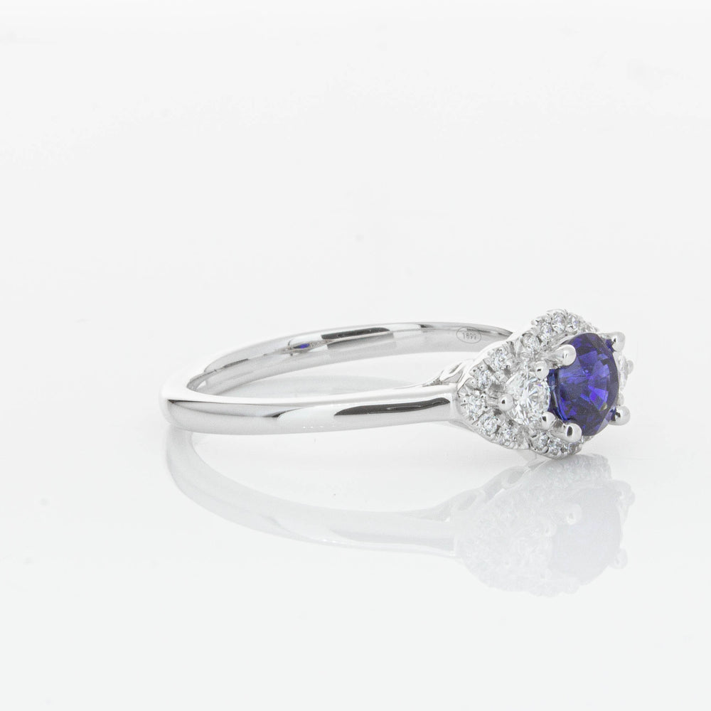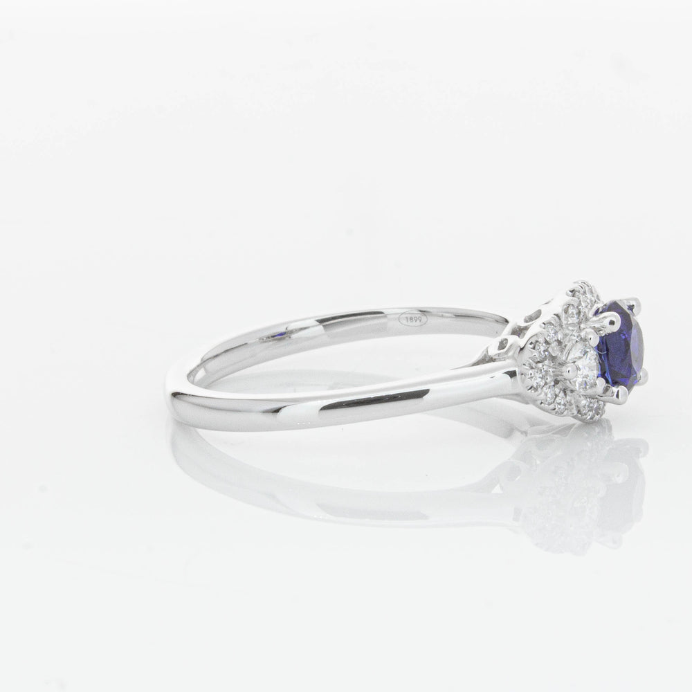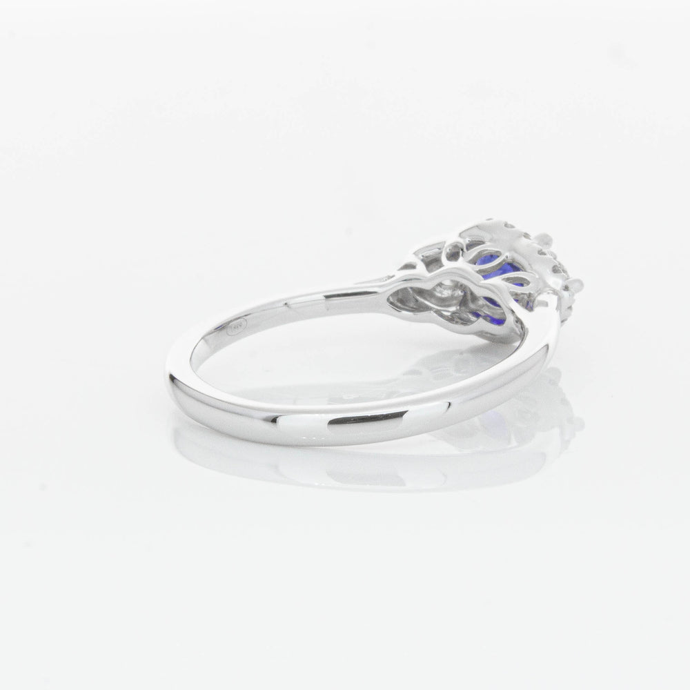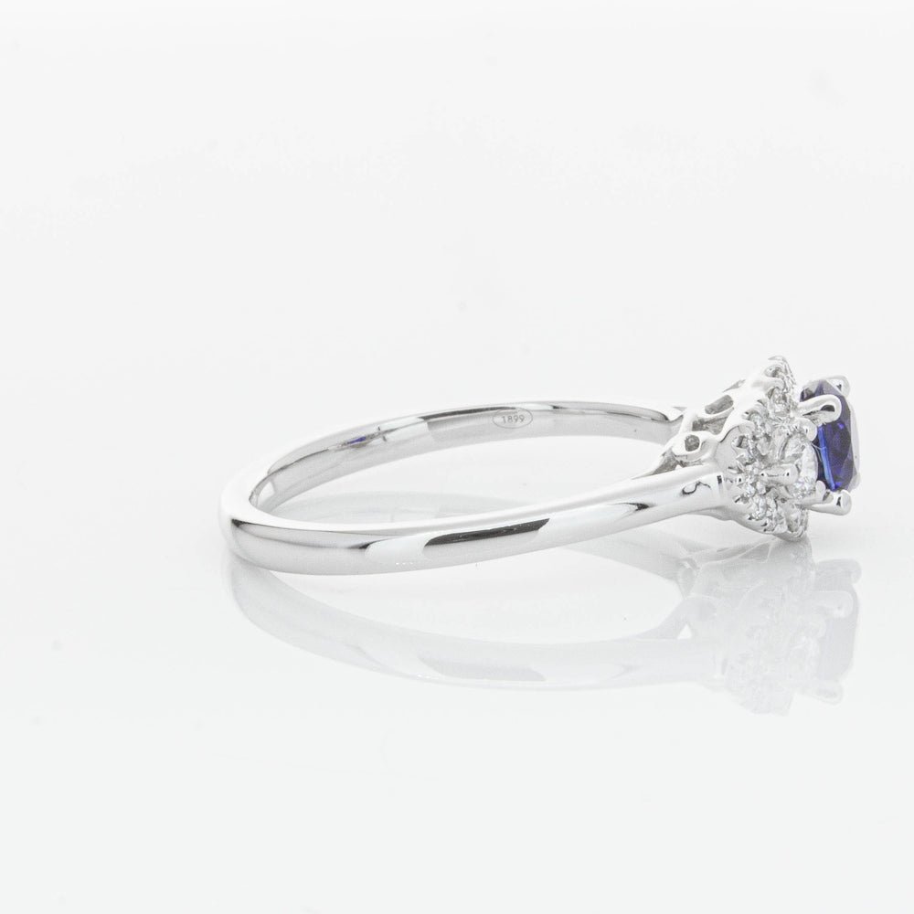 Make it a moment you will never forget with this dazzling diamond Posie ring from our signature 1899 collection. Crafted in 18ct white gold with high palladium, the sapphire is surrounded by a lovely halo of diamonds.