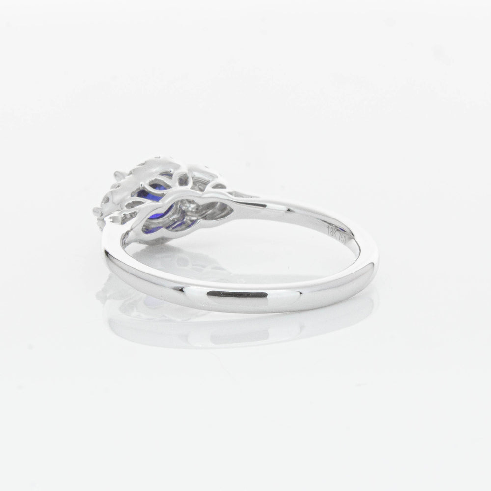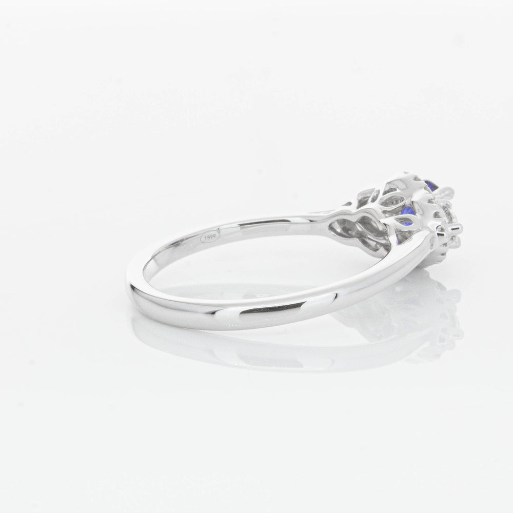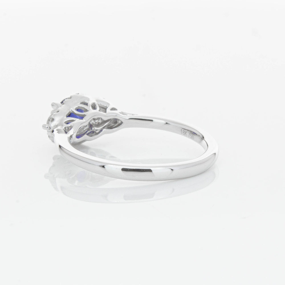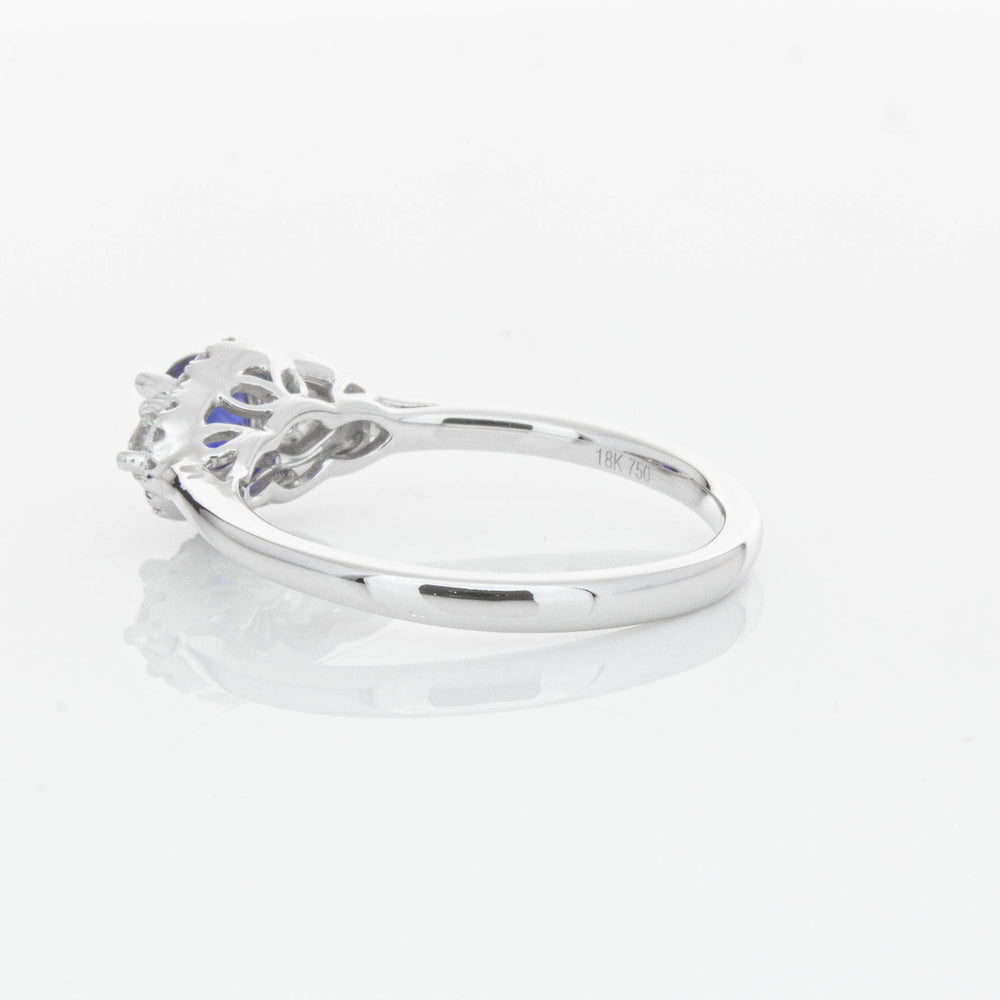 Make it a moment you will never forget with this dazzling diamond Posie ring from our signature 1899 collection. Crafted in 18ct white gold with high palladium, the sapphire is surrounded by a lovely halo of diamonds.