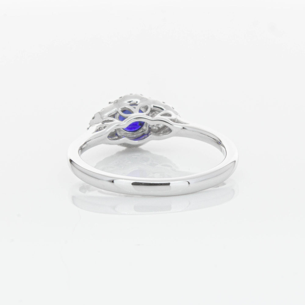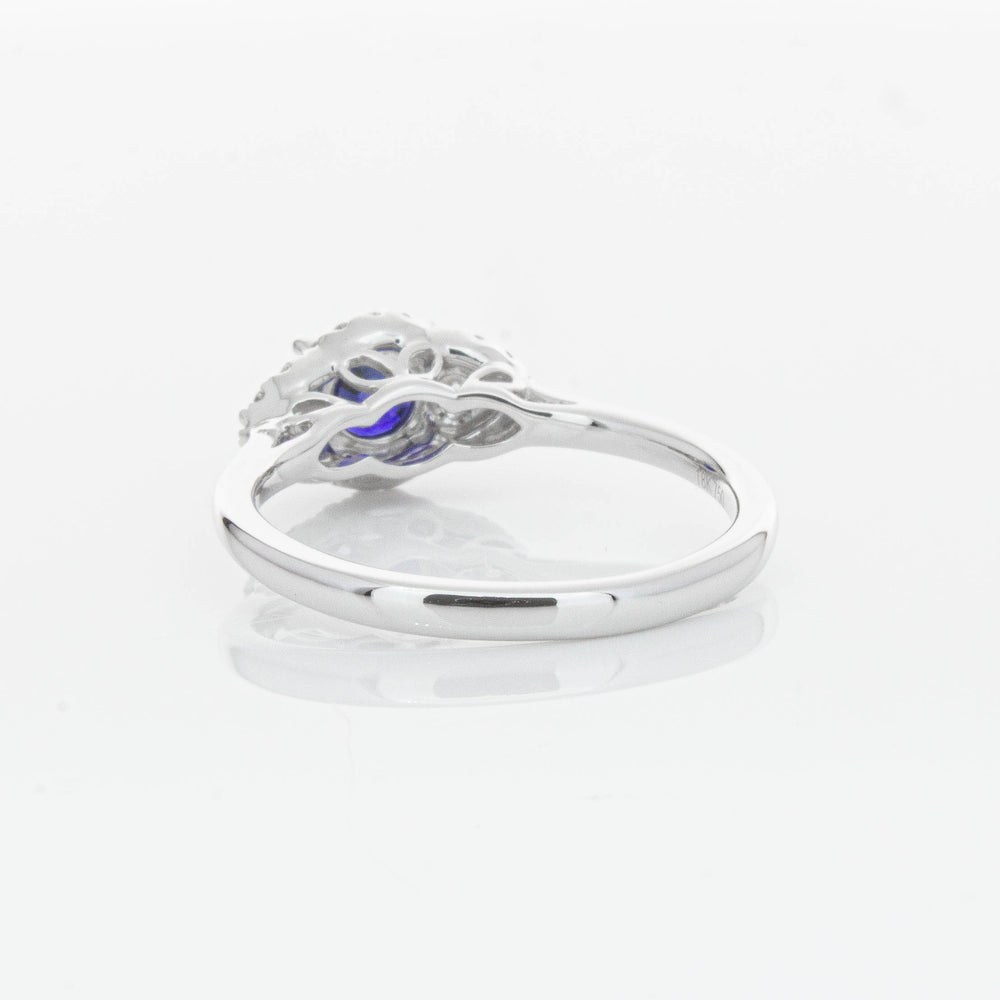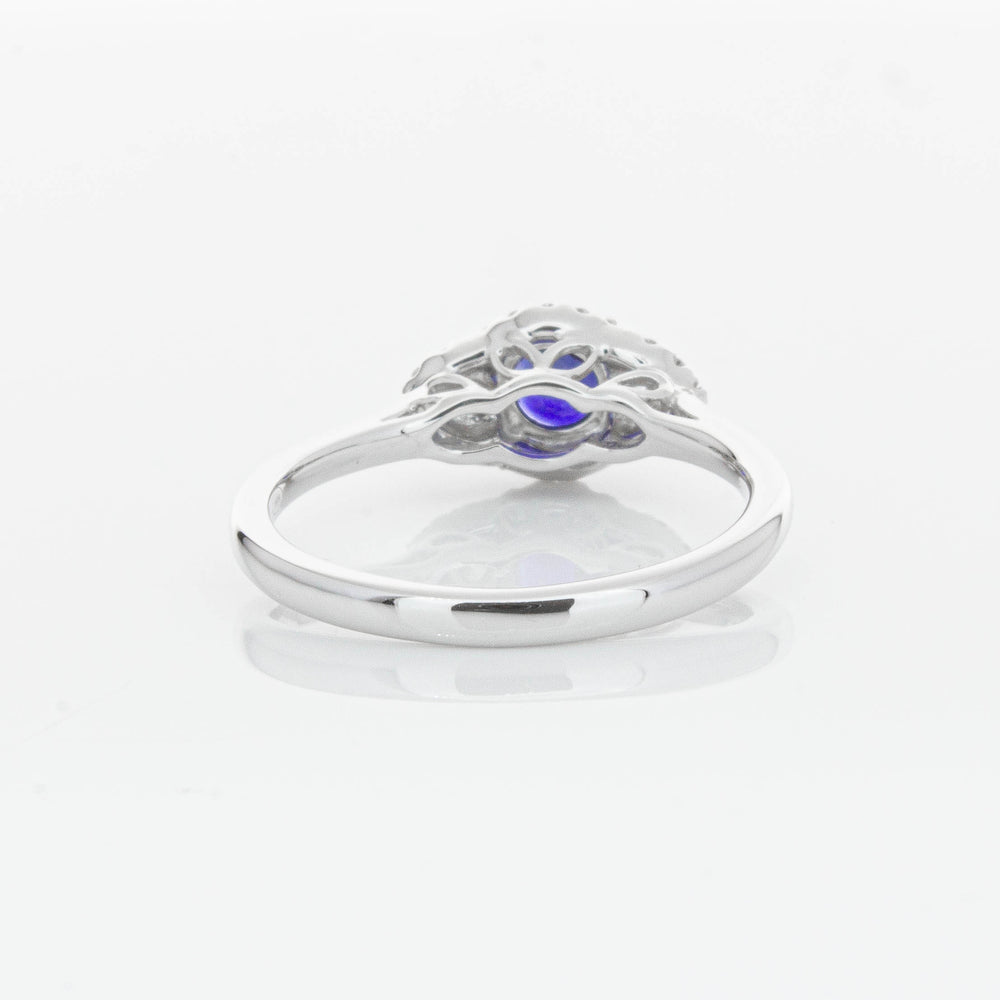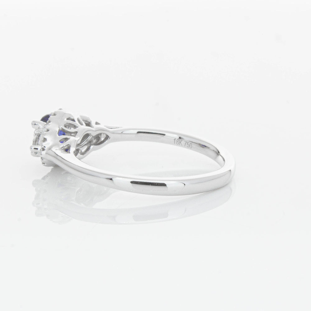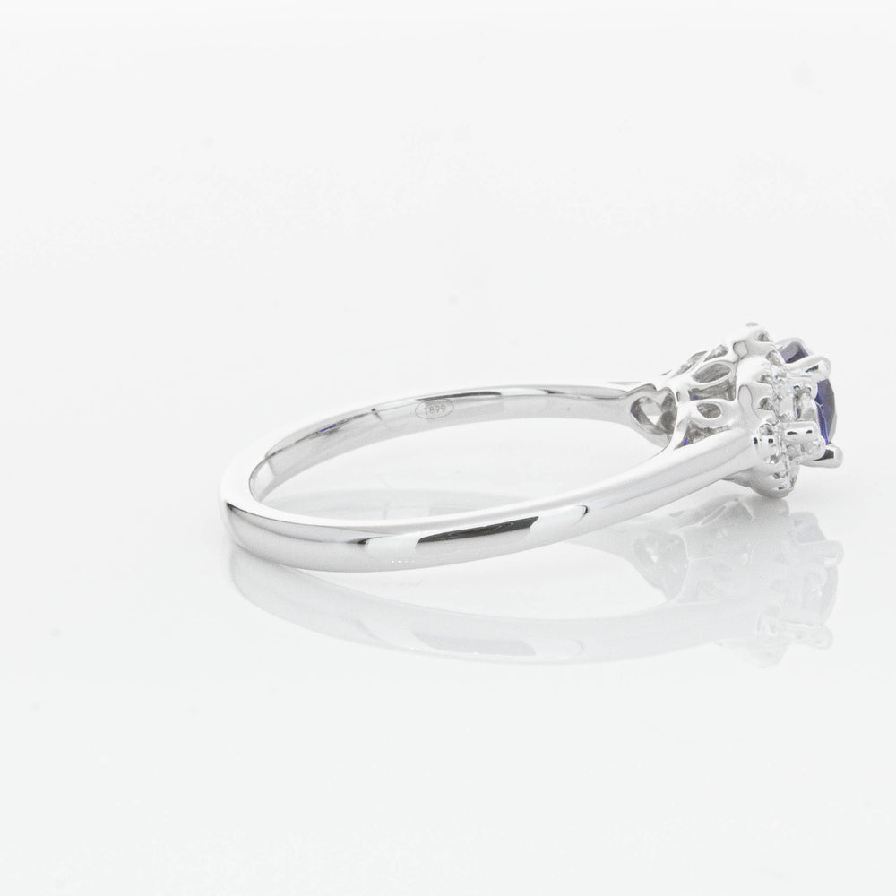 Make it a moment you will never forget with this dazzling diamond Posie ring from our signature 1899 collection. Crafted in 18ct white gold with high palladium, the sapphire is surrounded by a lovely halo of diamonds.