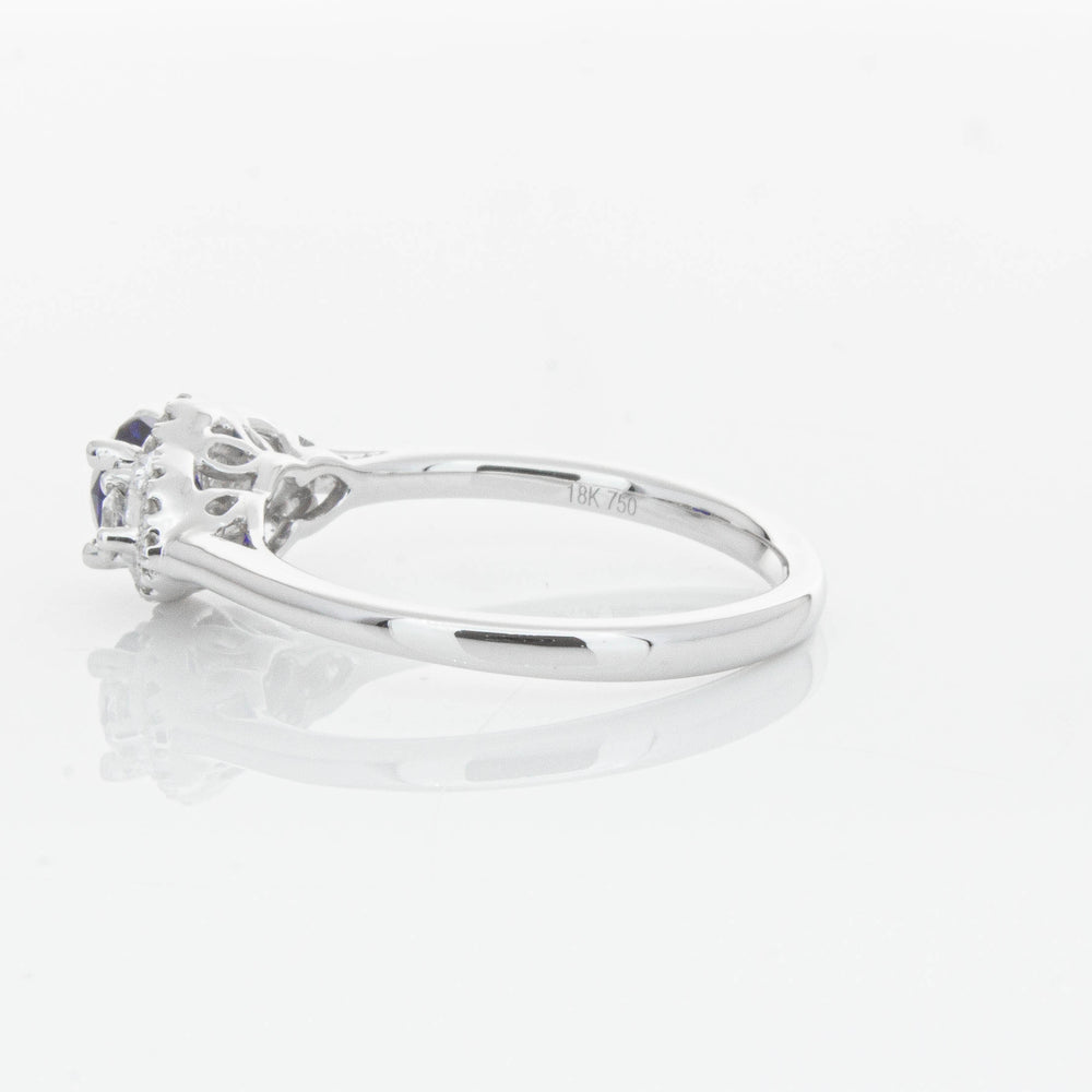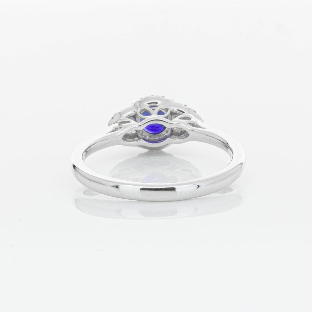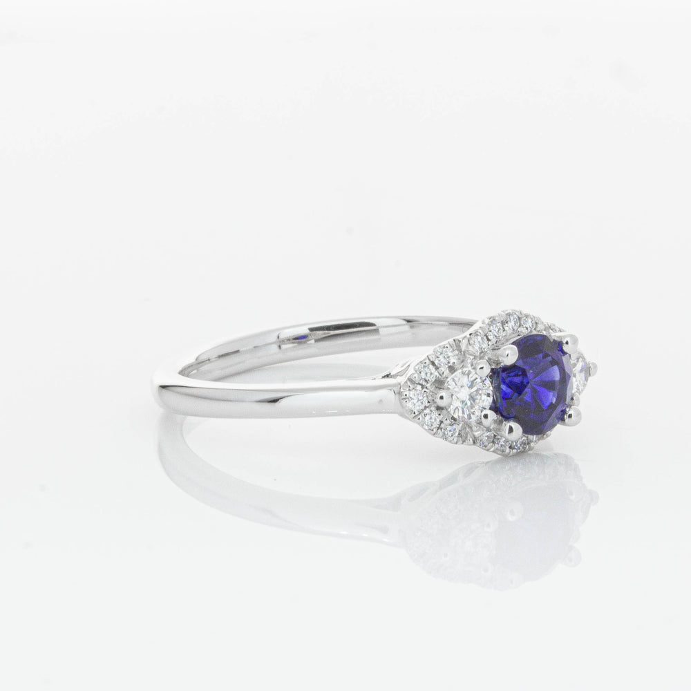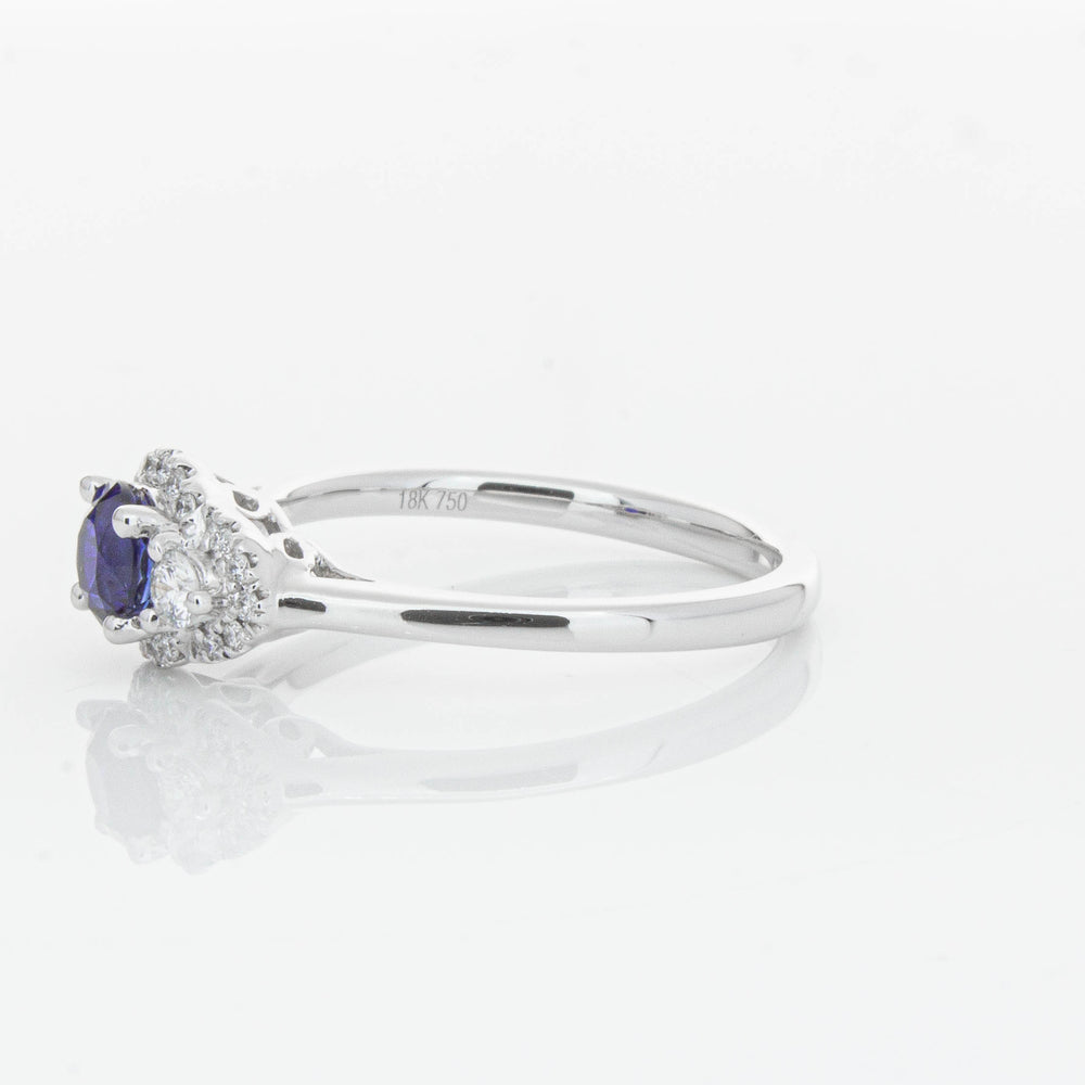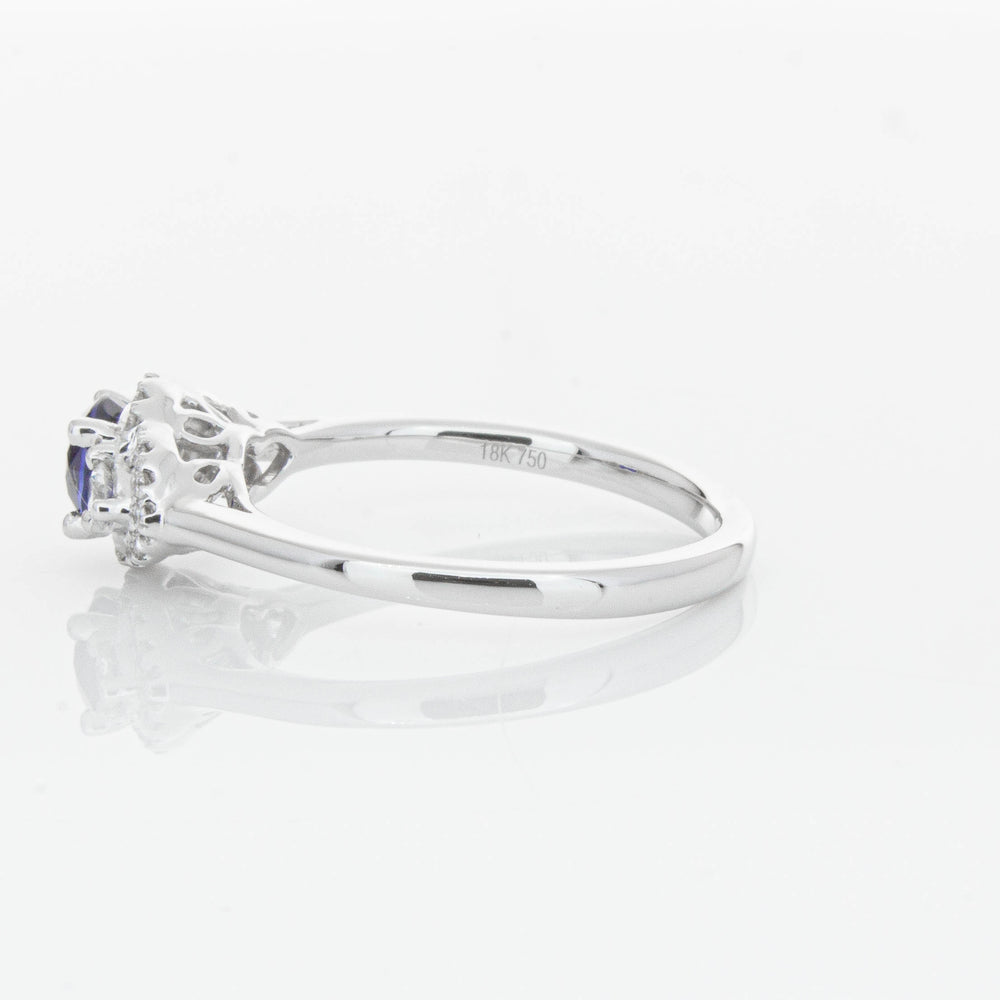 Make it a moment you will never forget with this dazzling diamond Posie ring from our signature 1899 collection. Crafted in 18ct white gold with high palladium, the sapphire is surrounded by a lovely halo of diamonds.
