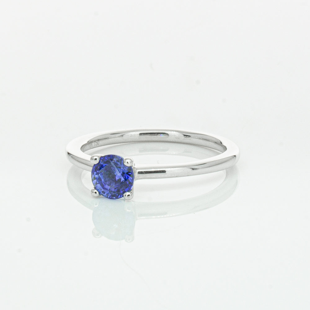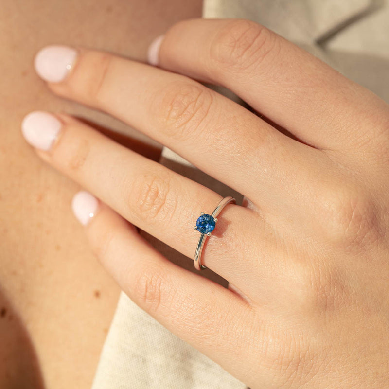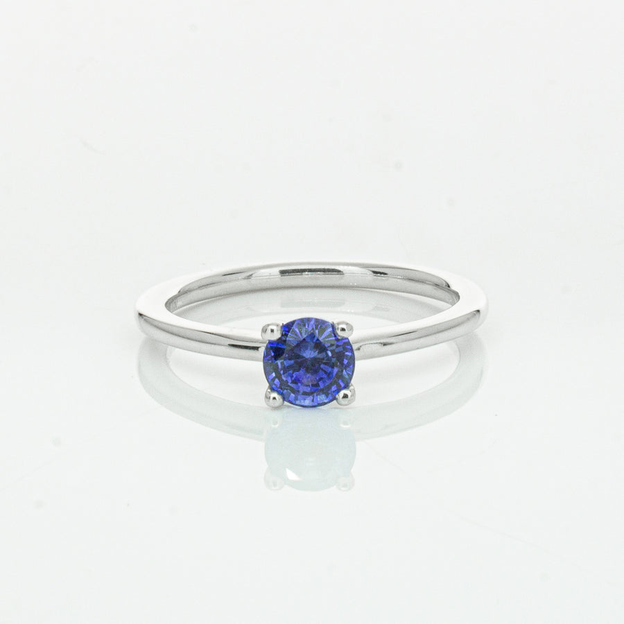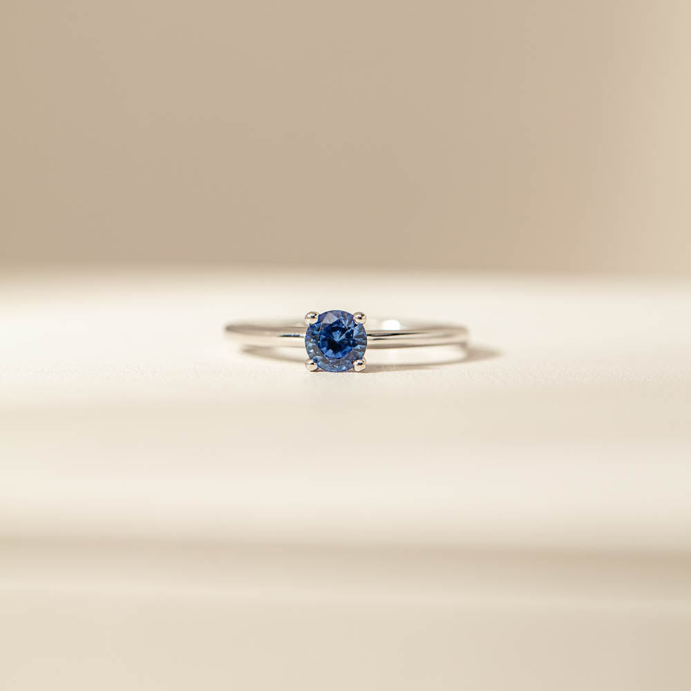 Crafted in 18ct white gold from our signature 1899 collection, this Melba ring boasts a round faceted sapphire set in an elegant 18ct white gold four claw solitaire setting.