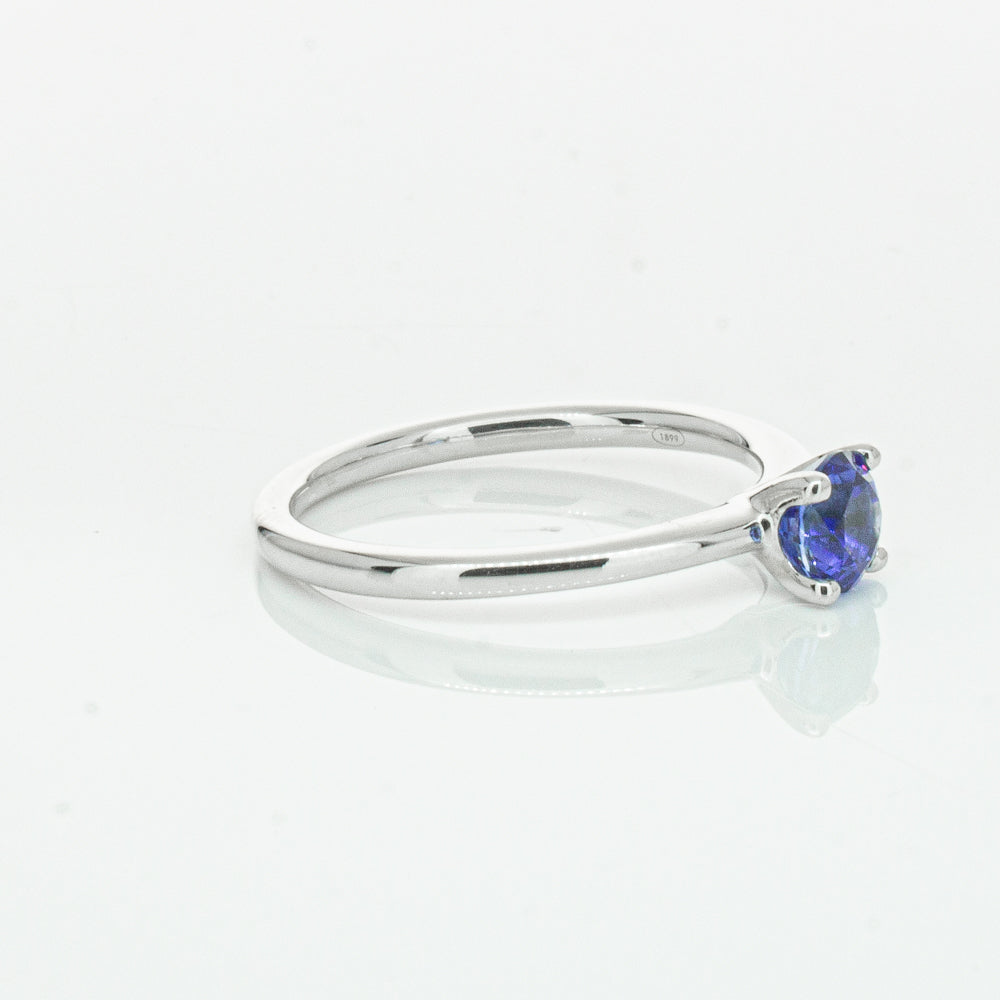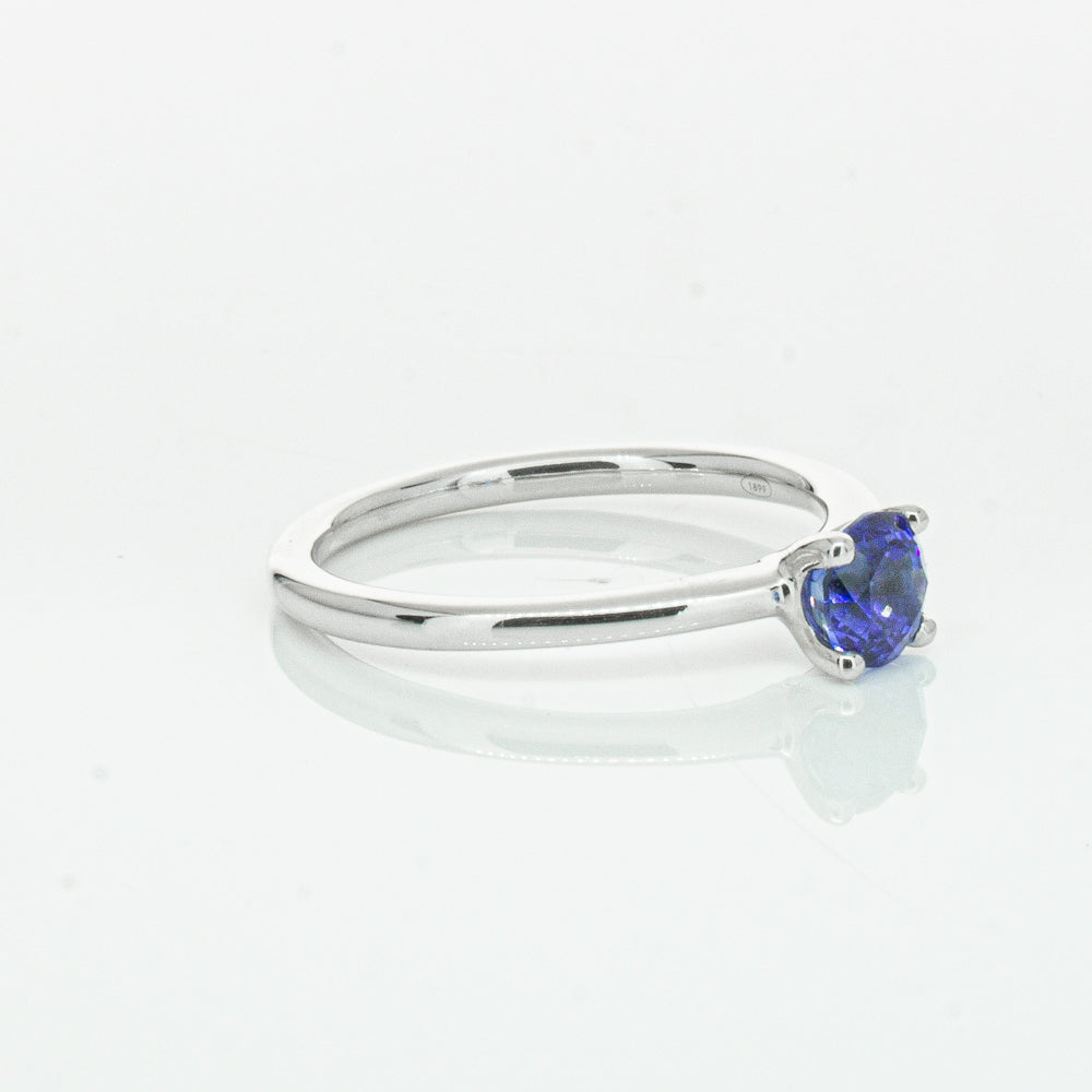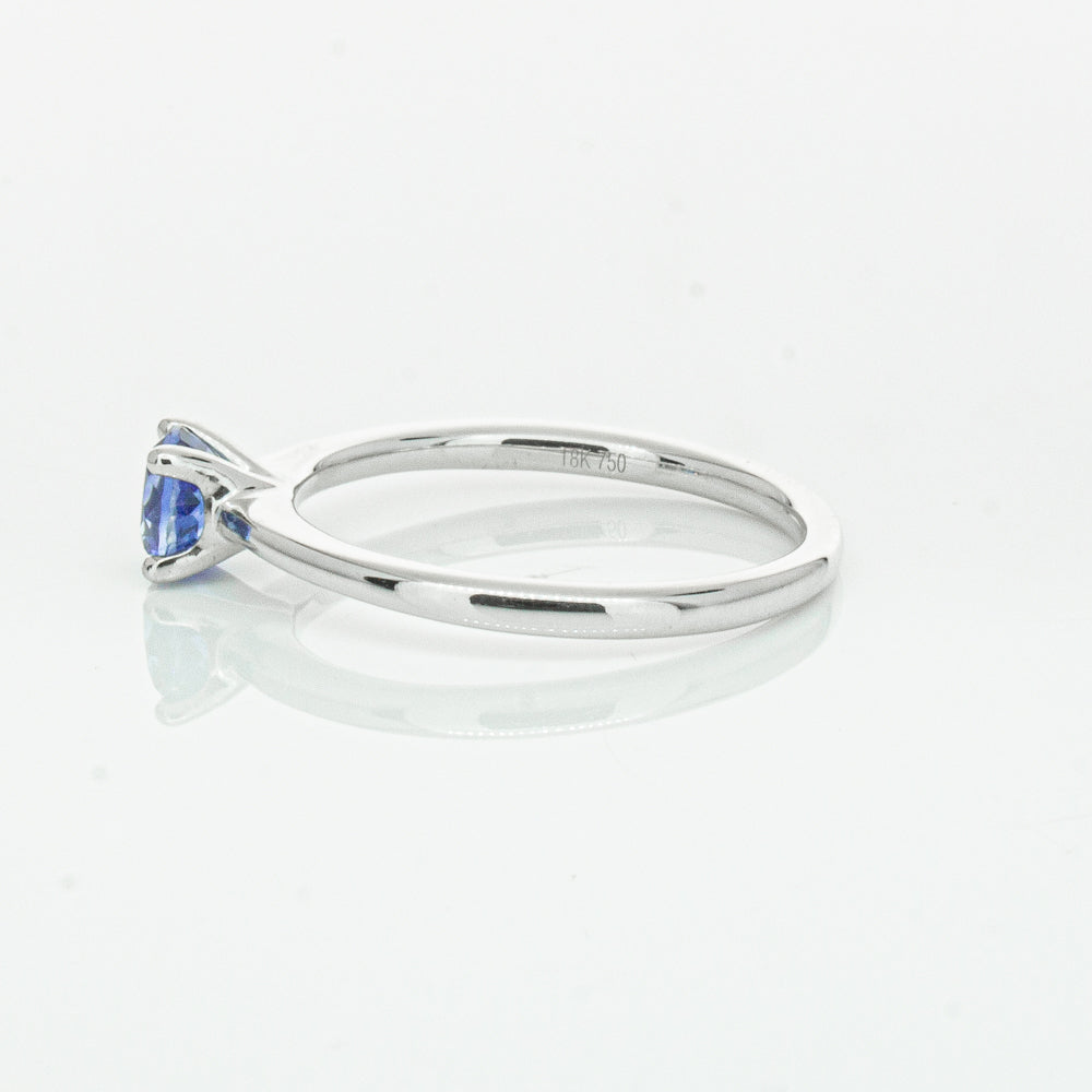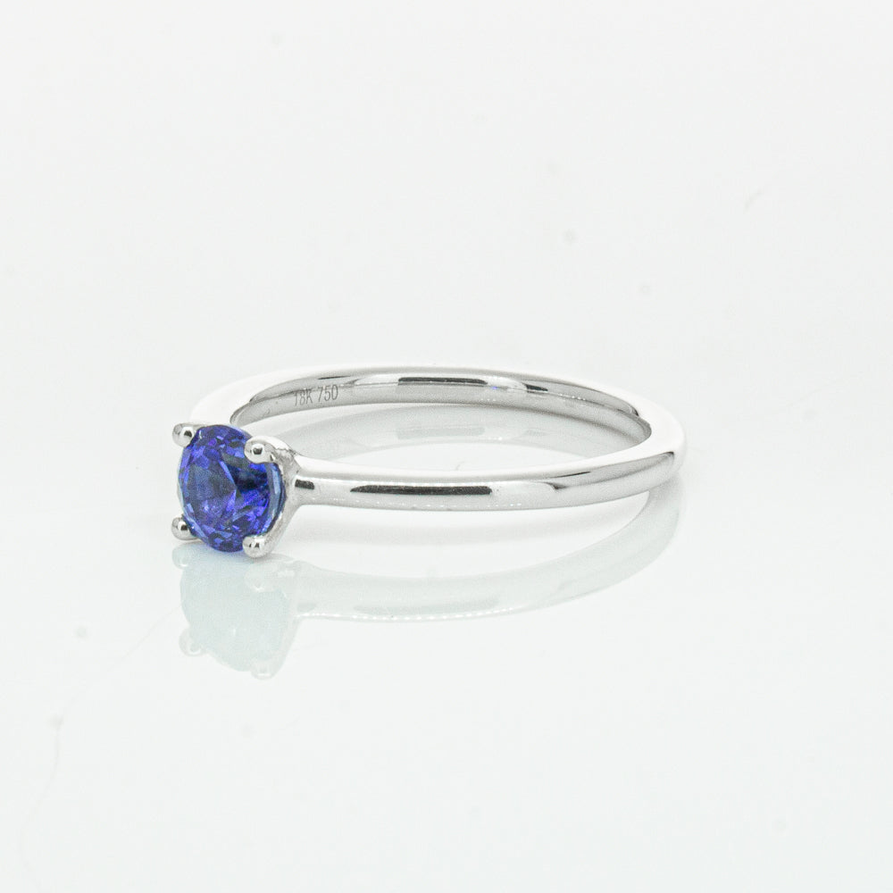 Crafted in 18ct white gold from our signature 1899 collection, this Melba ring boasts a round faceted sapphire set in an elegant 18ct white gold four claw solitaire setting.