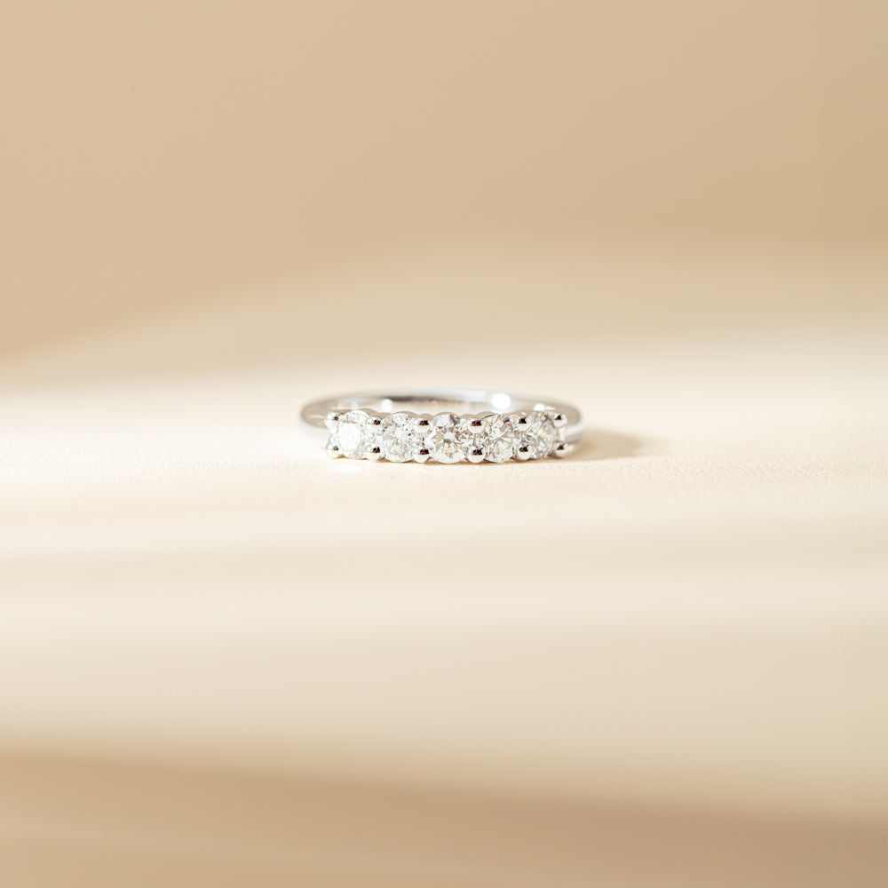 Experience the elegance of our diamond Panorama Ring. This breathtaking ring features five stunning diamonds set in 18ct white gold, creating a panoramic view of beauty on your finger.