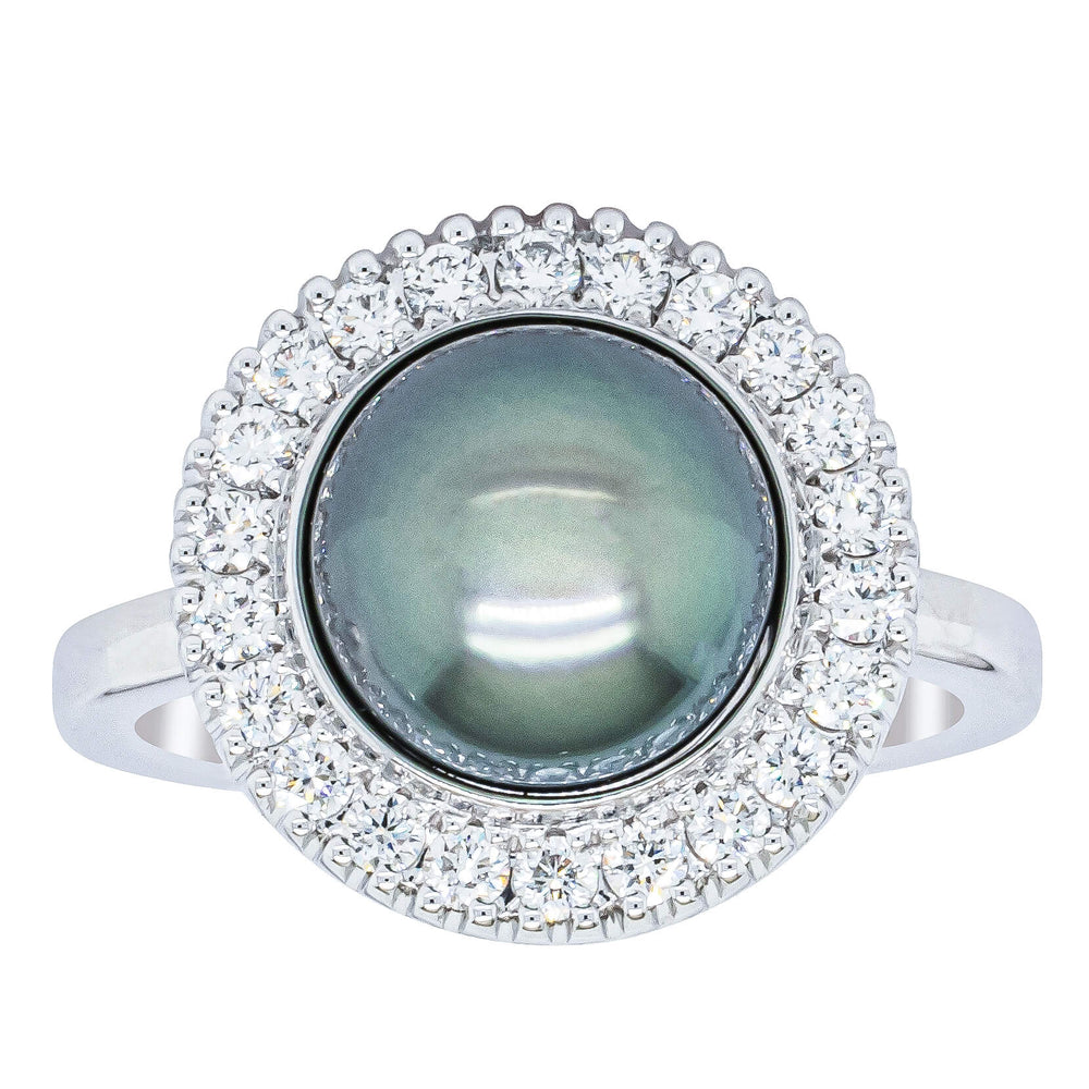 Classic and timeless, this beautiful Daisy ring boasts a black Tahitian pearl, accompanied by a halo of sparkling round brilliant cut diamonds. A simply breathtaking piece that you will adore wearing!