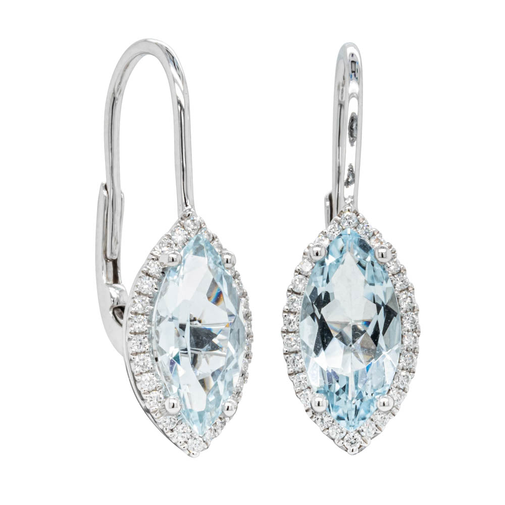 A vision of calming sea colour, these aquamarine and diamond earrings featuring marquise faceted aquamarines framed by round brilliant cut diamonds make a luminous statement in these gorgeous earrings from our signature 1899 collection.