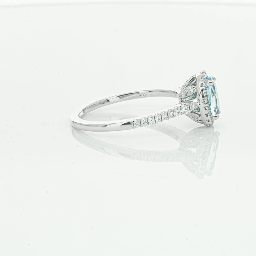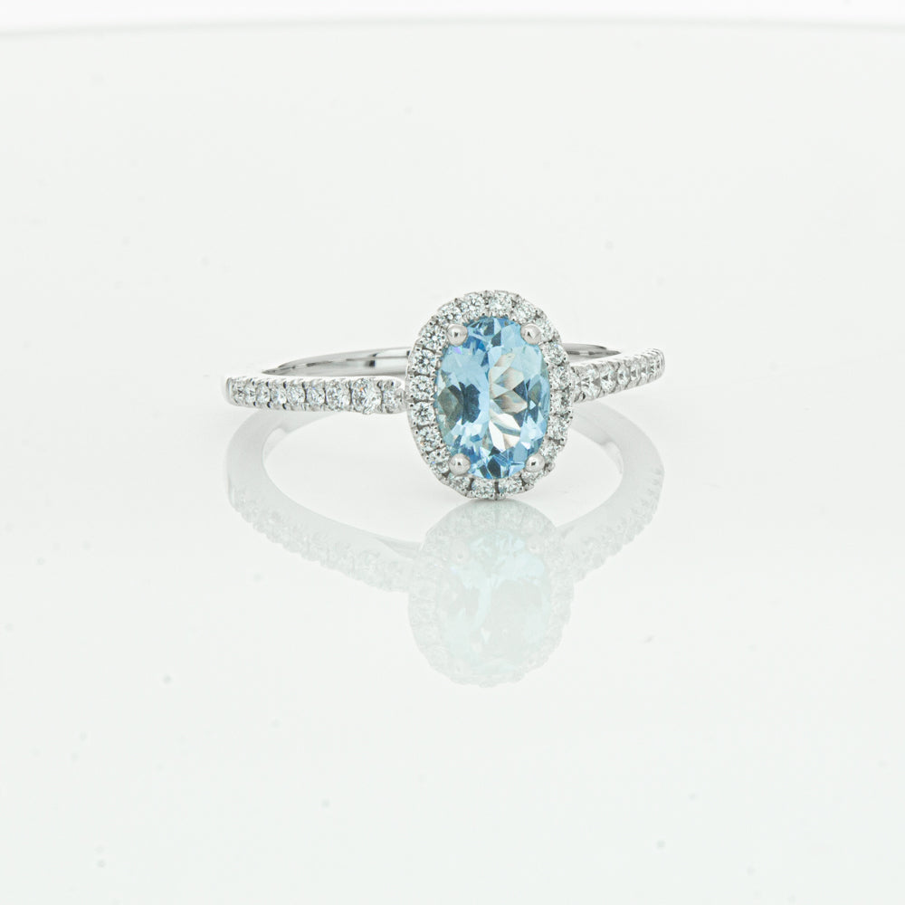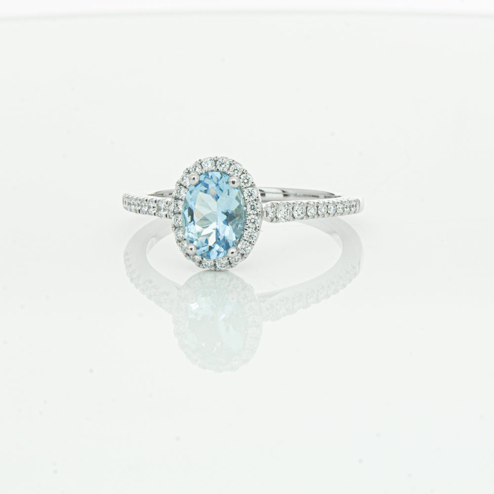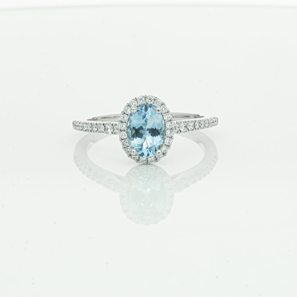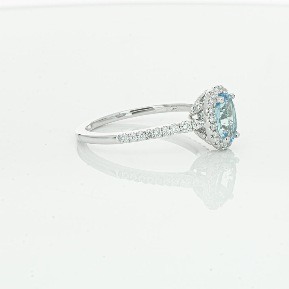 Calming blue oval cut Aquamarine combines with exceptional sparkle to make a luminous statement in this gorgeous mini Sierra ring from our signature 1899 collection. Crafted in beautiful 18ct white gold.