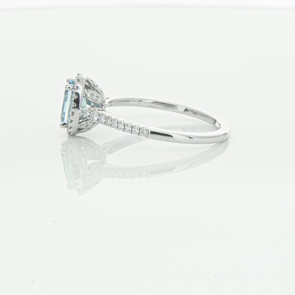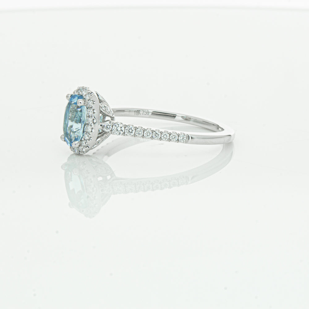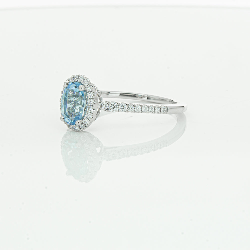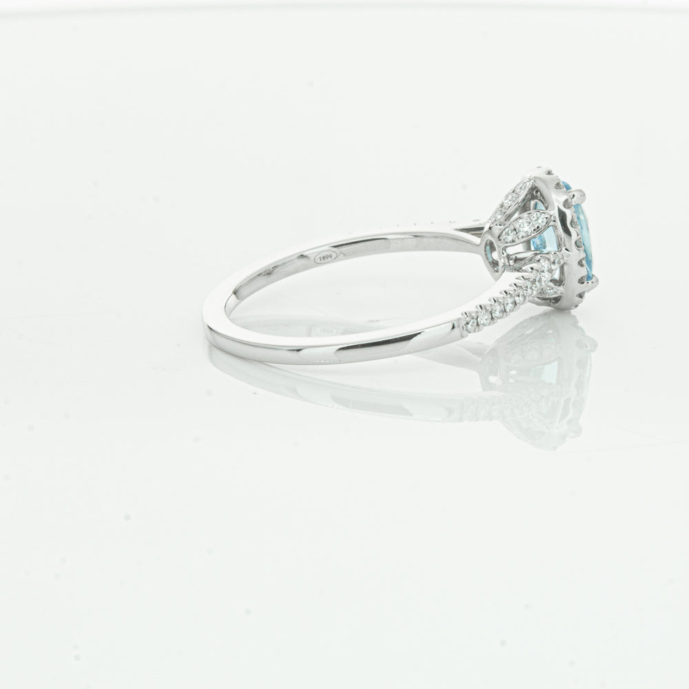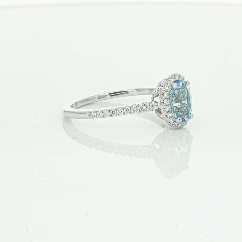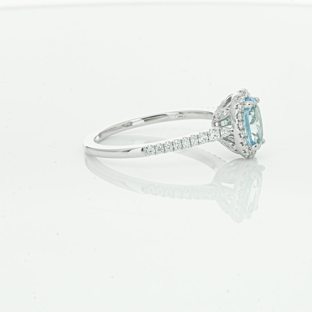 Calming blue oval cut Aquamarine combines with exceptional sparkle to make a luminous statement in this gorgeous mini Sierra ring from our signature 1899 collection. Crafted in beautiful 18ct white gold.