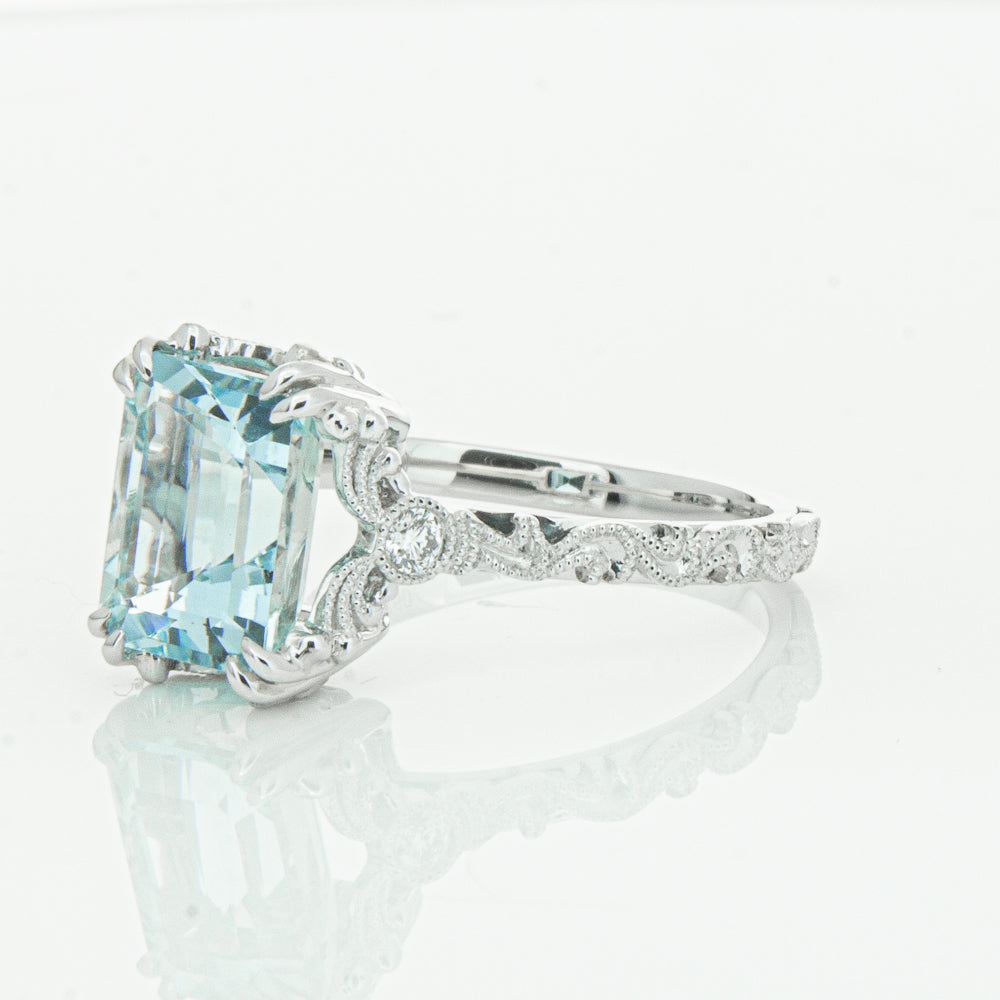 18ct White Gold Aquamarine & Diamond Romanov Ring