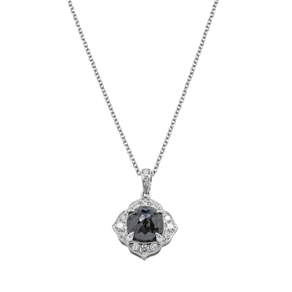 Simply dazzling, you will adore this sparkling black diamond paramount pendant for many years to come! Carefully crafted to perfection from divine 18ct white gold, this mesmerising pendant from our signature 1899 collection. boasts one shimmering black diamond framed by a glittering decorative diamond halo. A beautiful vintage inspired design that you will cherish forever.