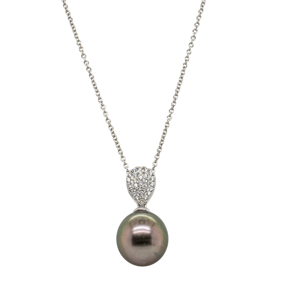 18ct White Gold Black Pearl & Diamond Aegean Pendant