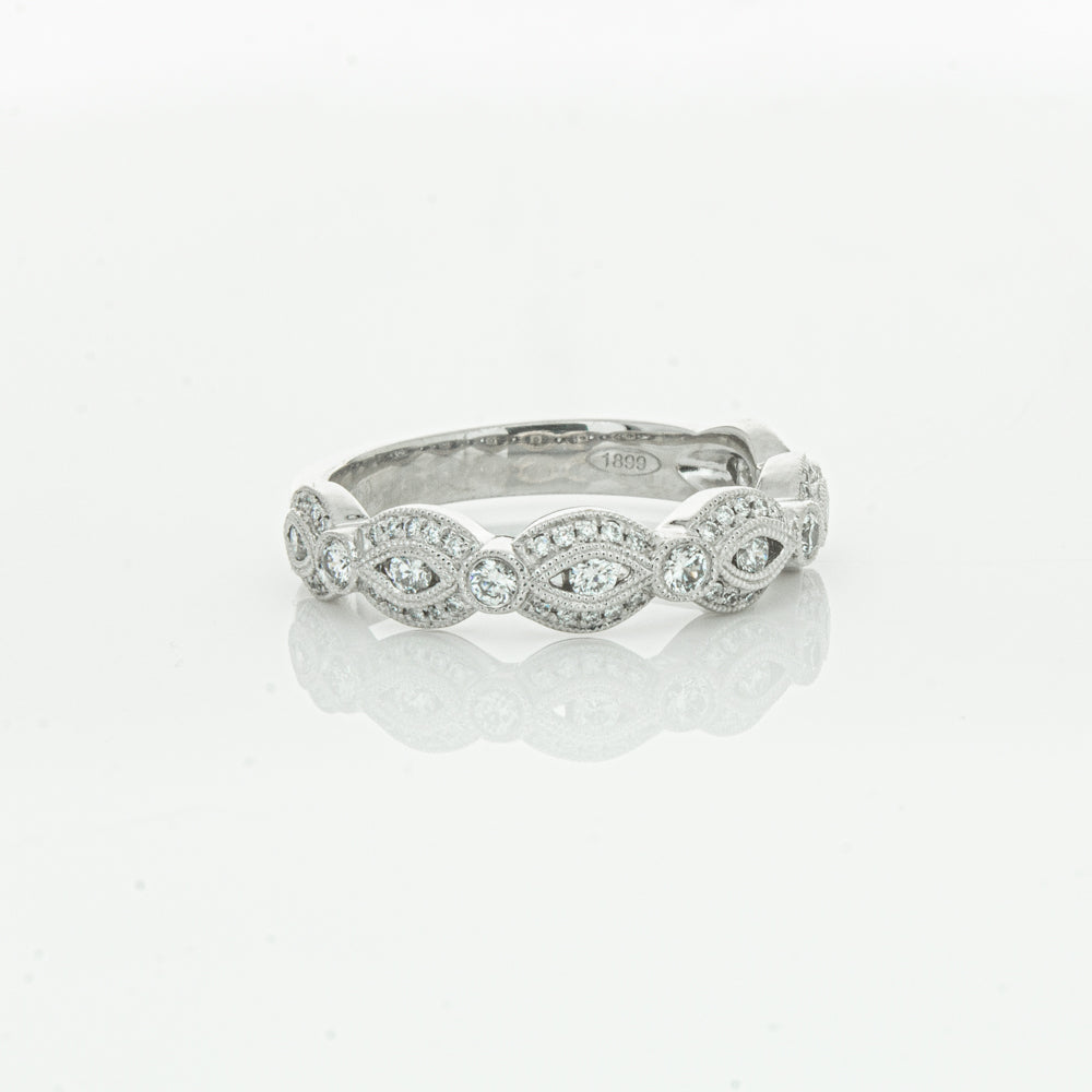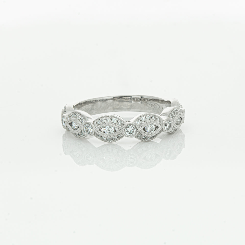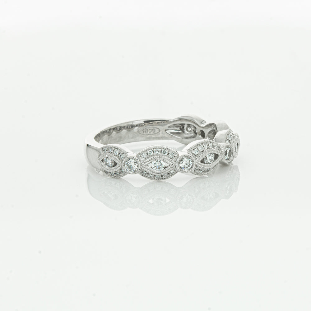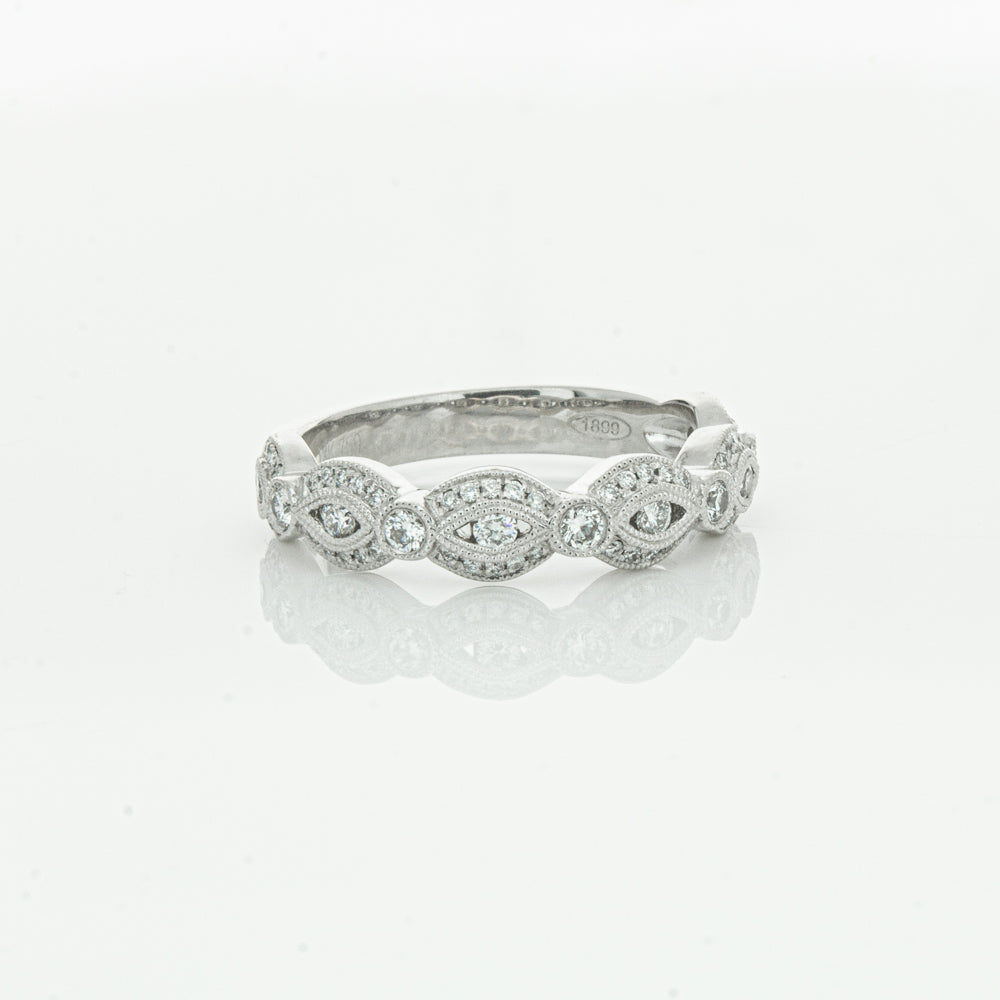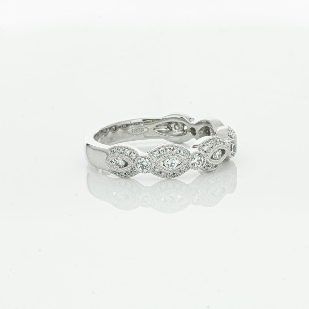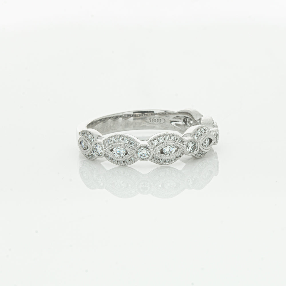 Carefully crafted in 18ct white gold from our signature 1899 collection this marquise shaped band features 67 round brilliant cut diamonds.
