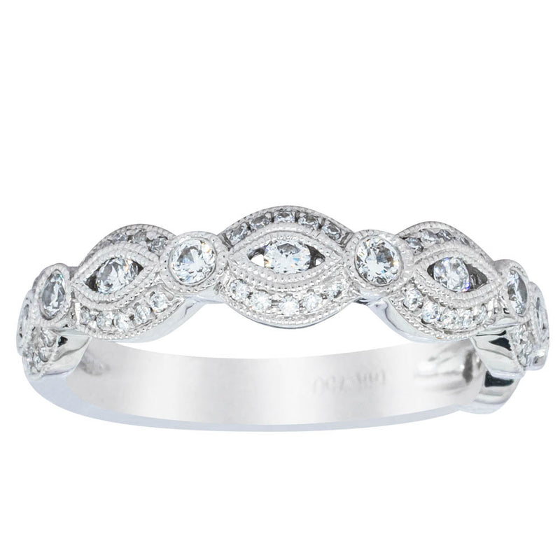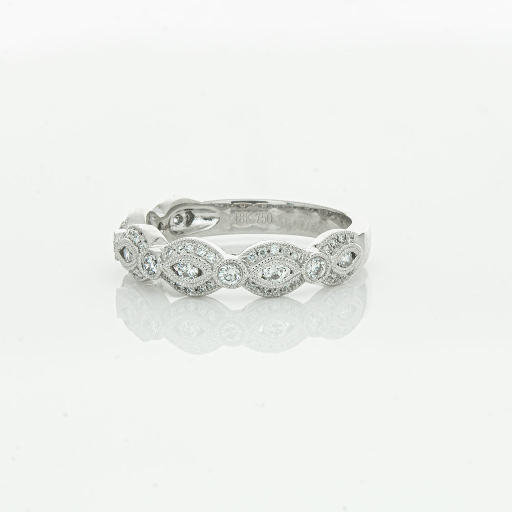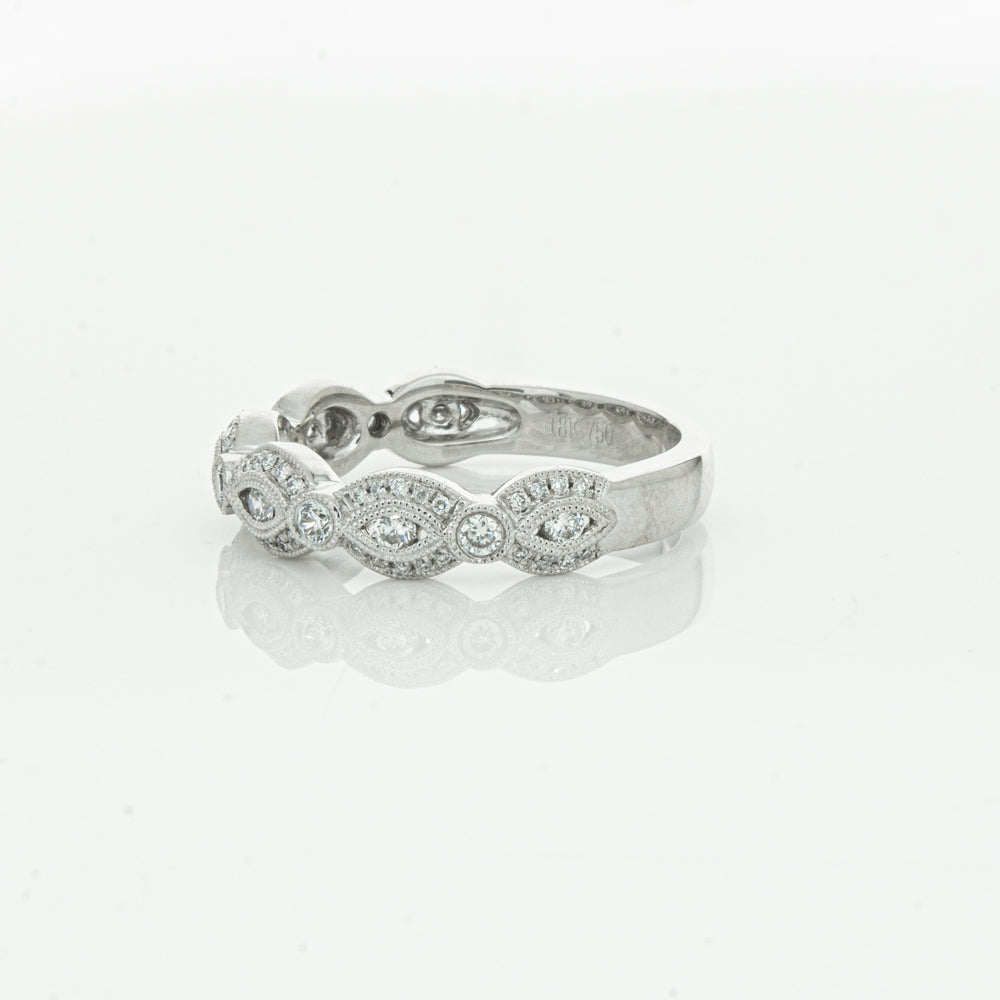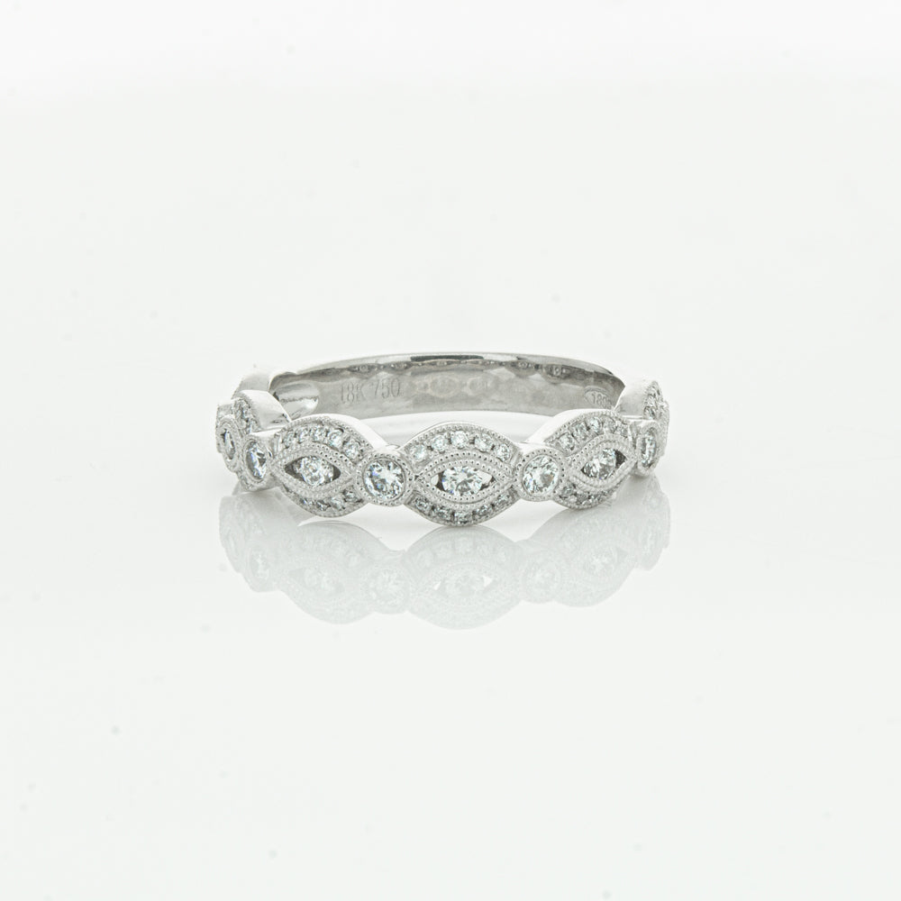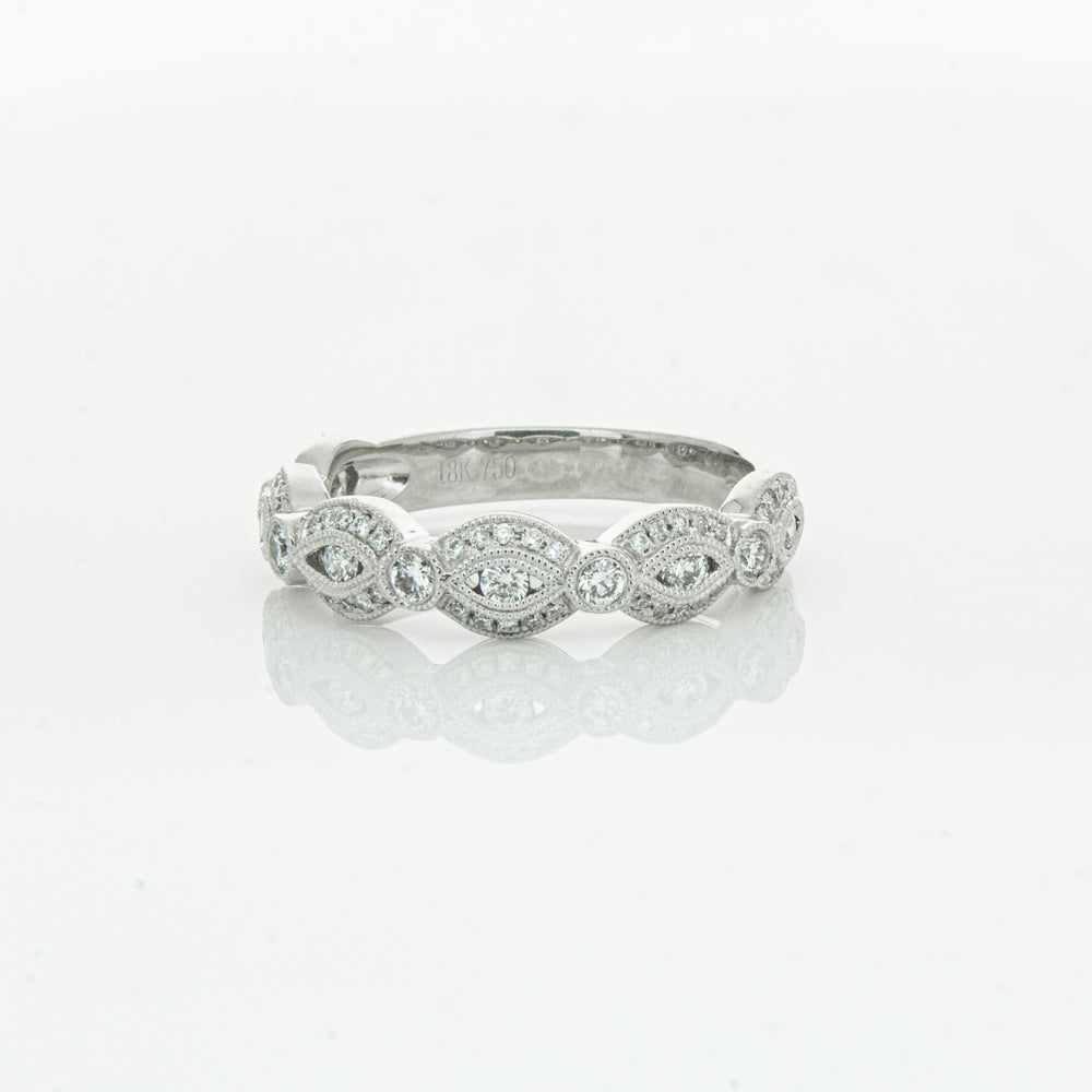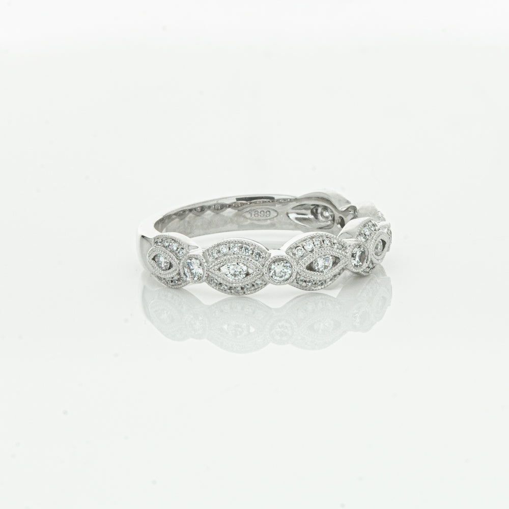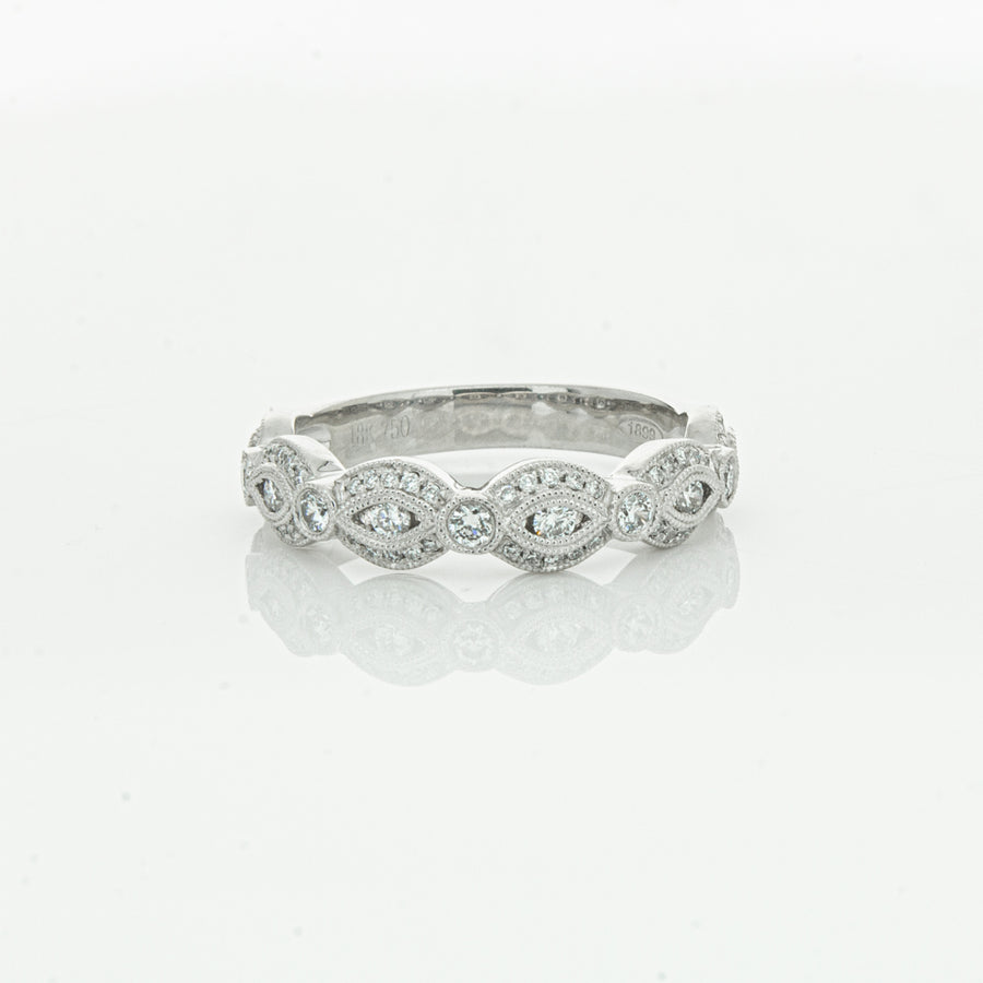 Carefully crafted in 18ct white gold from our signature 1899 collection this marquise shaped band features 67 round brilliant cut diamonds.