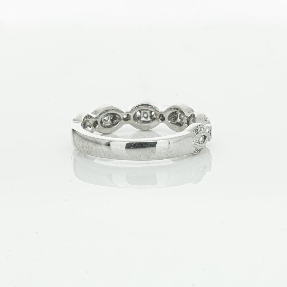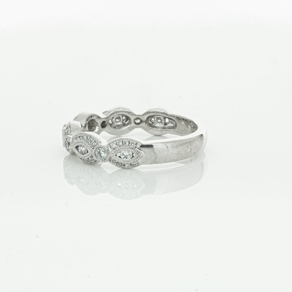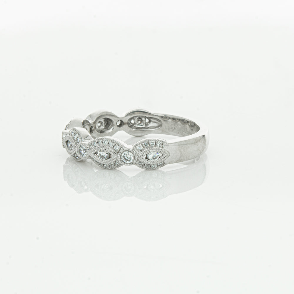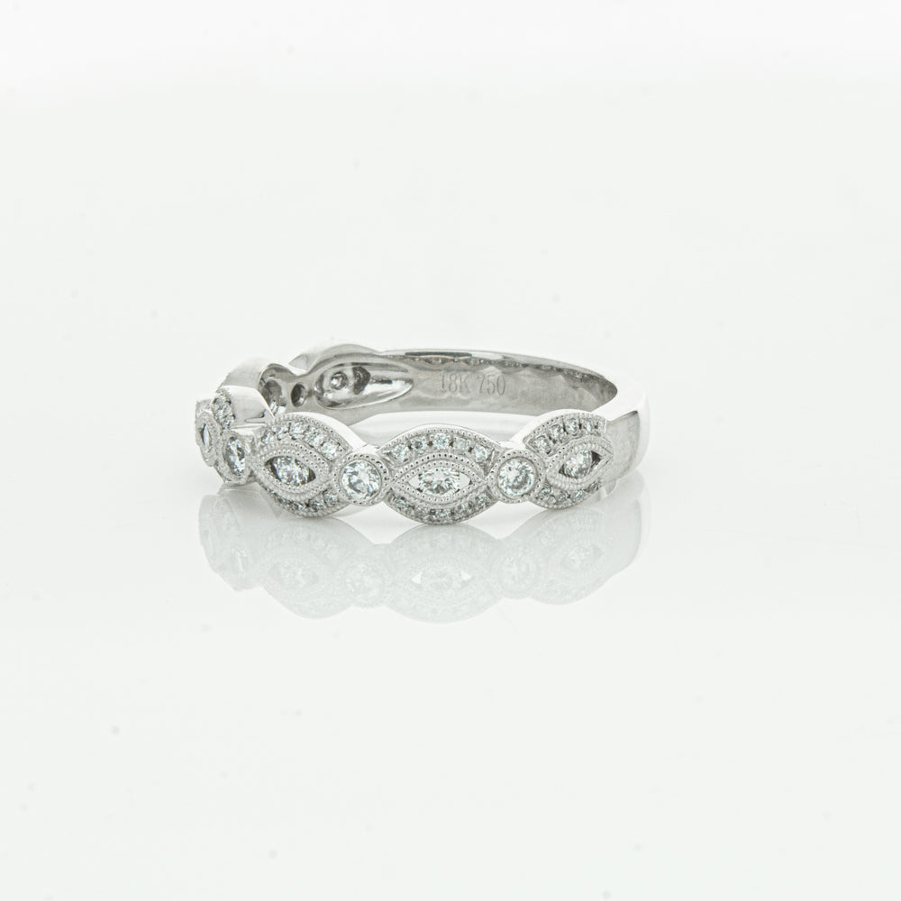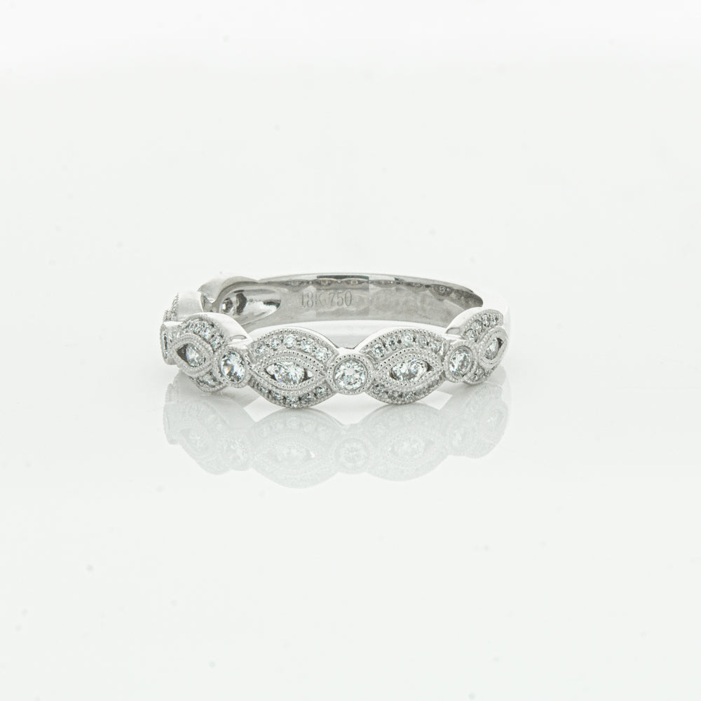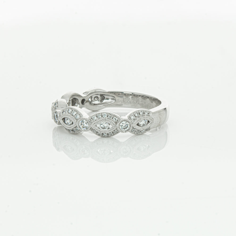Carefully crafted in 18ct white gold from our signature 1899 collection this marquise shaped band features 67 round brilliant cut diamonds.