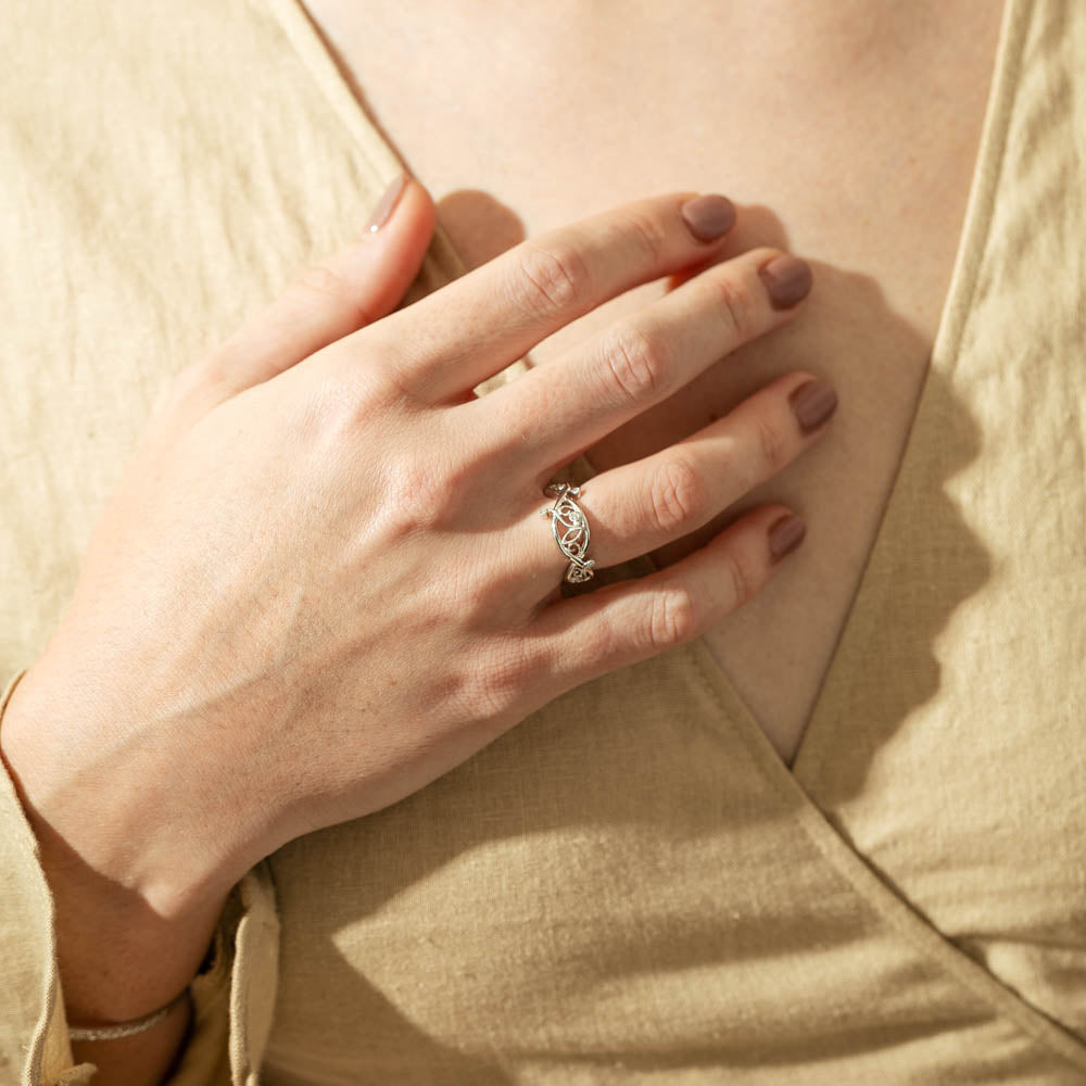 18ct White Gold .08ct Diamond Botanical Openwork Band