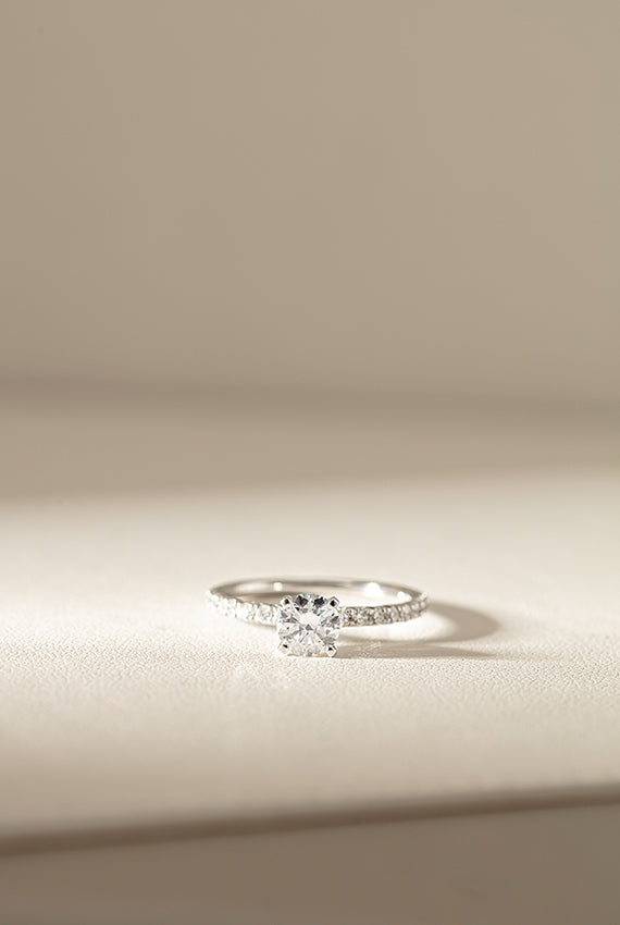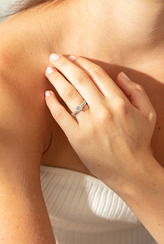 Like a comet with a blazing trail, the fine diamond setting draws the eye to the brilliance of this sparkle.