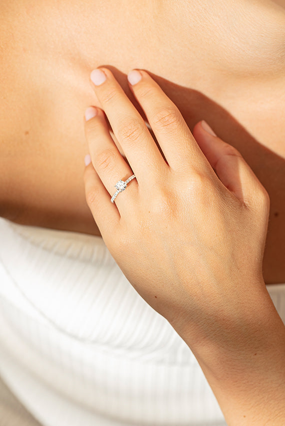 A celestial beauty, Comet radiates elegance with its orbit of sparkling round brilliant cut diamonds.