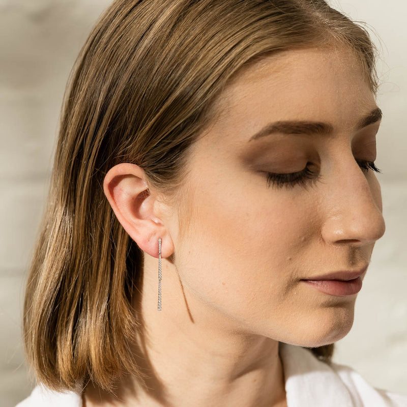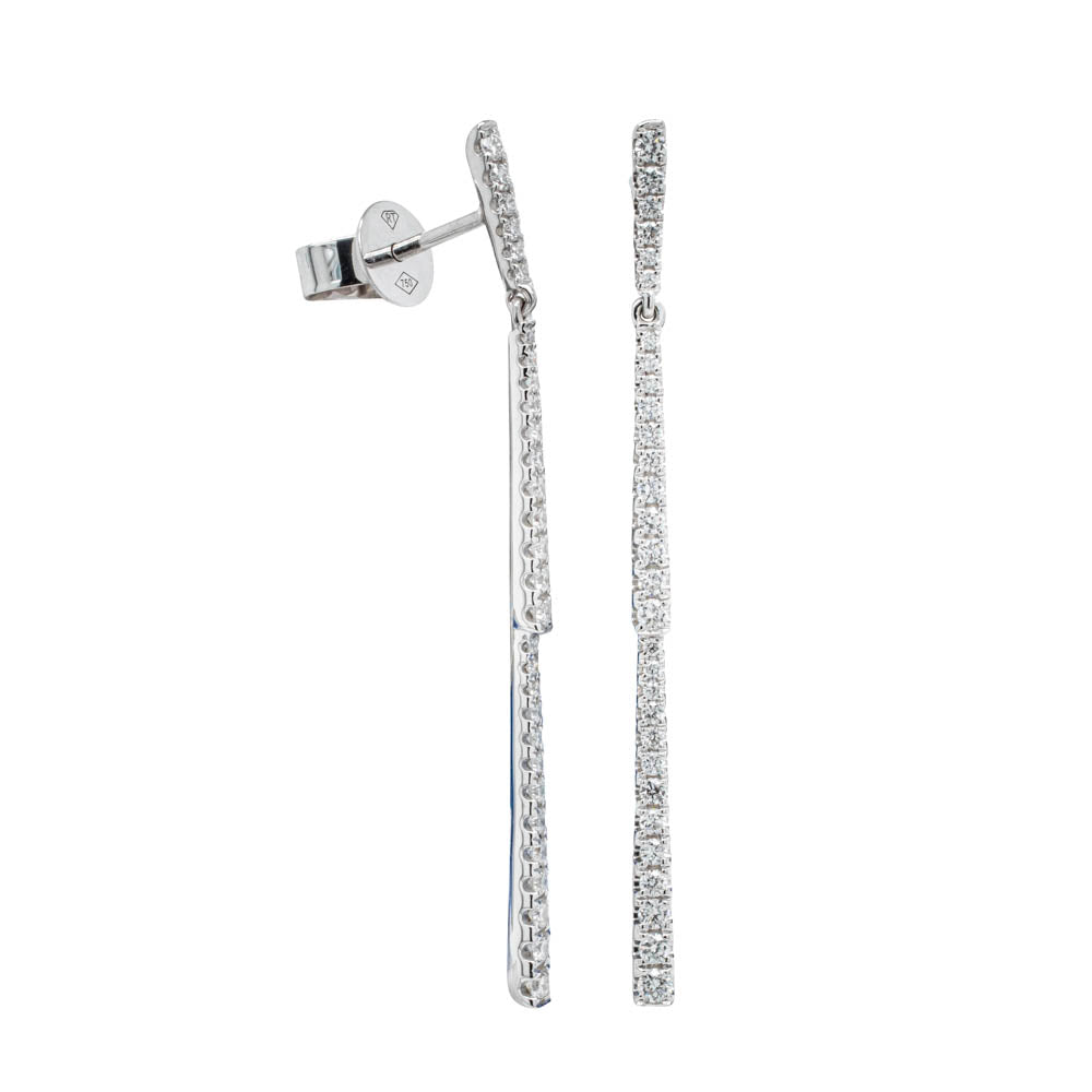 18ct White Gold Diamond Pave Bar Drop Earrings