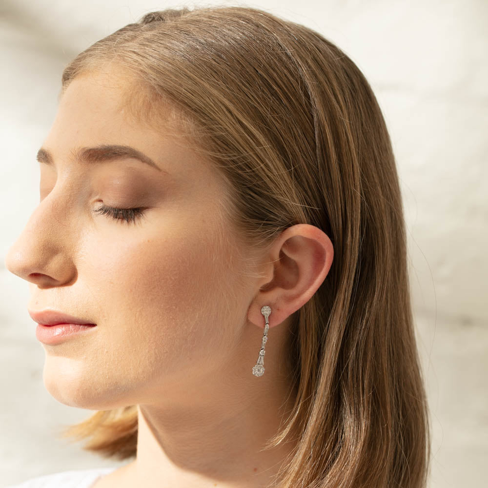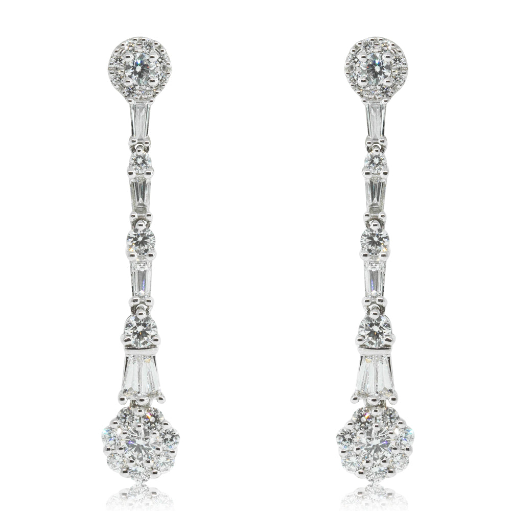 18ct White Gold Vertical Mixed-Cut Diamond Drop Earrings