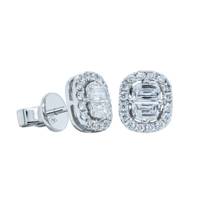 Pure sophistication... She will treasure these adorable diamond studs forever! Exquisitely set in luxurious 18ct white gold, this precious pair boast four demi lune cut diamonds framed by a twinkling diamond halo.