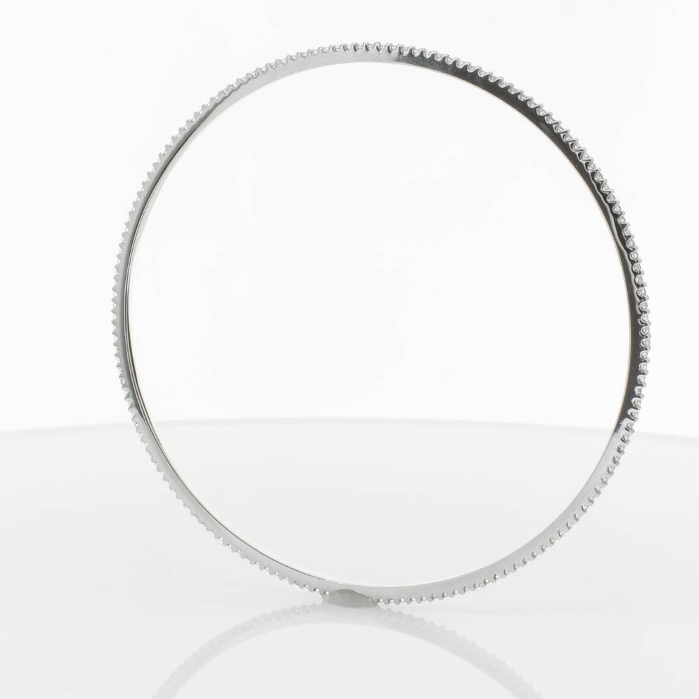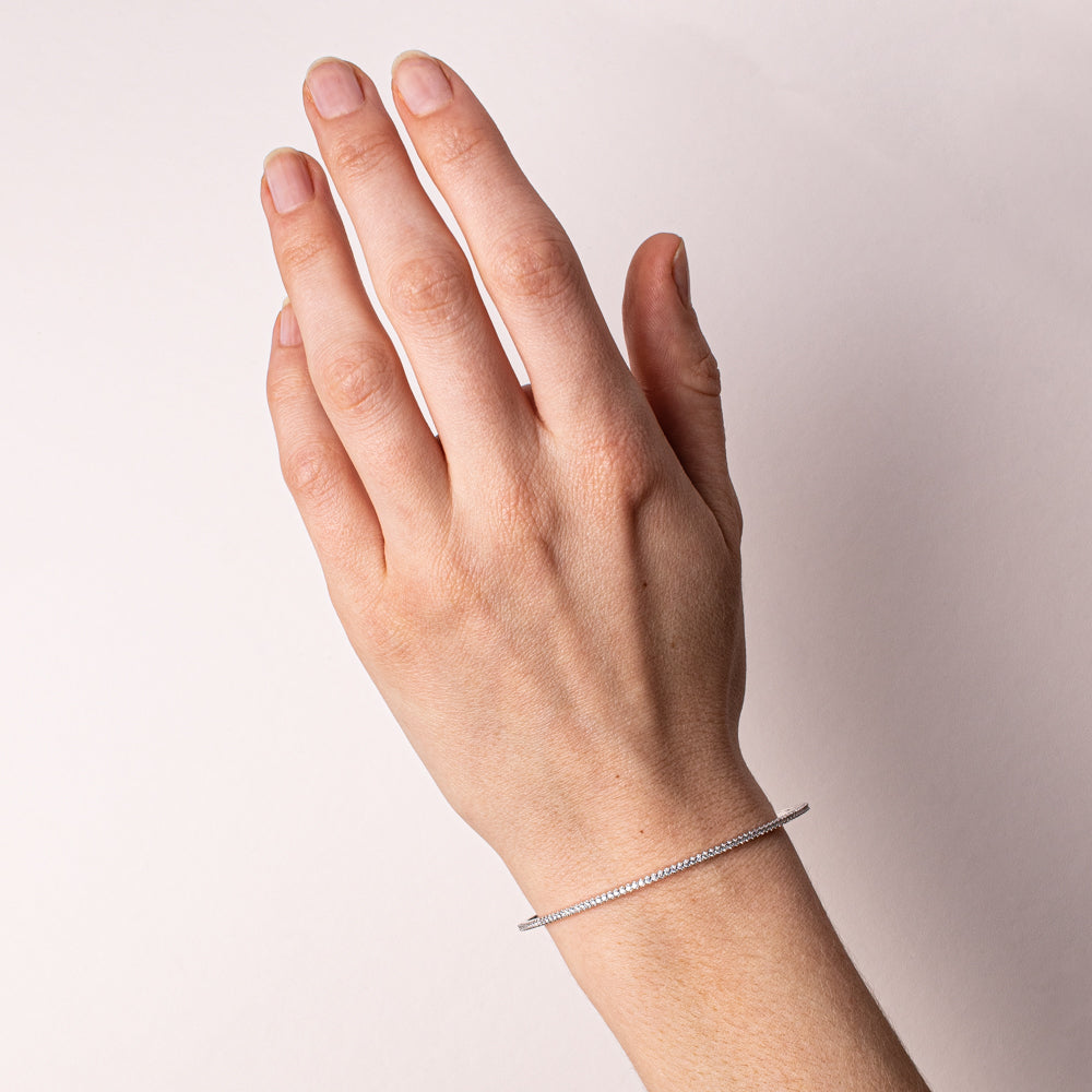 Crafted to perfection from divine 18ct white gold, this precious Eternity bangle boasts an array of twinkling diamonds that sparkle from each and every angle.