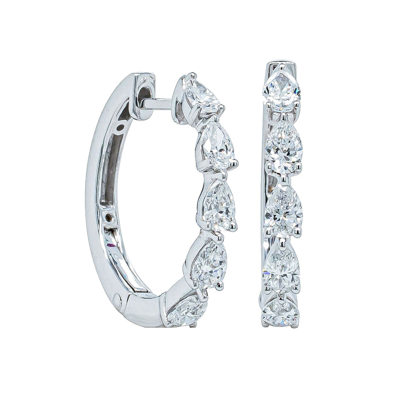 These 18ct white gold hoop earrings feature beautiful pear brilliant cut diamonds for a sophisticated yet timeless look. Crafted using the highest quality materials, these earrings provide a luxurious addition to any collection.