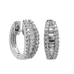 18ct White Gold Baguette-Cut Diamond Cuved Hoop Earrings