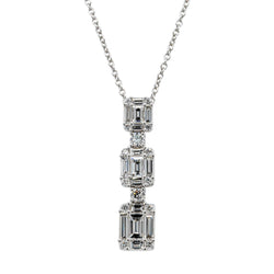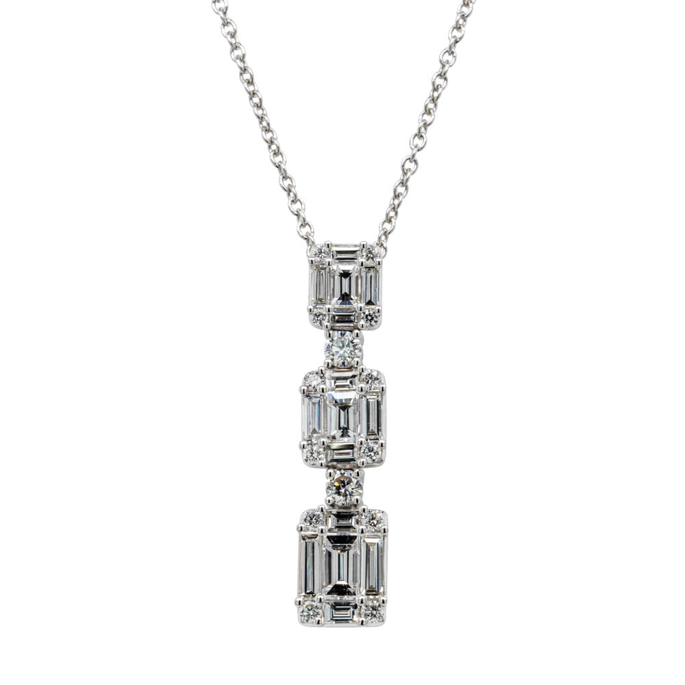 18ct White Gold Baguette Diamond Three Tier Pendant