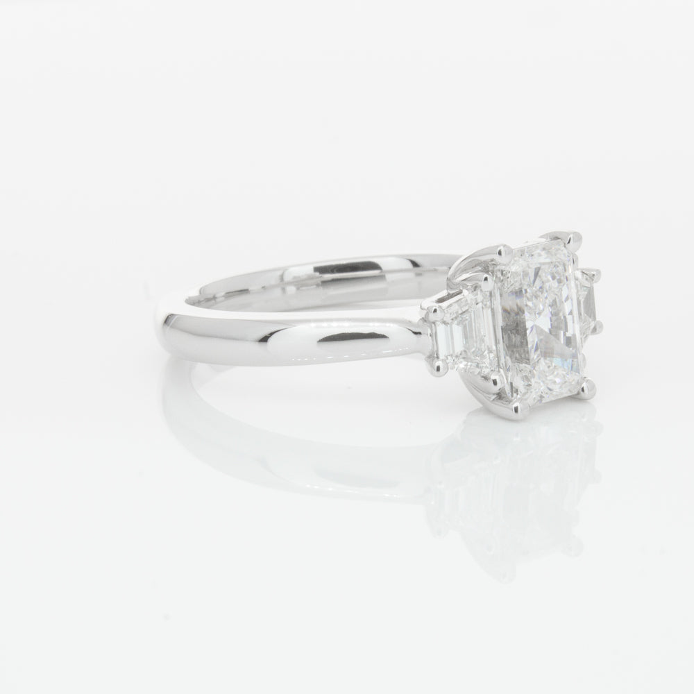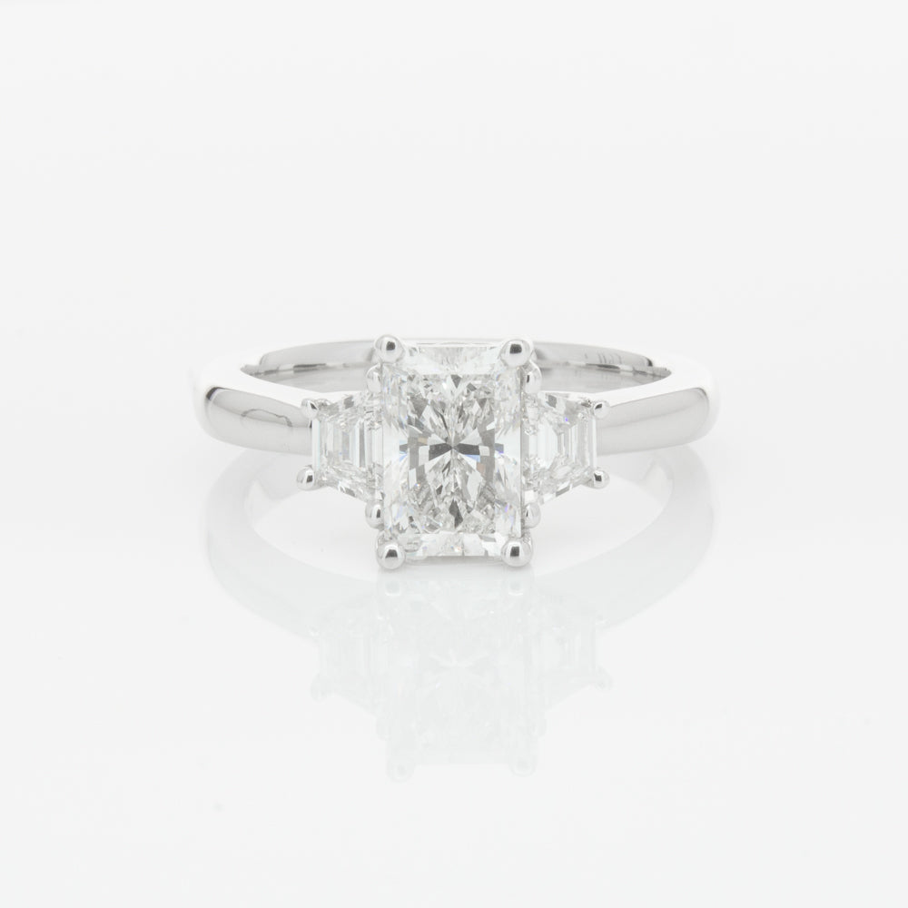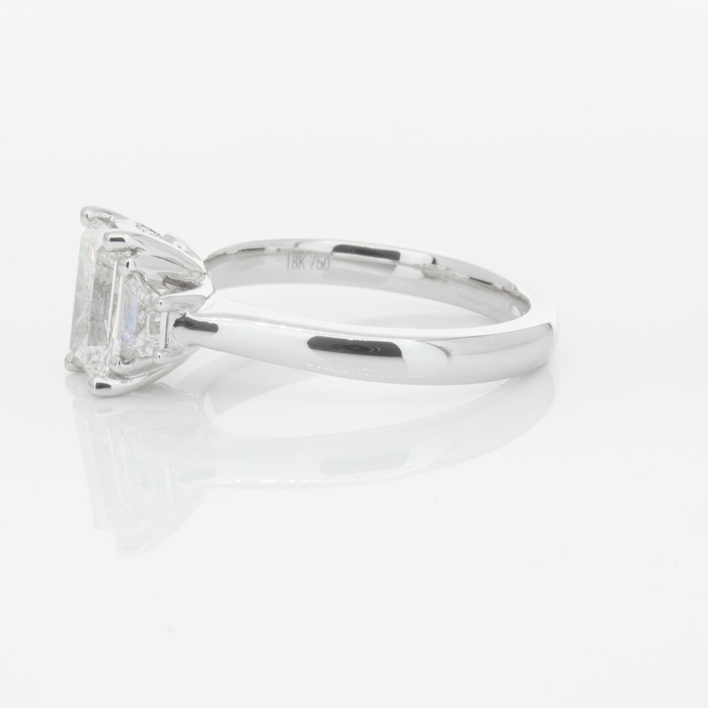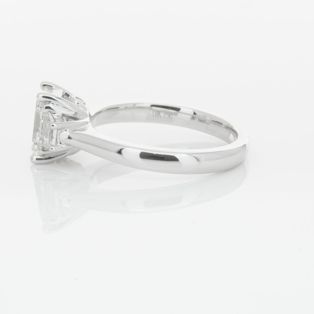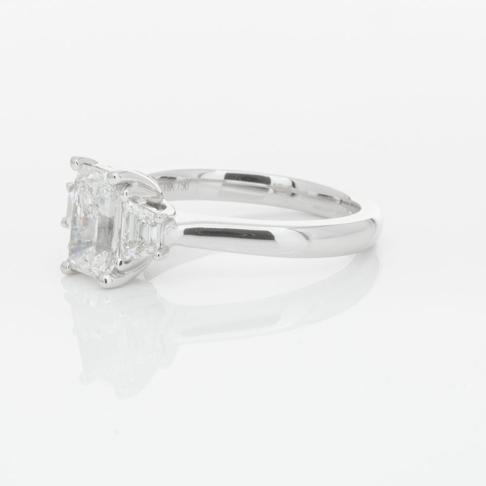 Delight her with this dazzling diamond ring. Featuring a rectangular radiant cut centre diamond and elegant diamond set shoulder. You'll be able to watch her light up when you slide this 18ct white gold ring on her finger.