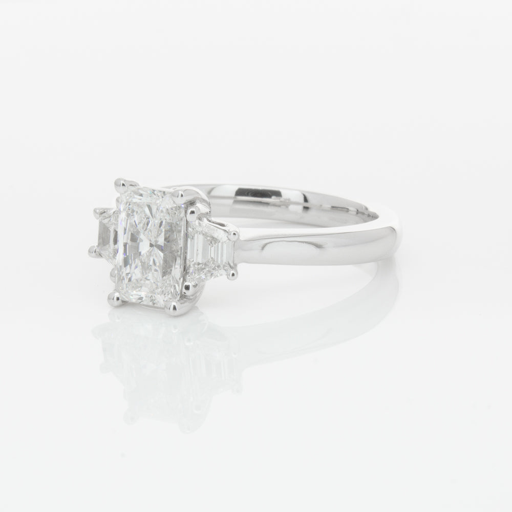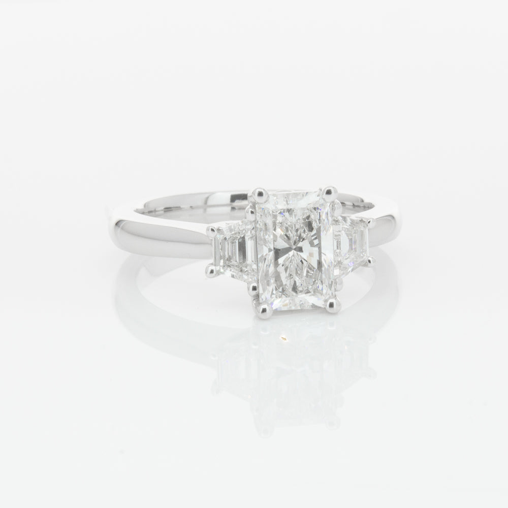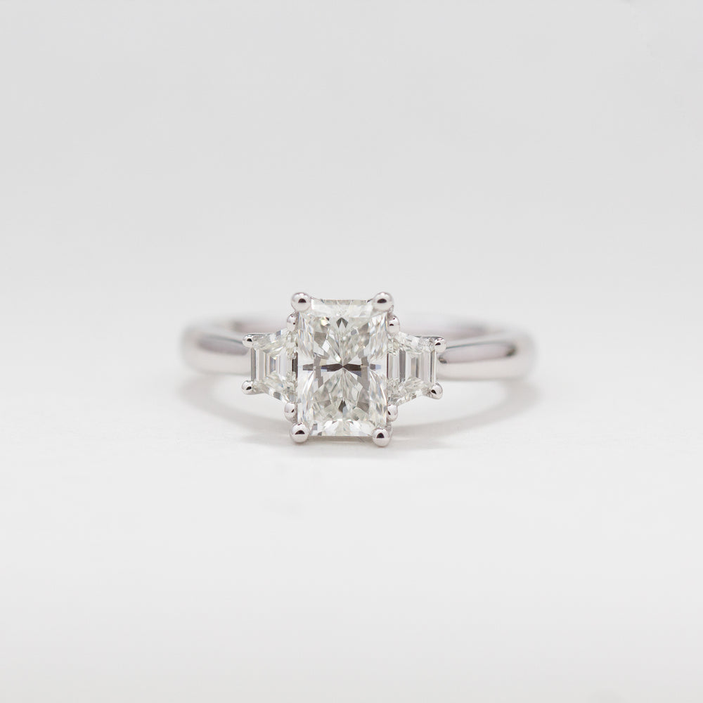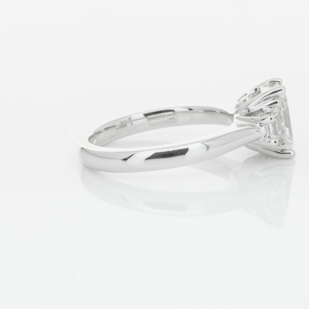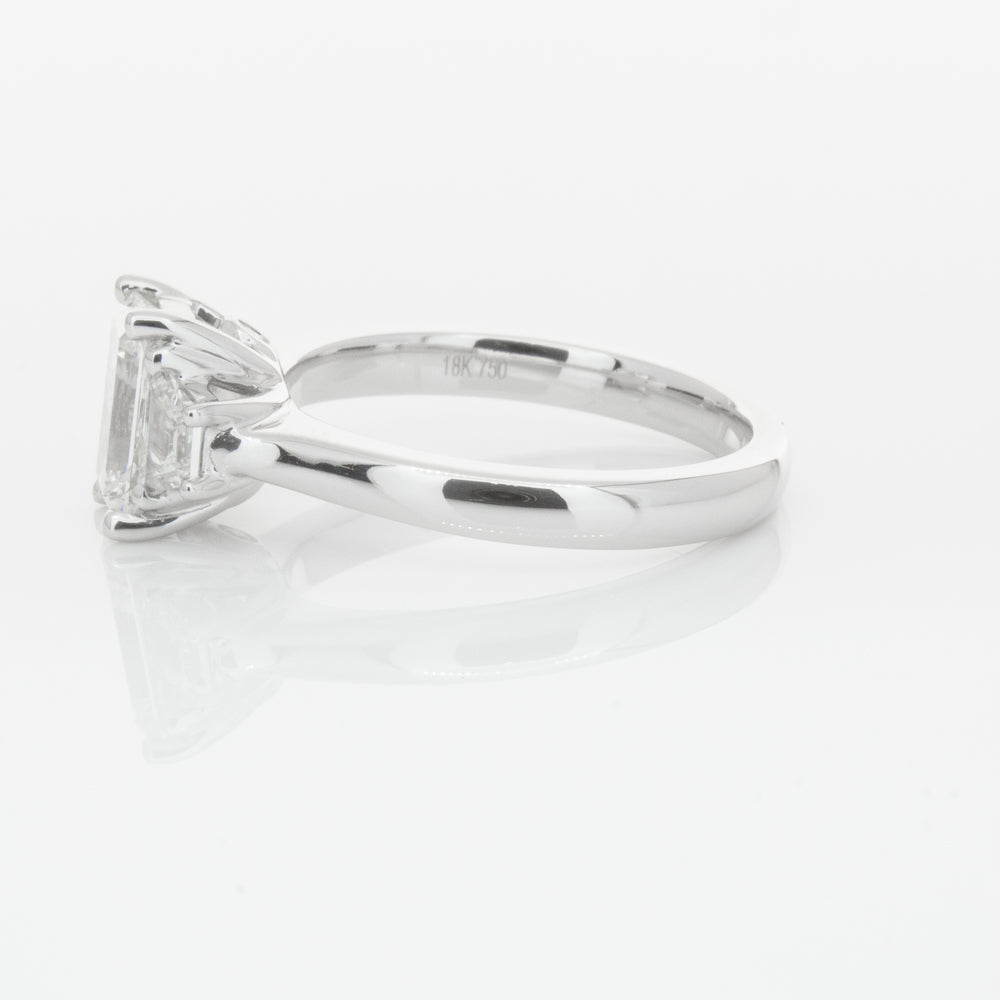 Delight her with this dazzling diamond ring. Featuring a rectangular radiant cut centre diamond and elegant diamond set shoulder. You'll be able to watch her light up when you slide this 18ct white gold ring on her finger.