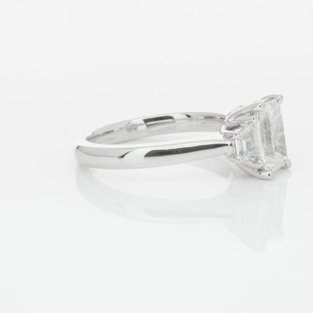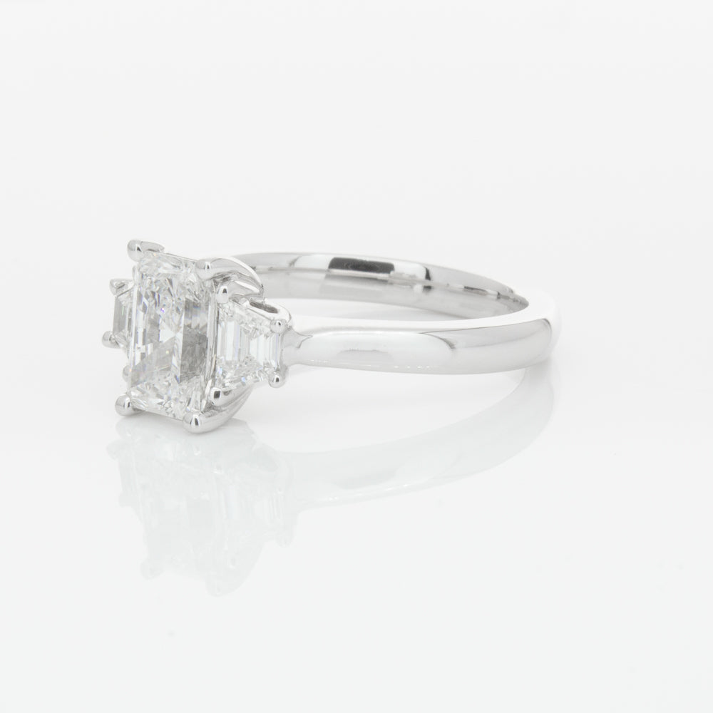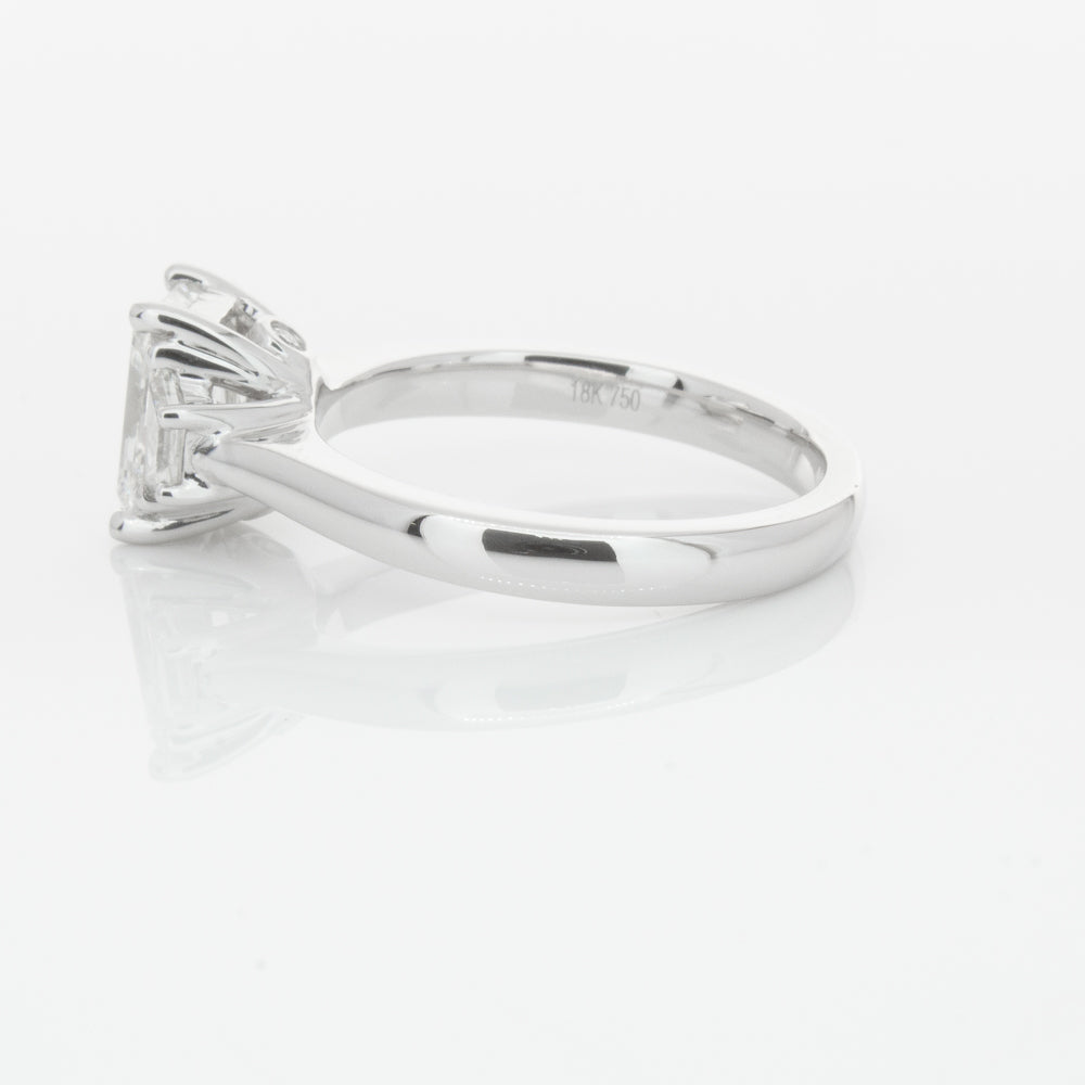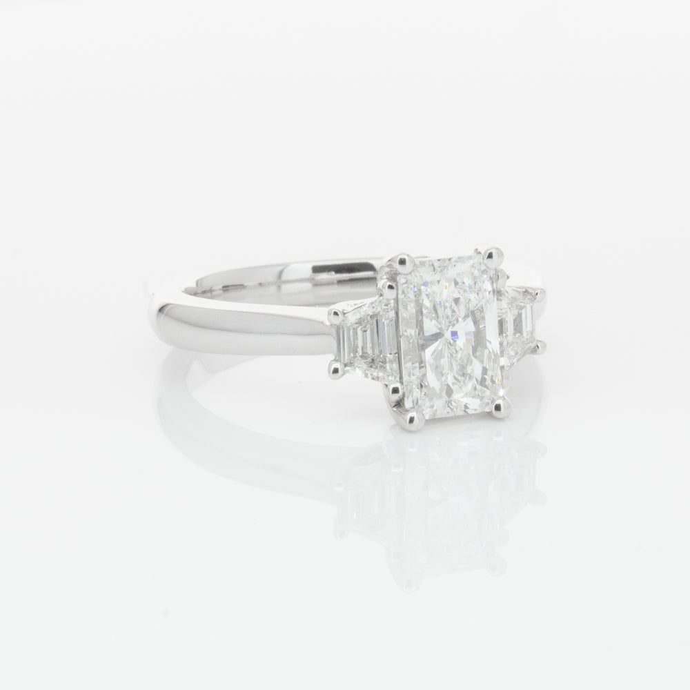 Delight her with this dazzling diamond ring. Featuring a rectangular radiant cut centre diamond and elegant diamond set shoulder. You'll be able to watch her light up when you slide this 18ct white gold ring on her finger.