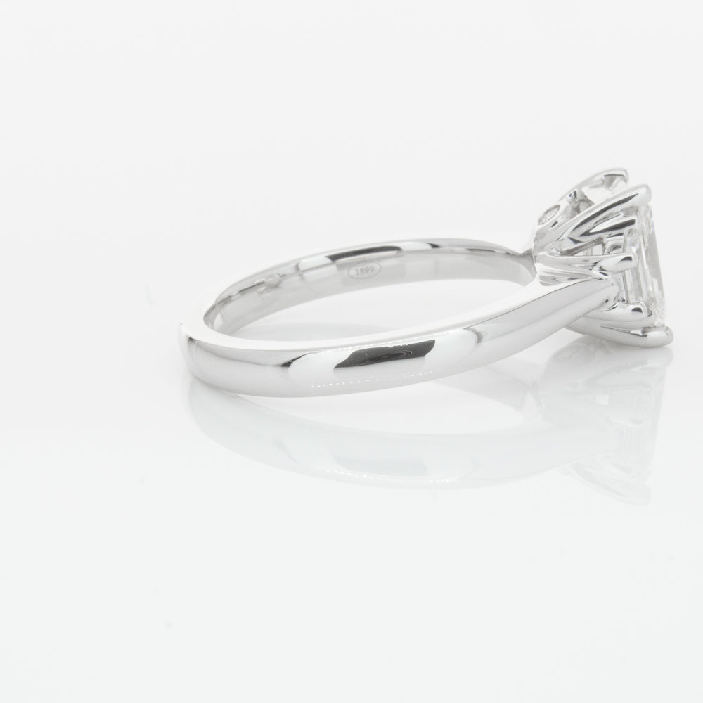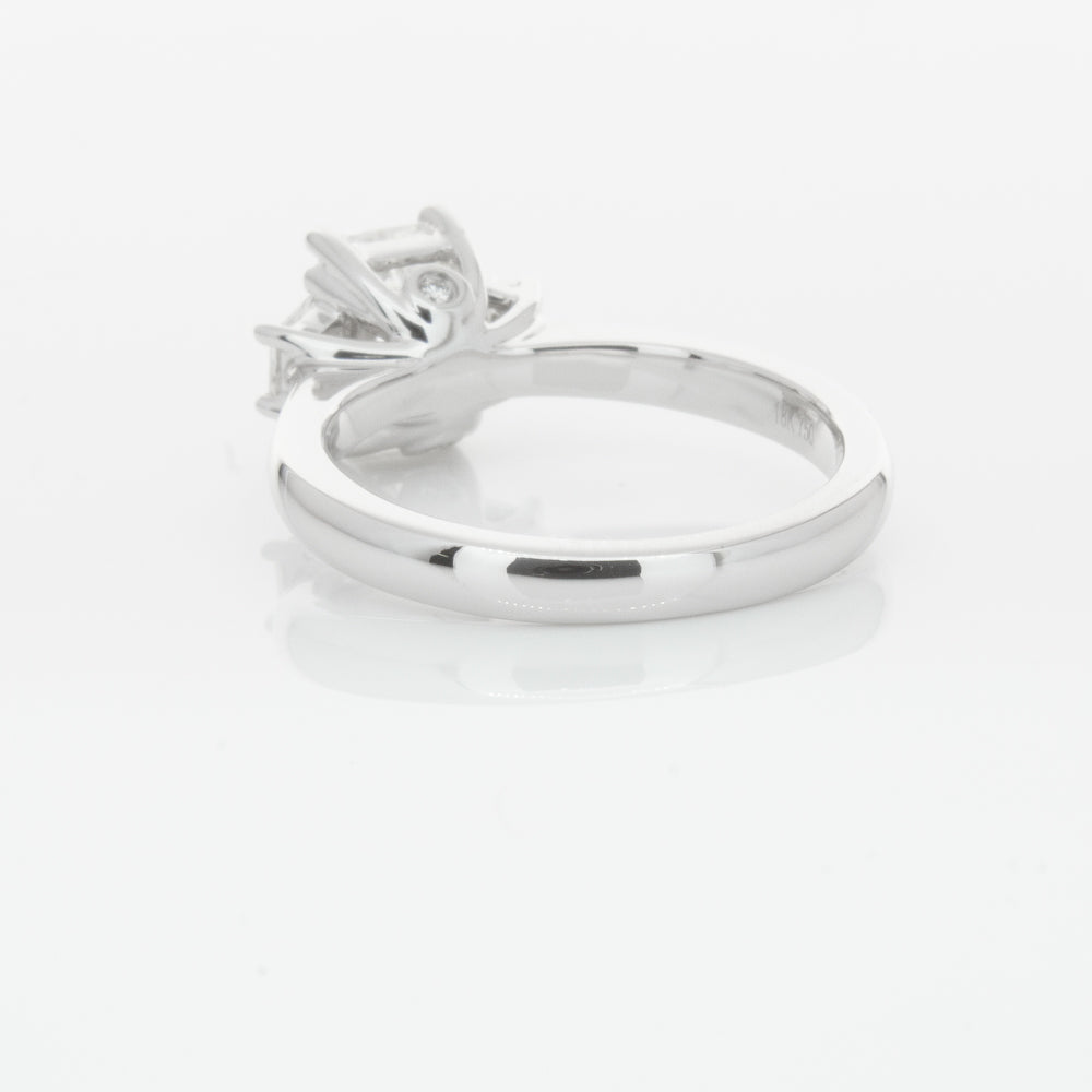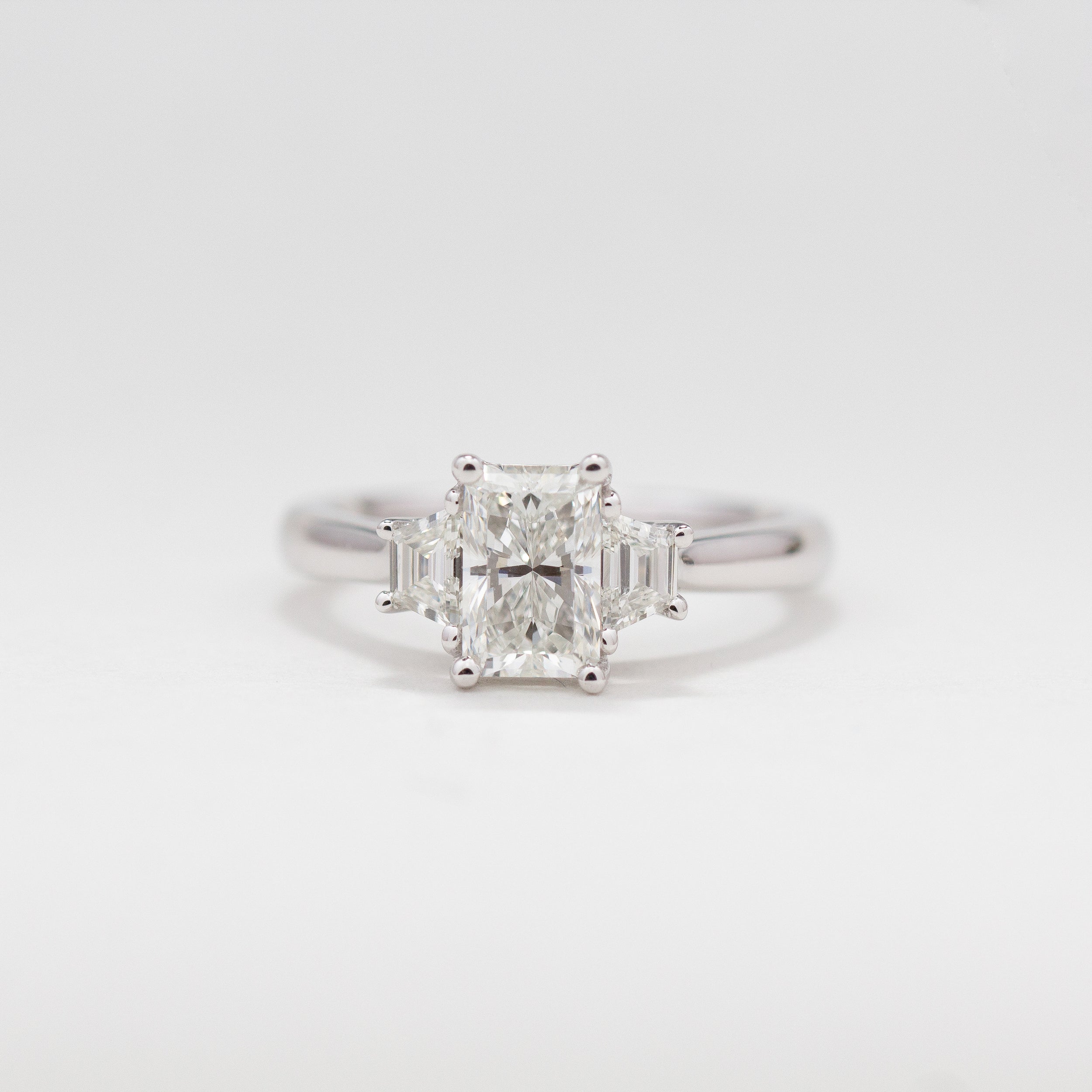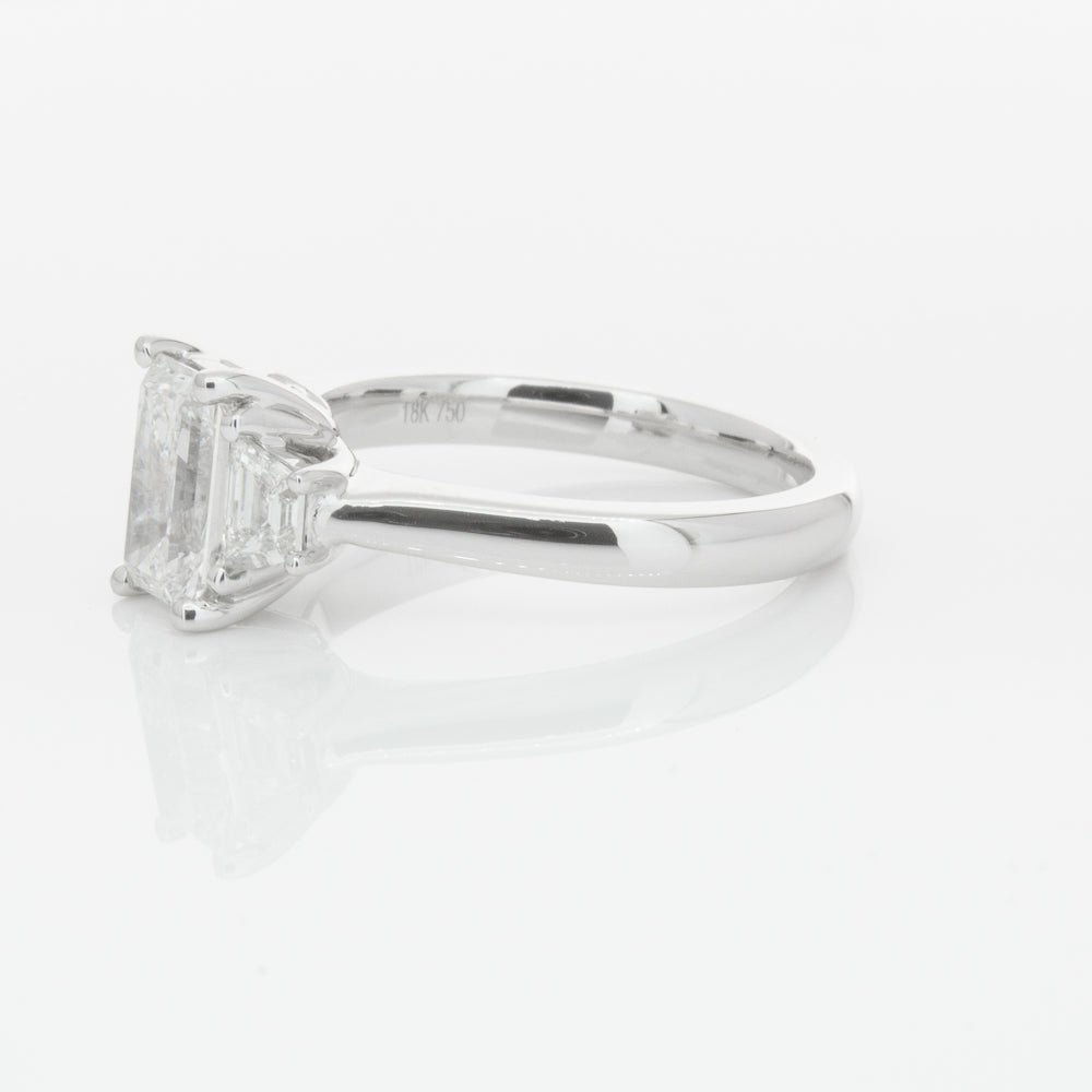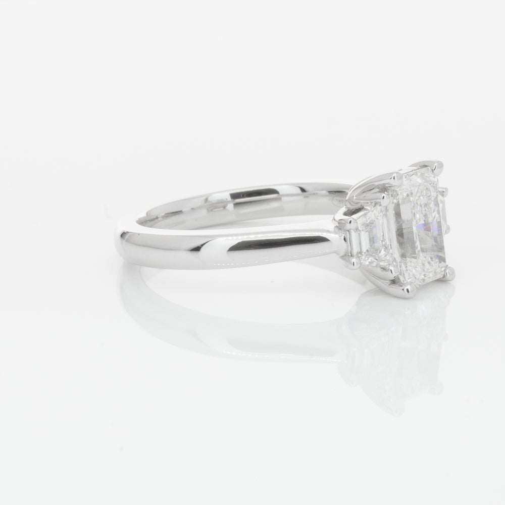 Delight her with this dazzling diamond ring. Featuring a rectangular radiant cut centre diamond and elegant diamond set shoulder. You'll be able to watch her light up when you slide this 18ct white gold ring on her finger.
