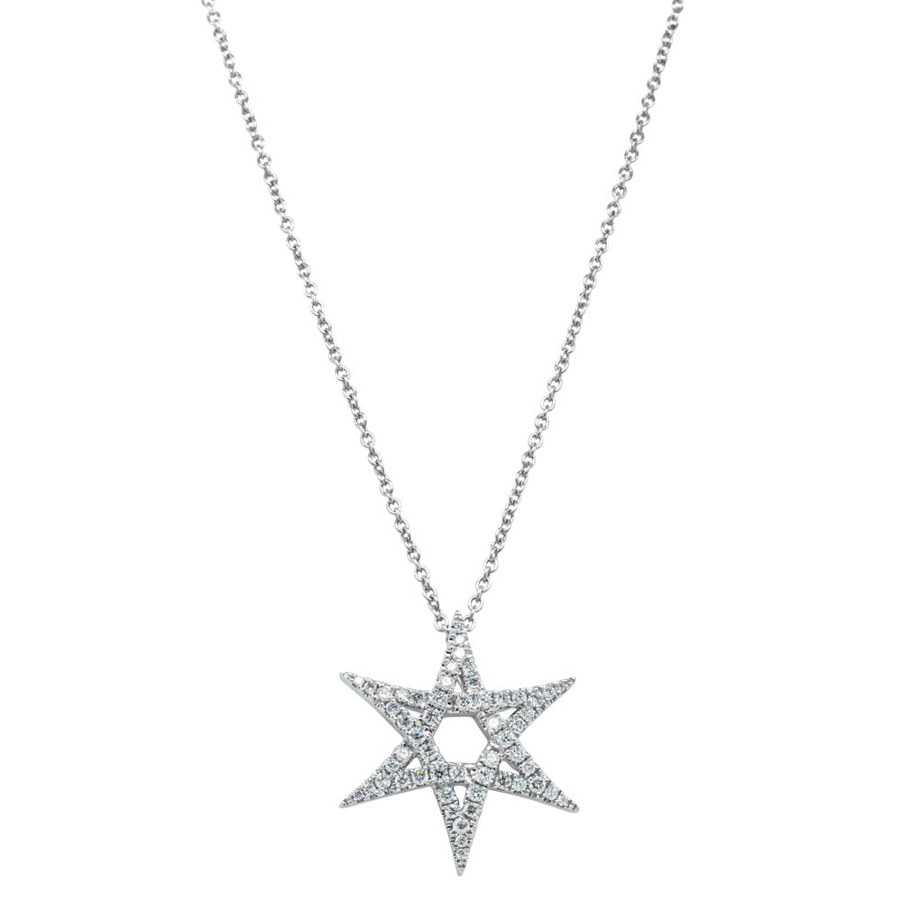 An amazing gift for that shining star in your life. This 18ct white gold pendant is in the shape of a six pointed star and is set with glittering diamonds. Celebrate an incandescent loved one that is the centre of your universe.